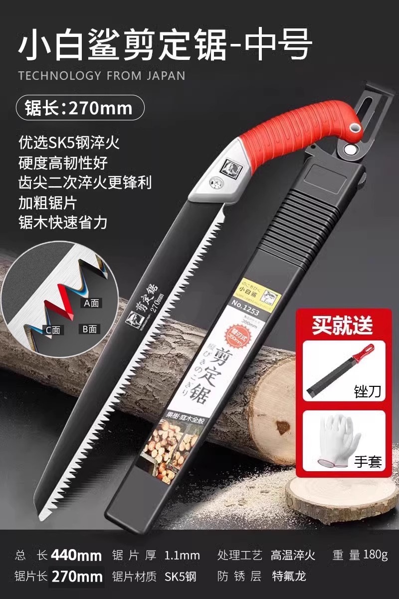 • 440mm 일본식 작은 흰색 상어 SK5 강철 가위-중형(샌딩 도구 + 장갑 + 톱 커버와 함께 제공)