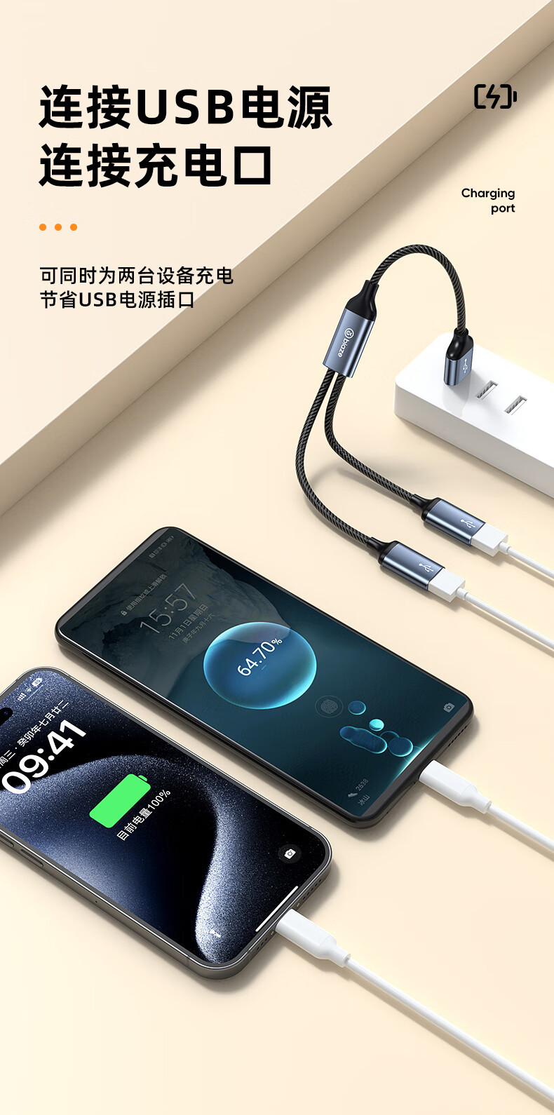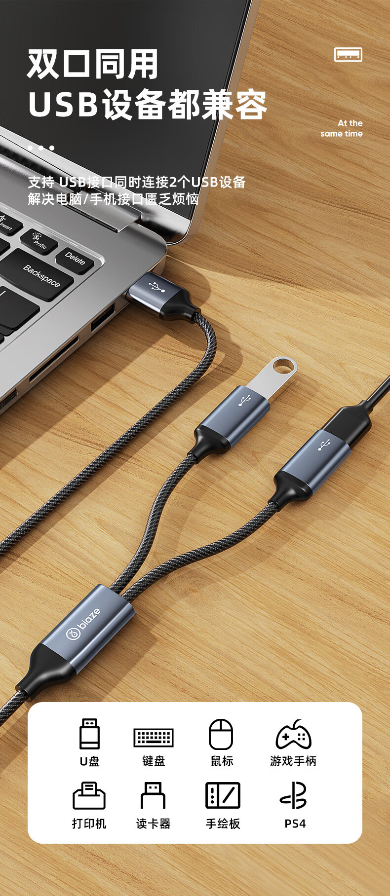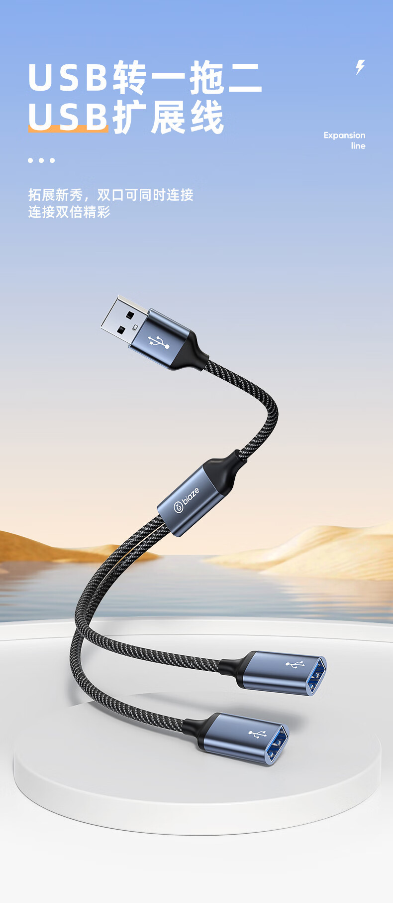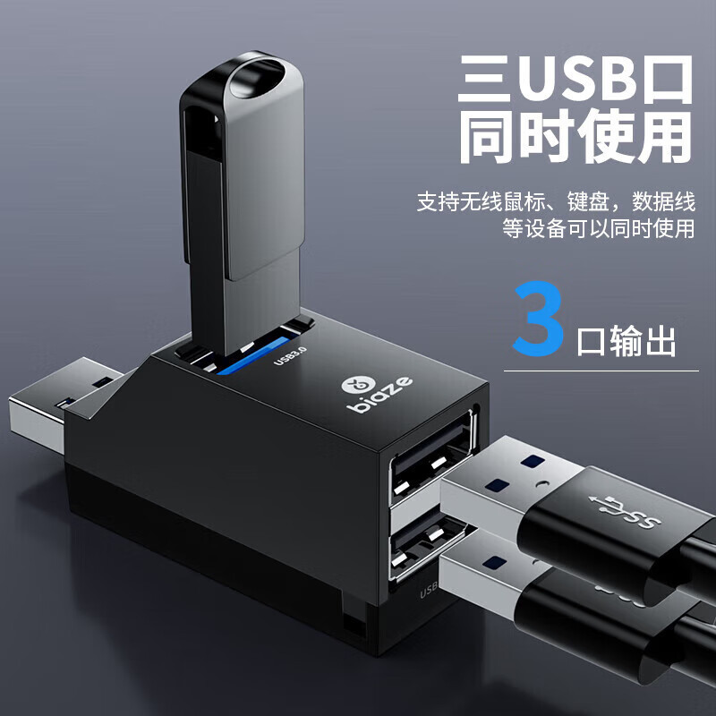 Biaz USB 1:2 멀티 포트 변환기 확장기 충전 마우스 키보드 U 디스크 어댑터 휴대 전화 컴퓨터스토어 가기