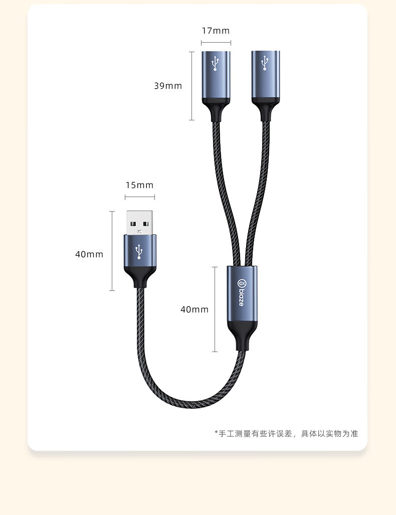 Biaz USB 1:2 멀티 포트 변환기 확장기 충전 마우스 키보드 U 디스크 어댑터 휴대 전화 컴퓨터