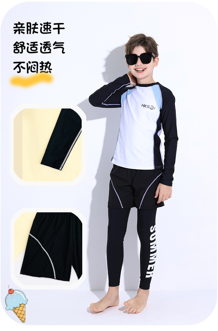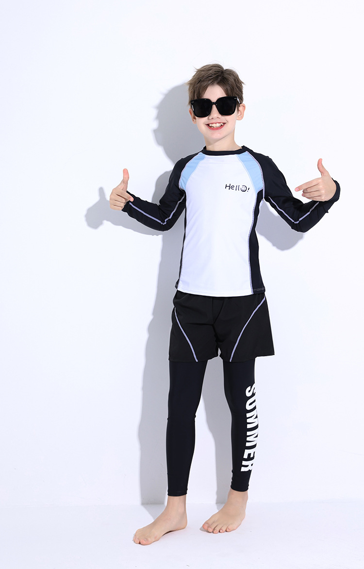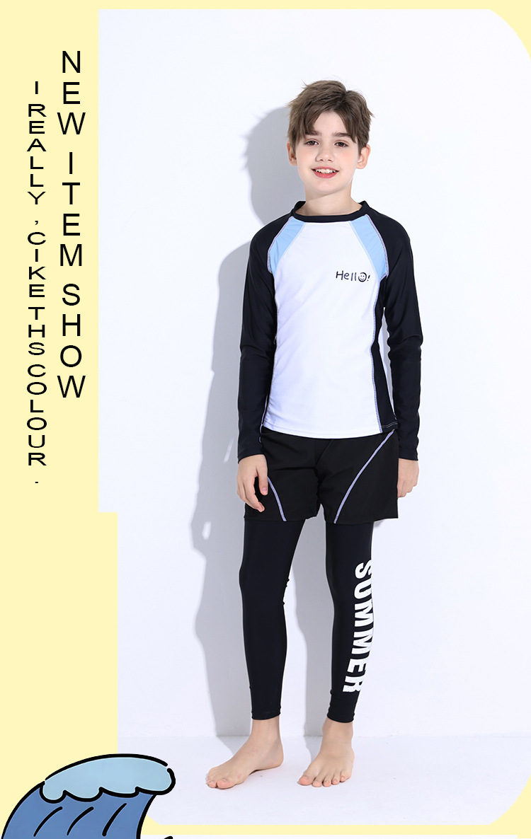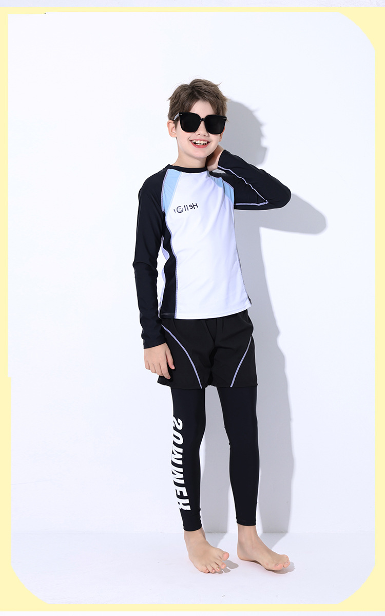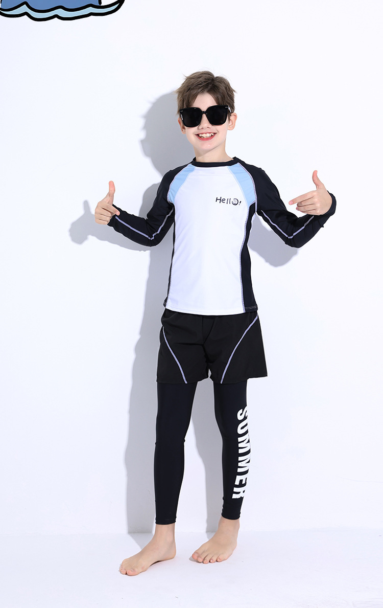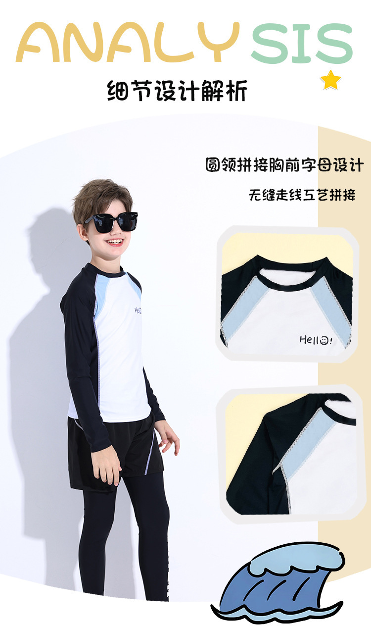 新款儿童泳衣青少年男孩长袖分体套装冲浪中大童学生防晒运动泳装