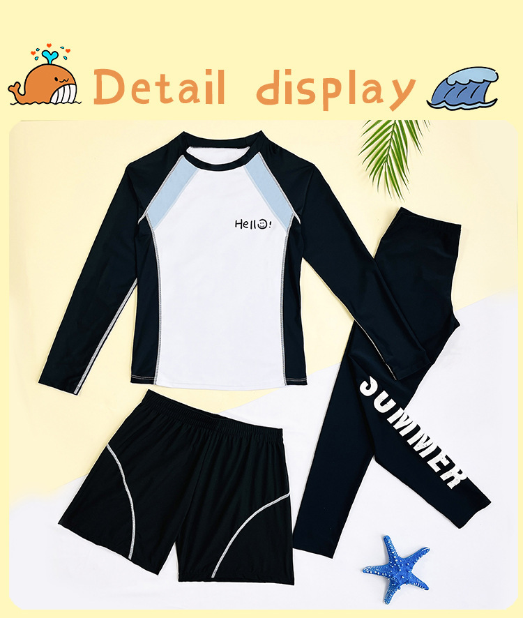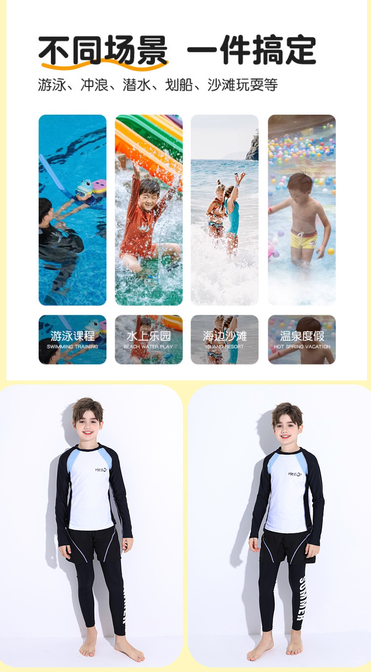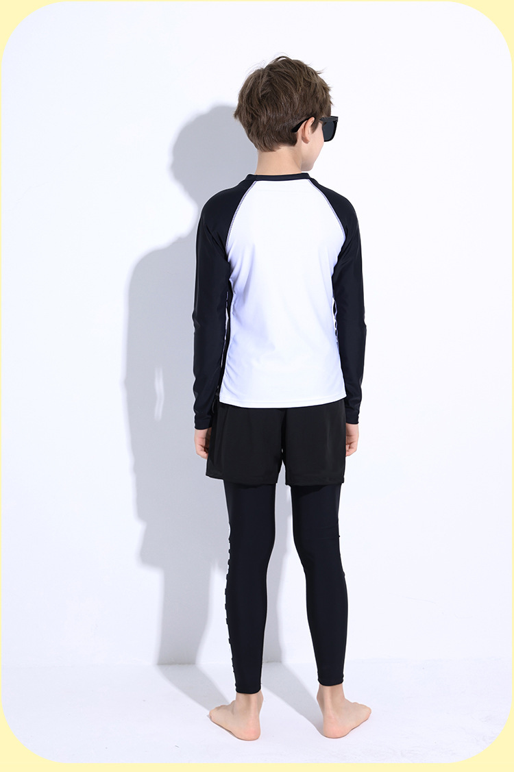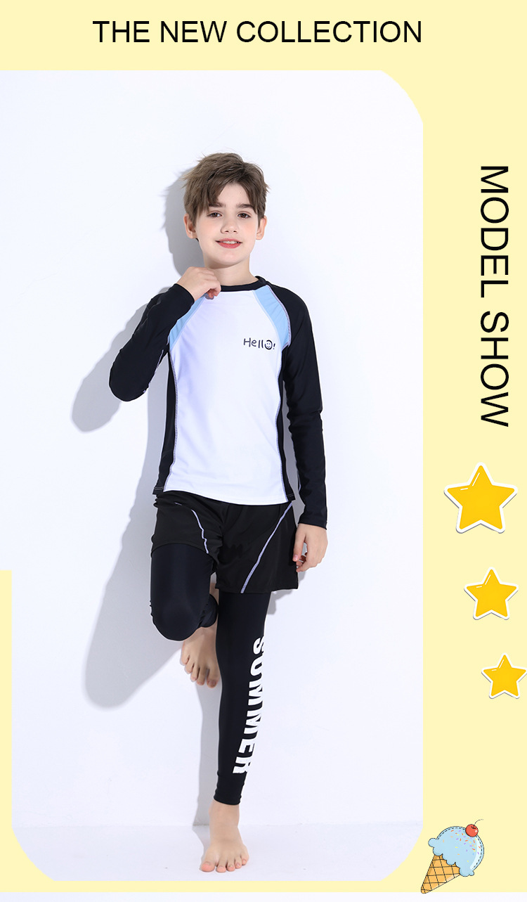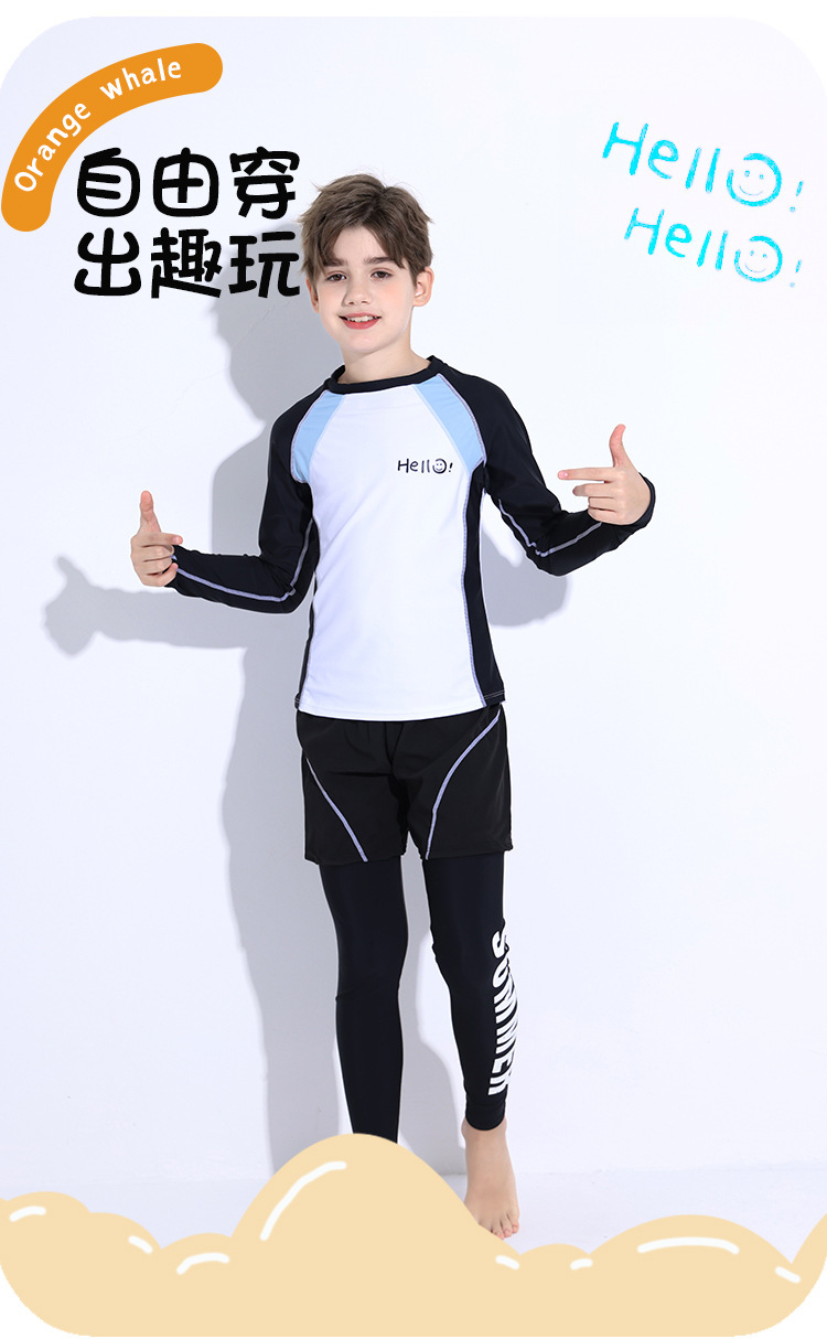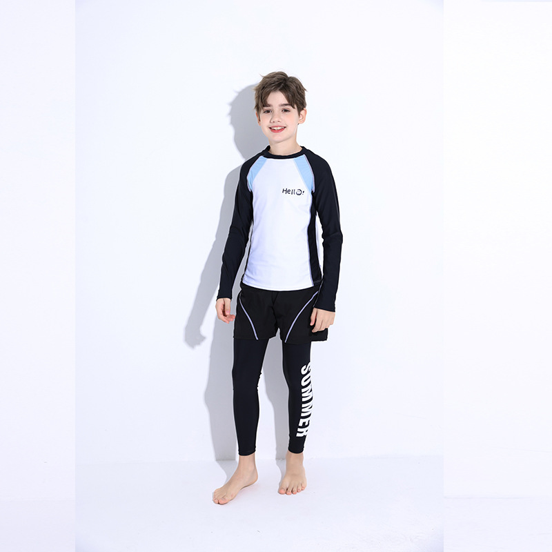 新款儿童泳衣青少年男孩长袖分体套装冲浪中大童学生防晒运动泳装