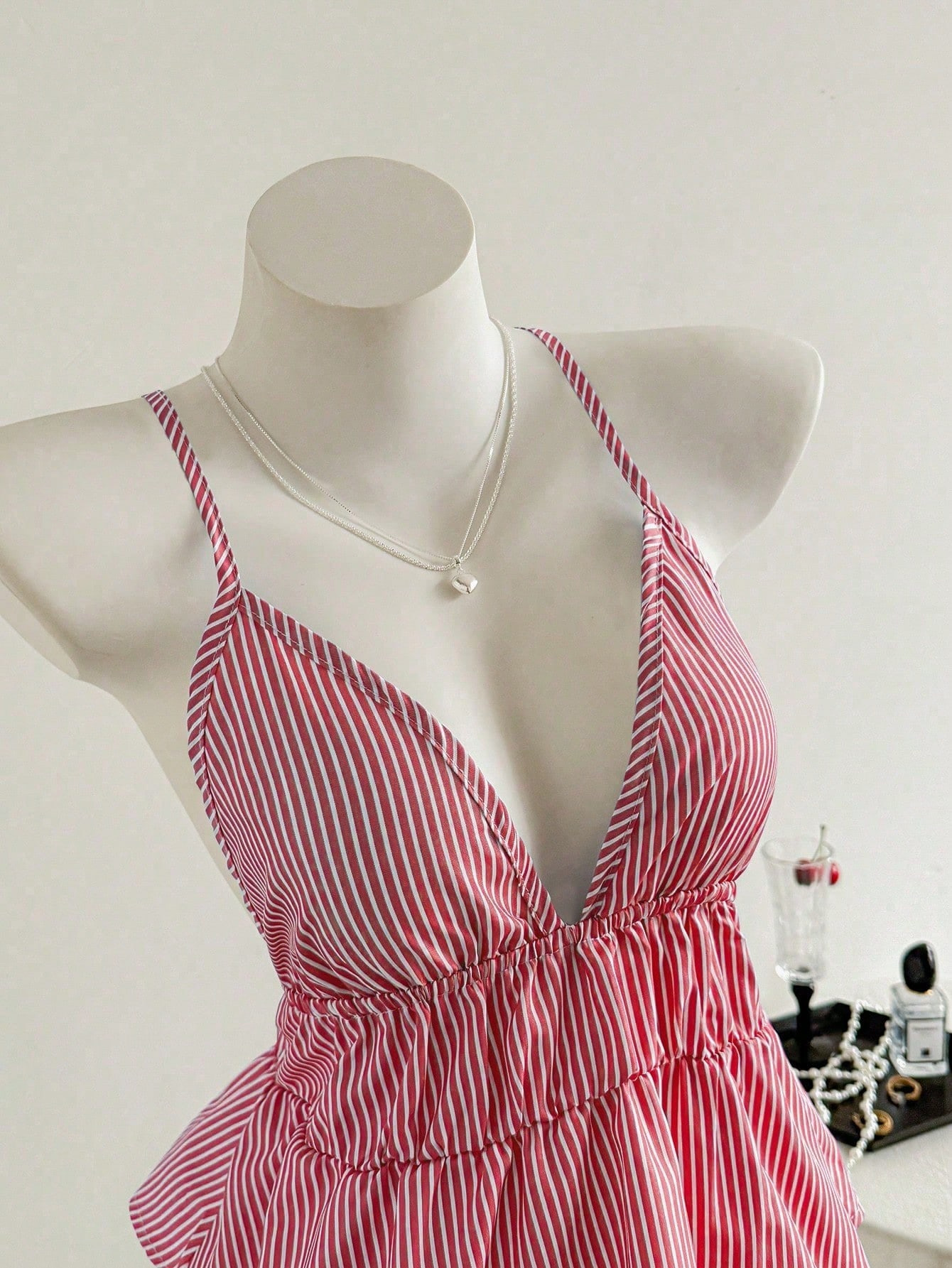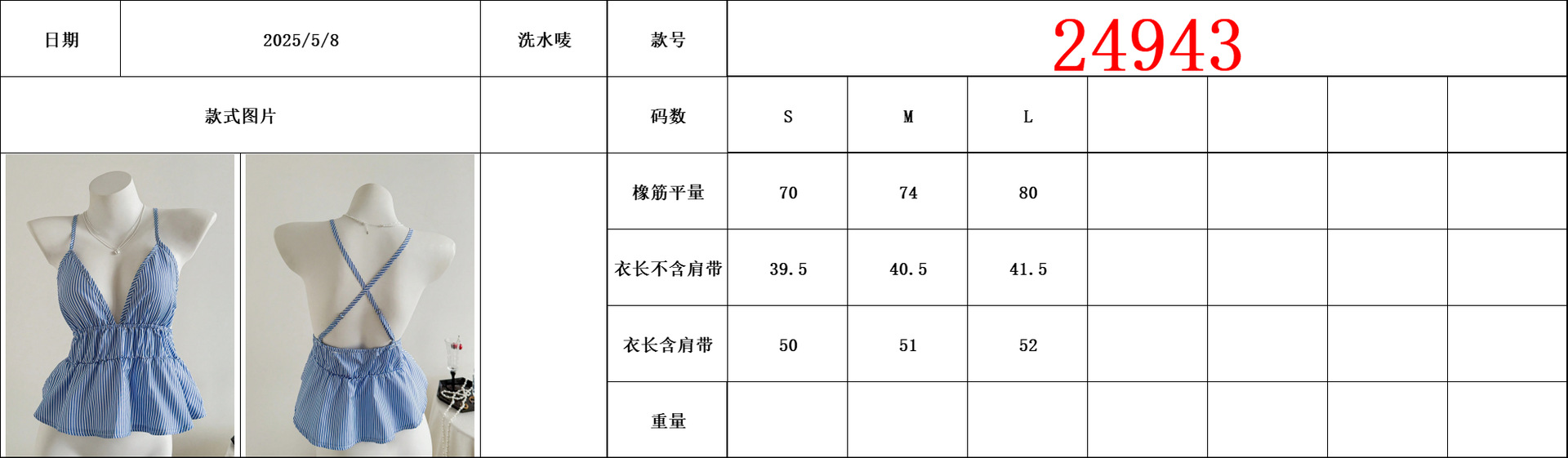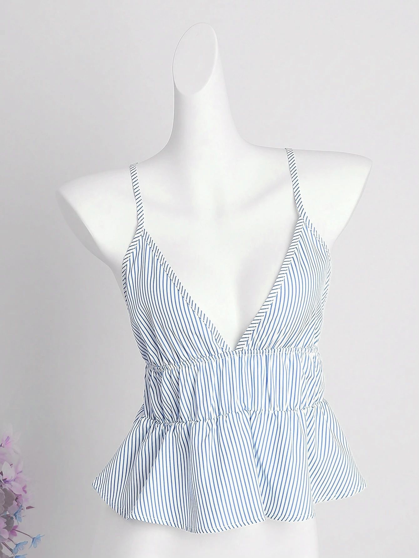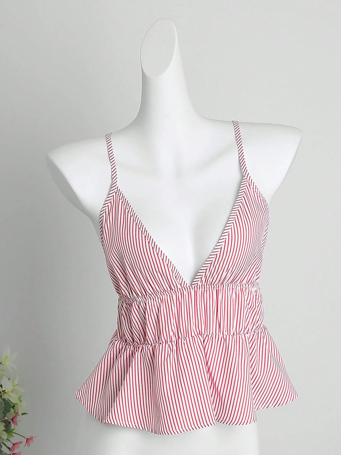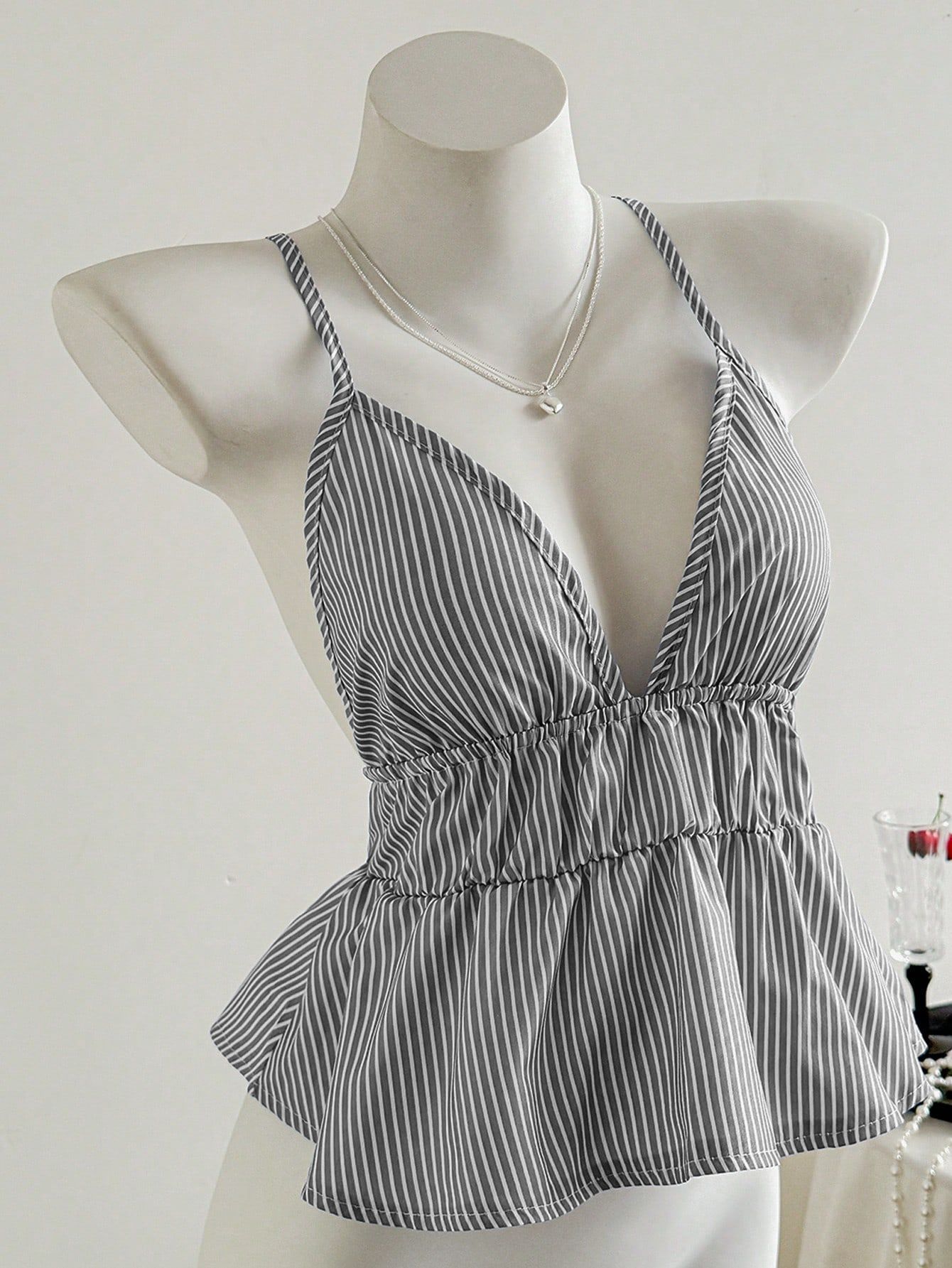 2025 유럽 및 미국 신상 섹시 슬림핏 다용도 끈나시 브이넥 스트라이프 달콤한 니치 크로스 스트랩 탑스토어 가기