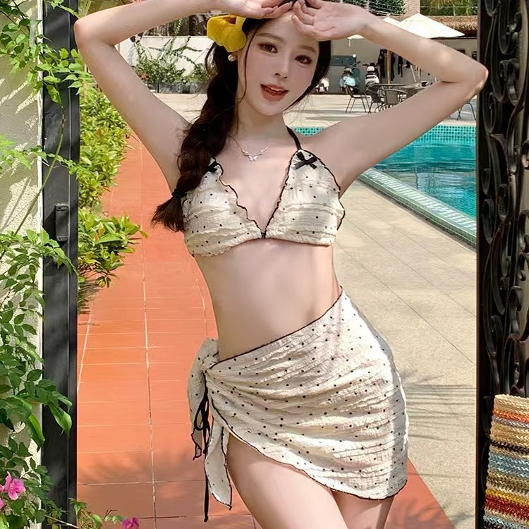 새로운 귀여운 순수한 욕망 스타일 도트 보우 스플릿 비키니 3 피스 수영복 여성 스트랩 섹시한 온천