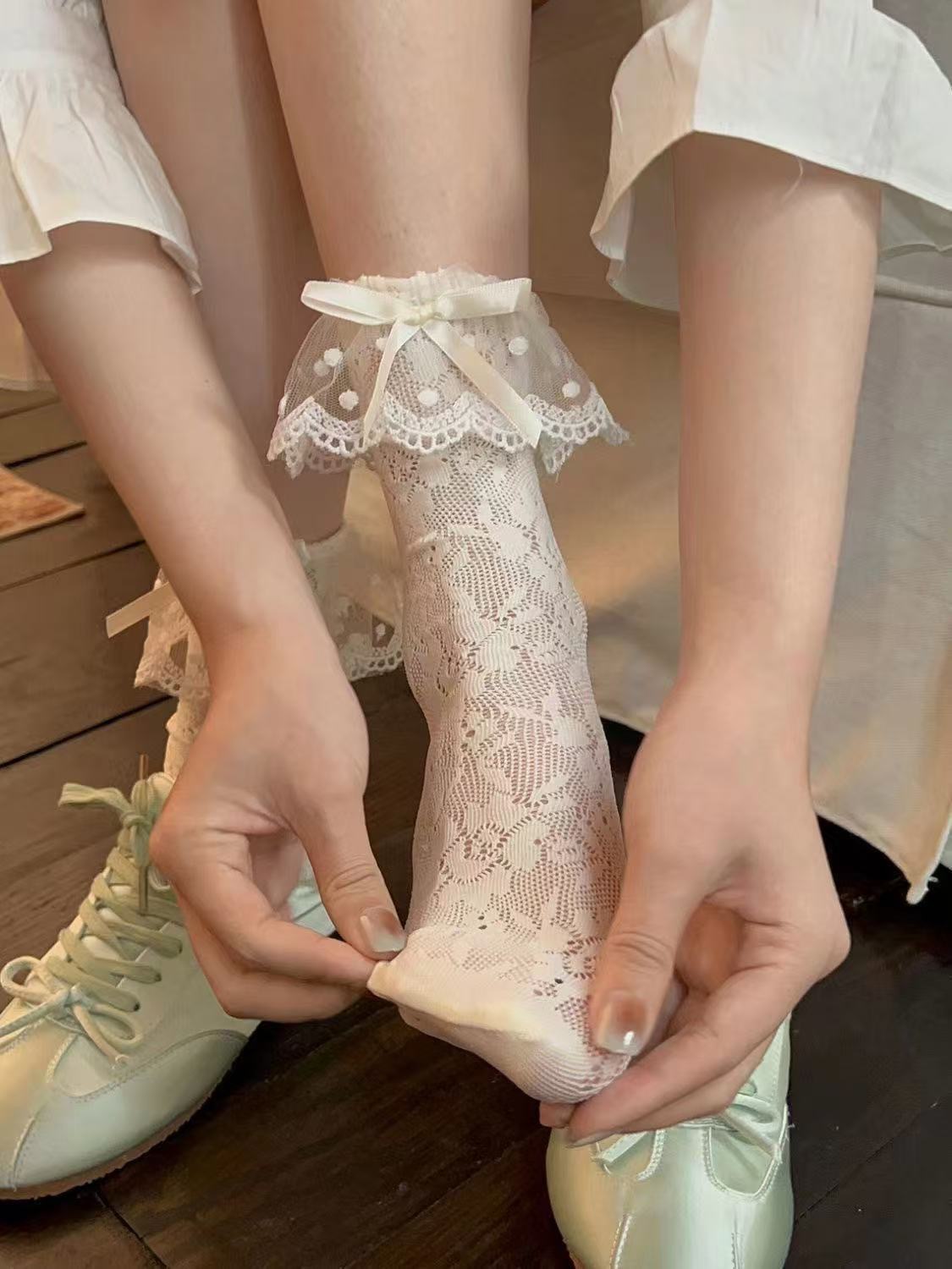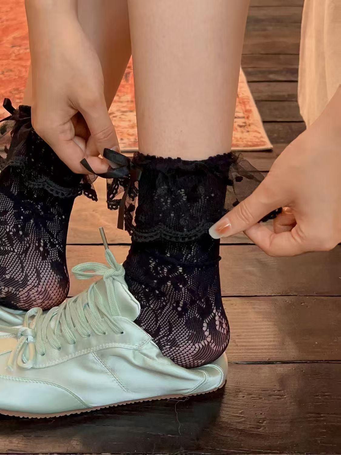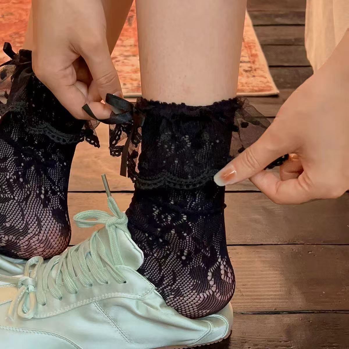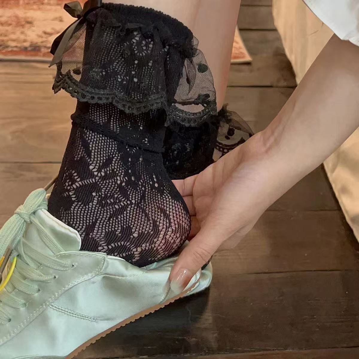 낮은 다리 양말의 얇은 여름 더미 낮은 다리 양말 중공 튜브 양말 "Annie briar" 레이스 레이스 양말스토어 가기
