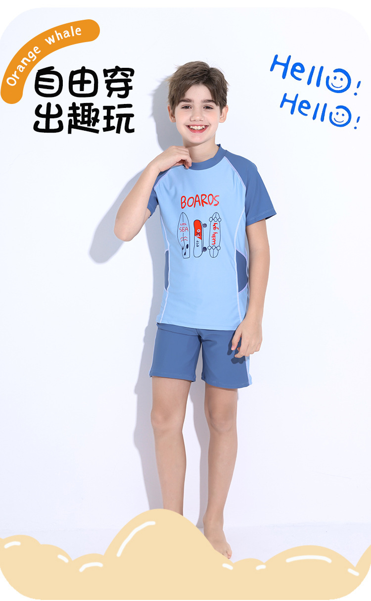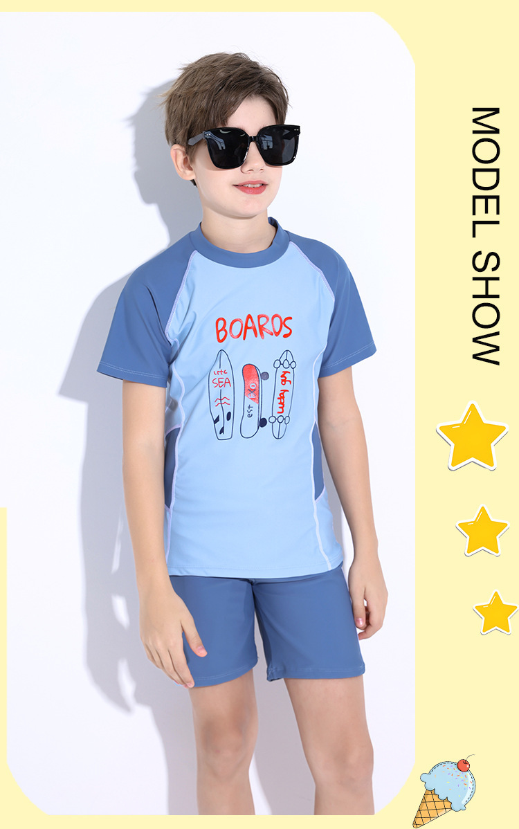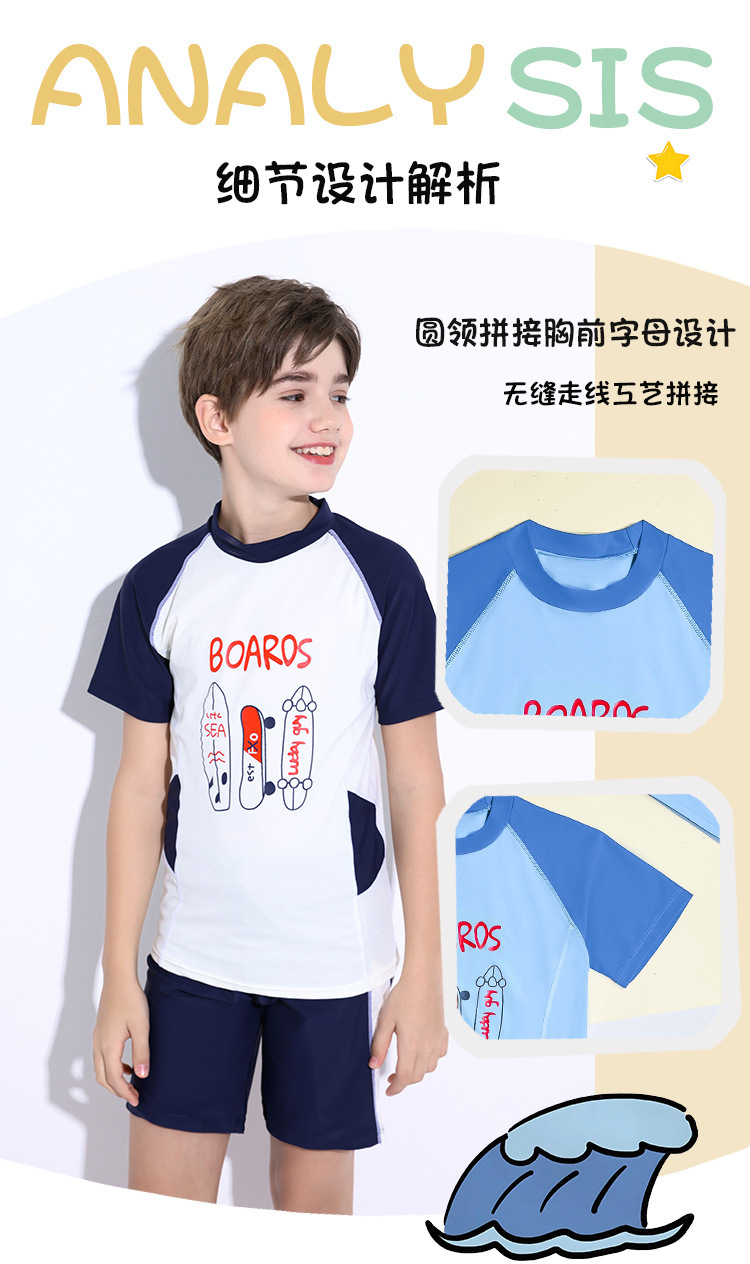 아동용 수영복, 남아용 스플릿 수영복, 중대형 아동용 새로운 패션 통기성 수영복, 남아용 해변 휴가 수영복