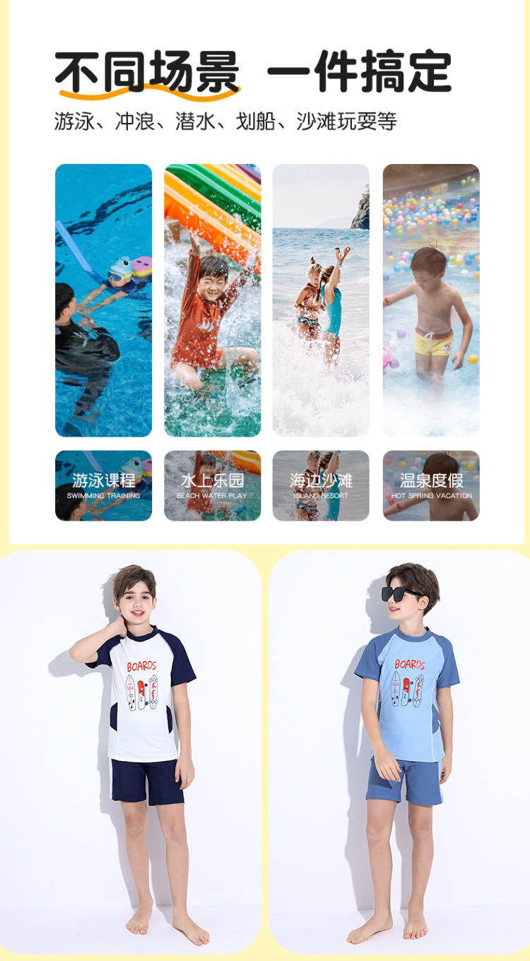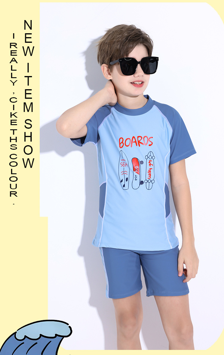 아동용 수영복, 남아용 스플릿 수영복, 중대형 아동용 새로운 패션 통기성 수영복, 남아용 해변 휴가 수영복스토어 가기