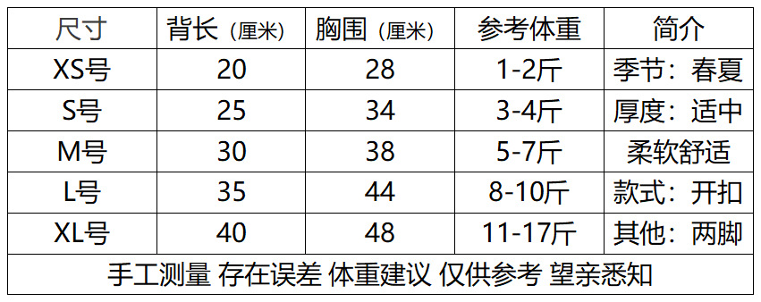• XS 등길이 20cm (권장 0.5-1.0kg)