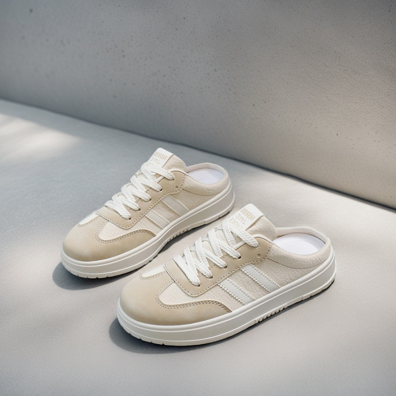 2025 여성 신발 여름 새로운 하프 토 화이트 신발 여성 트렌드 통기성 학생 다목적 캐주얼 신발 플랫 HL706