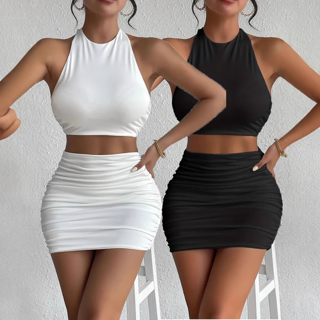 2025 유럽과 미국의 국경 간 여름 새로운 섹시한 엉덩이 커버 슈트 민소매 홀터넥 튜브 탑 세련된 여성 조끼