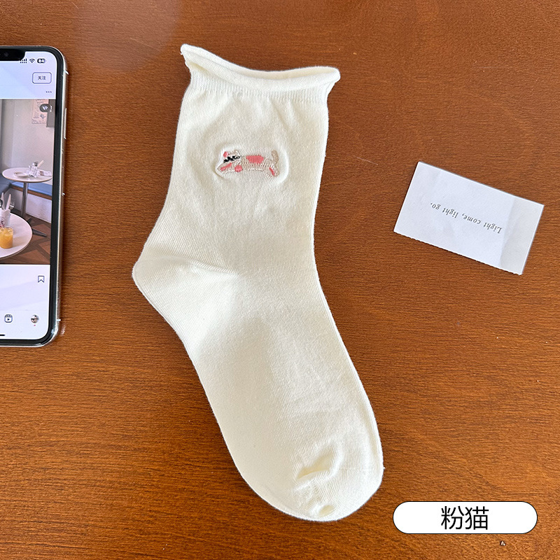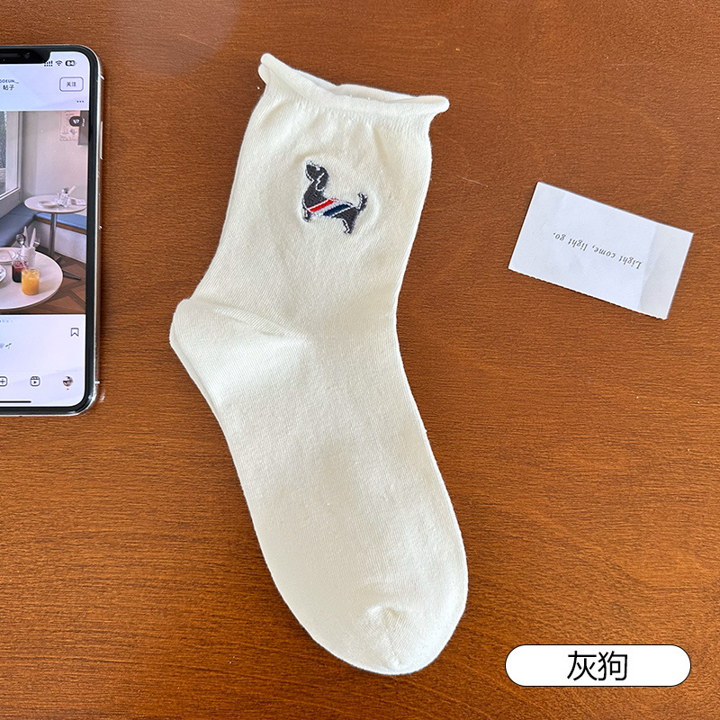 흰색 포장 양말 어린이 코튼 땀 흡수 통기성 탄성 컬 미드 양말 귀여운 재미있는 만화 패턴 캐주얼 양말스토어 가기