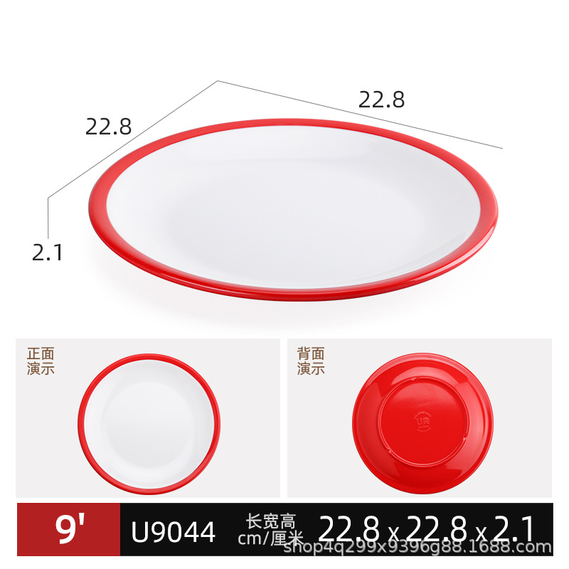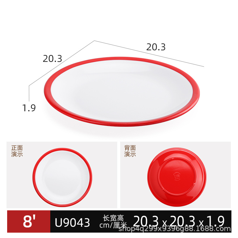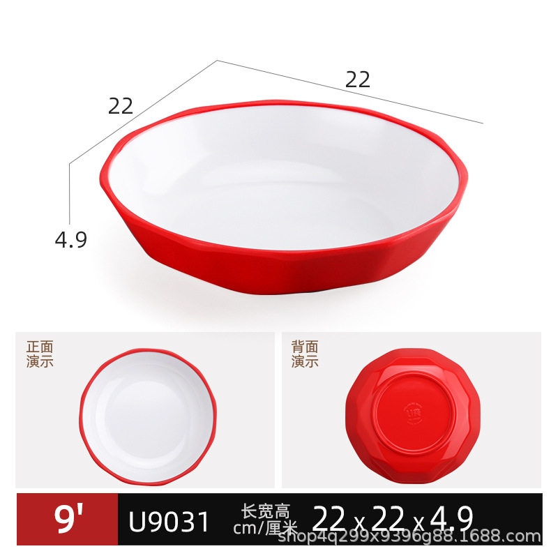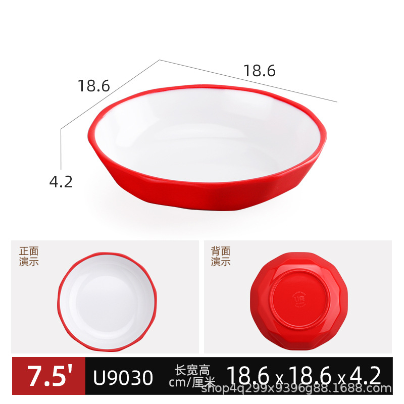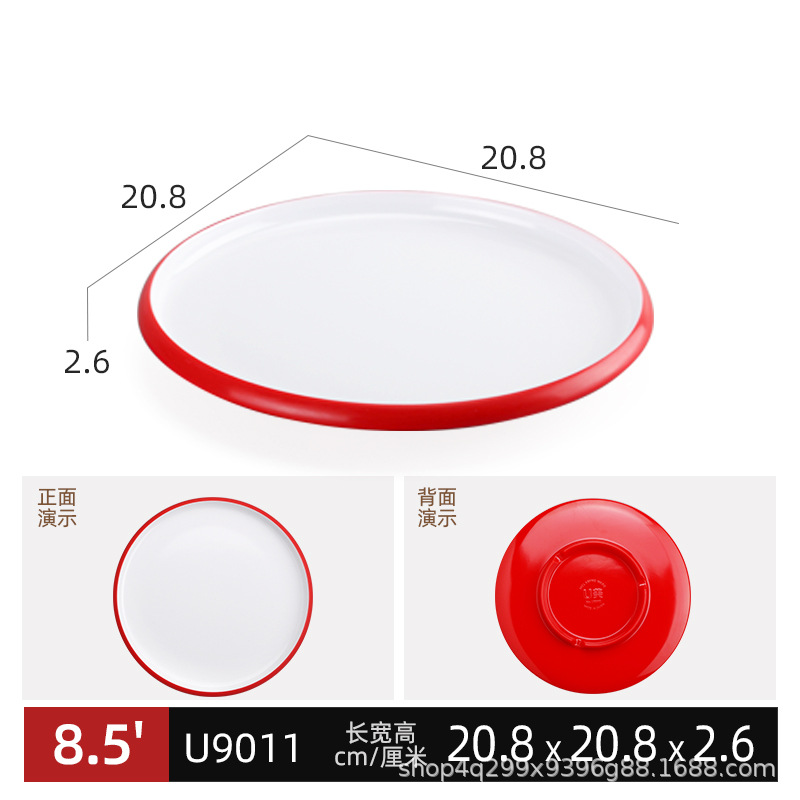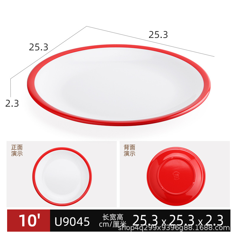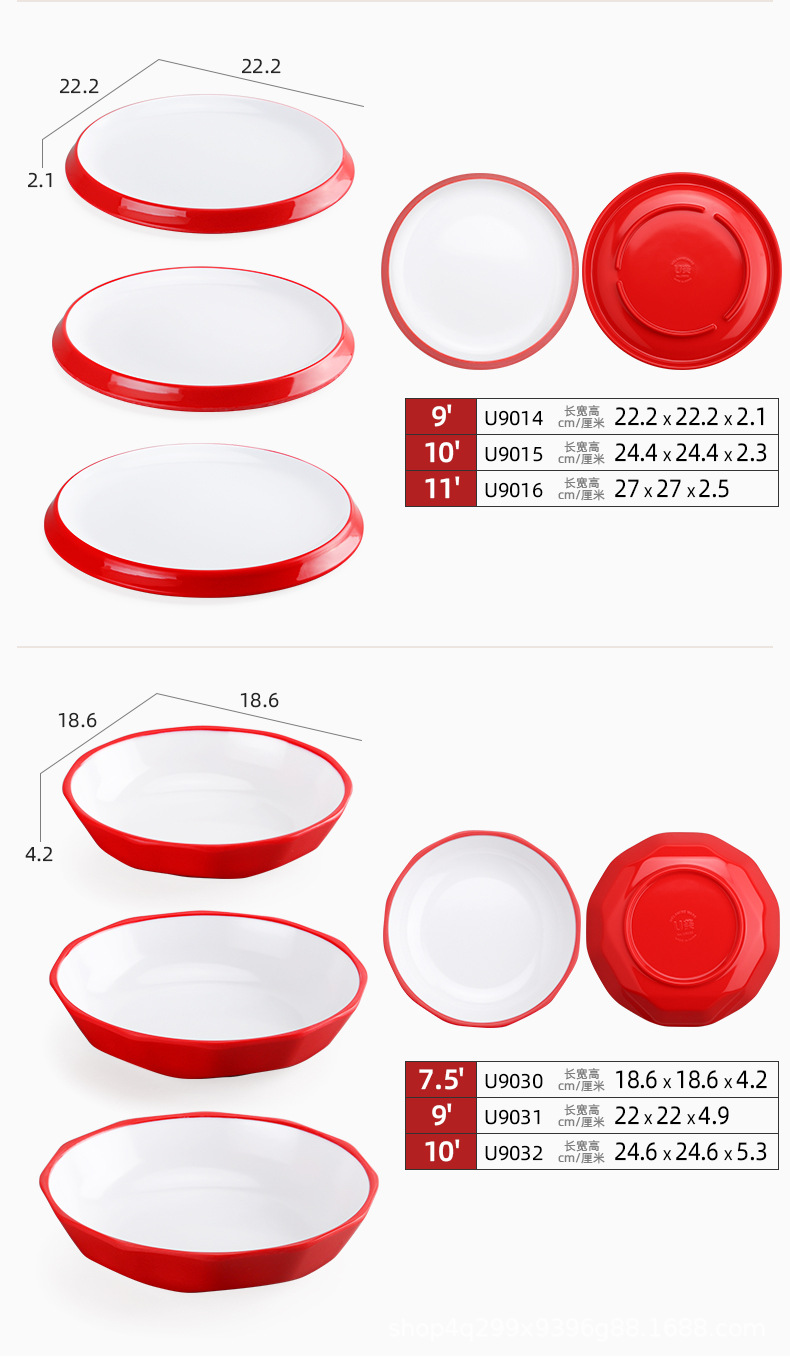 멜라민 빨간색과 흰색 접시 레스토랑 평면 접시 작은 볶음 차가운 요리 호텔 연회 중국 스타일 식기 전국 조수 냄비 반찬스토어 가기