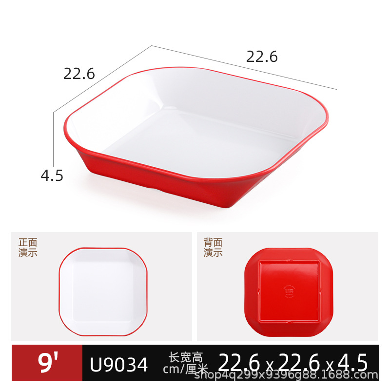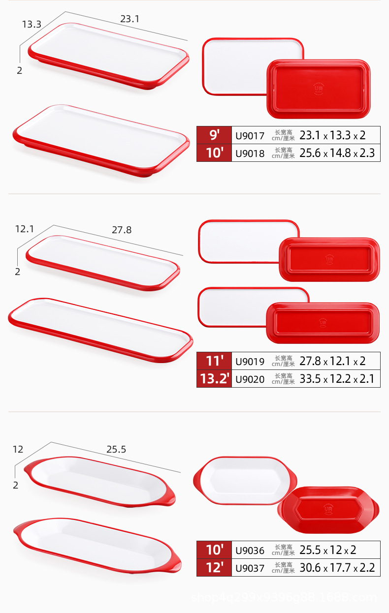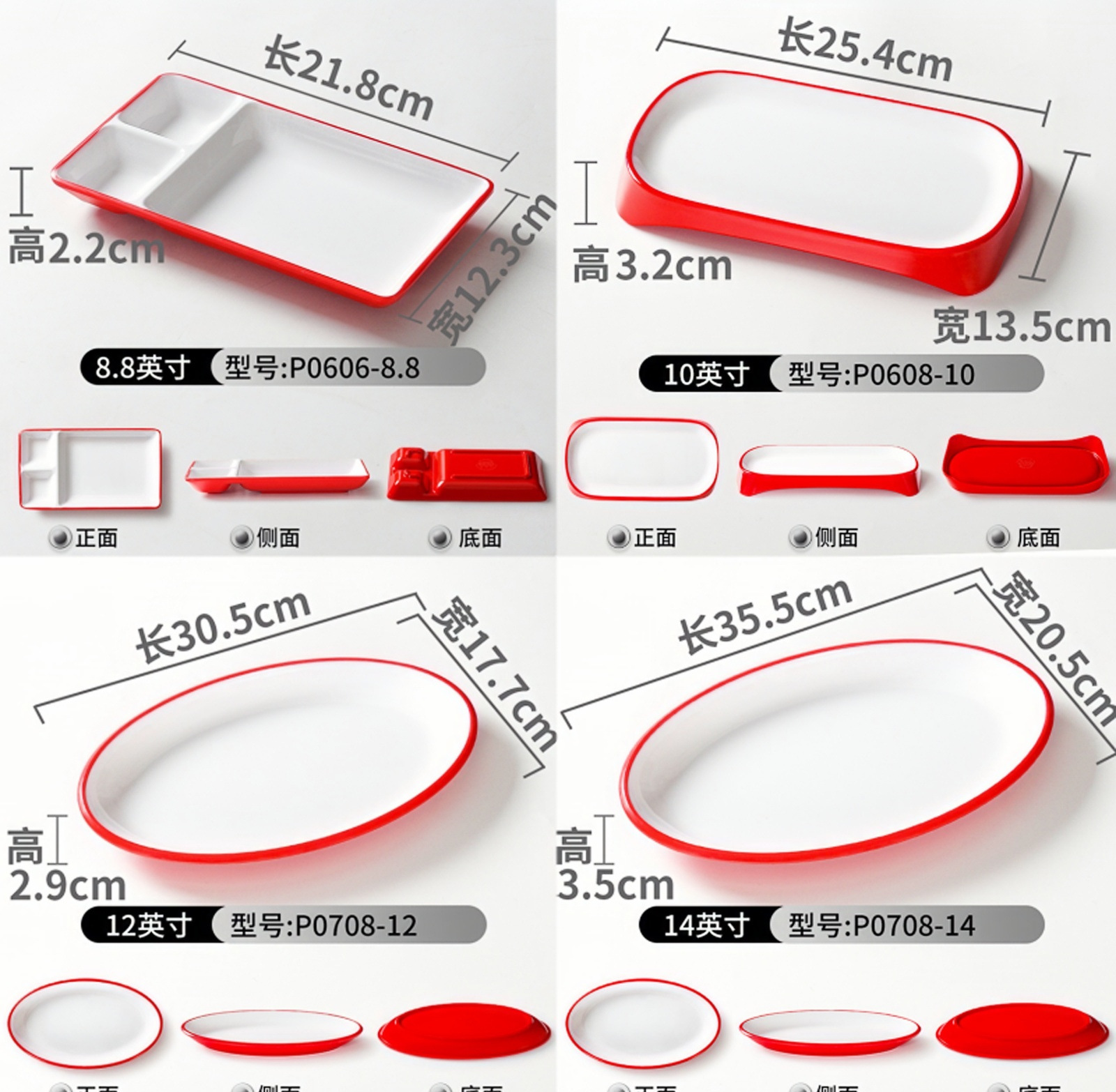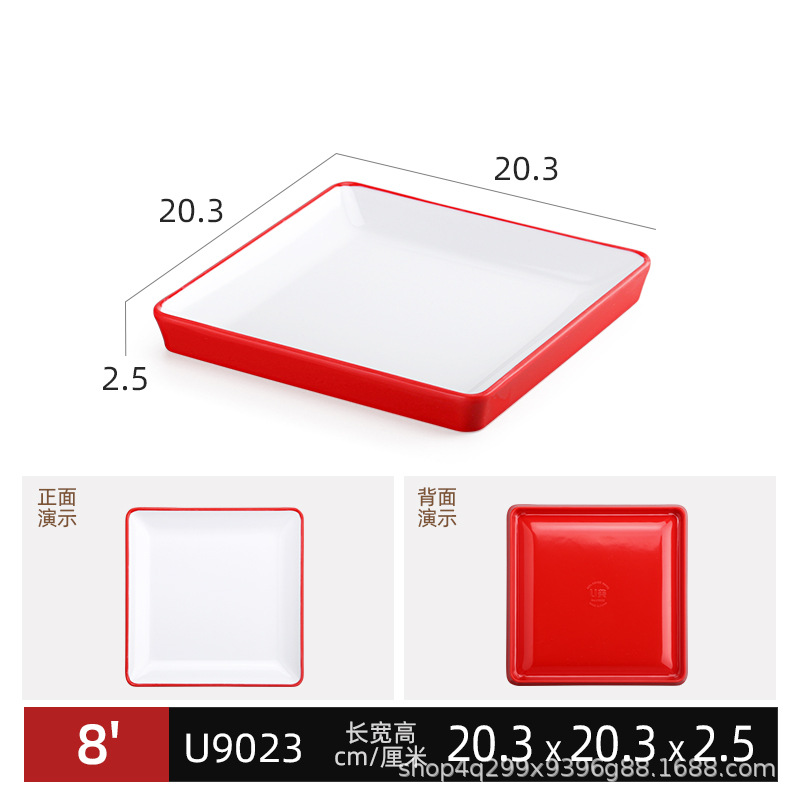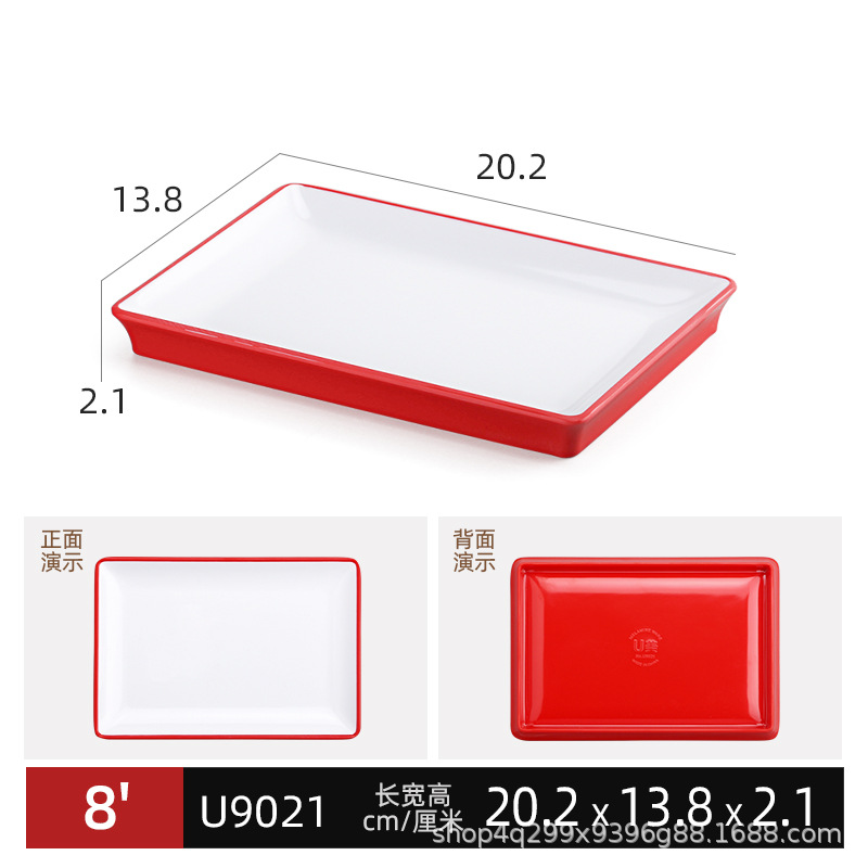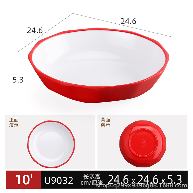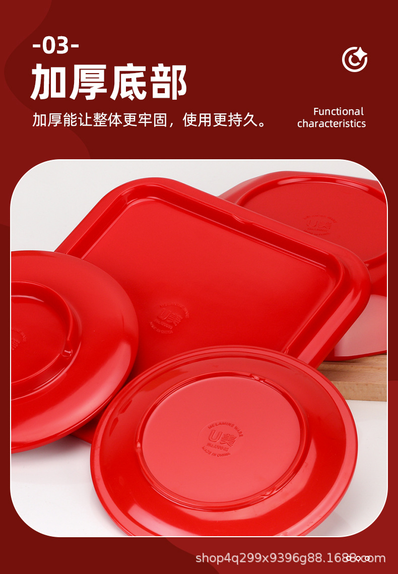 멜라민 빨간색과 흰색 접시 레스토랑 평면 접시 작은 볶음 차가운 요리 호텔 연회 중국 스타일 식기 전국 조수 냄비 반찬스토어 가기