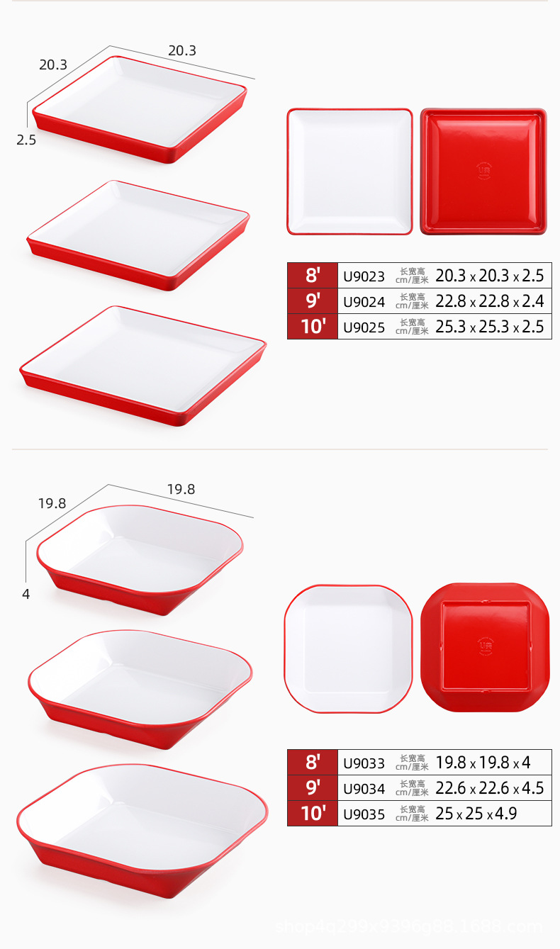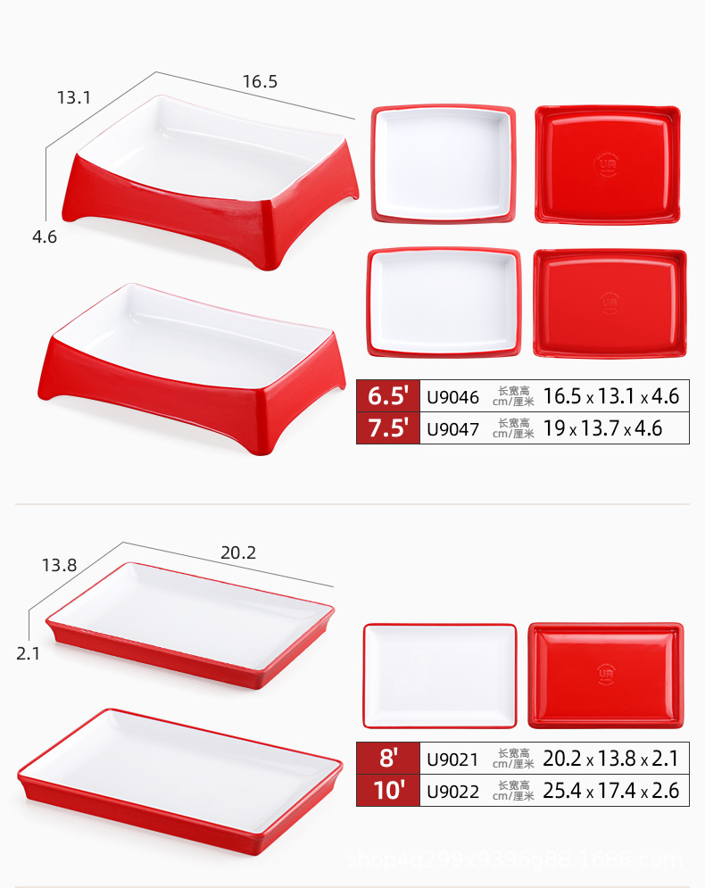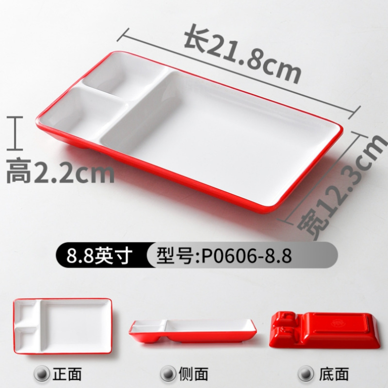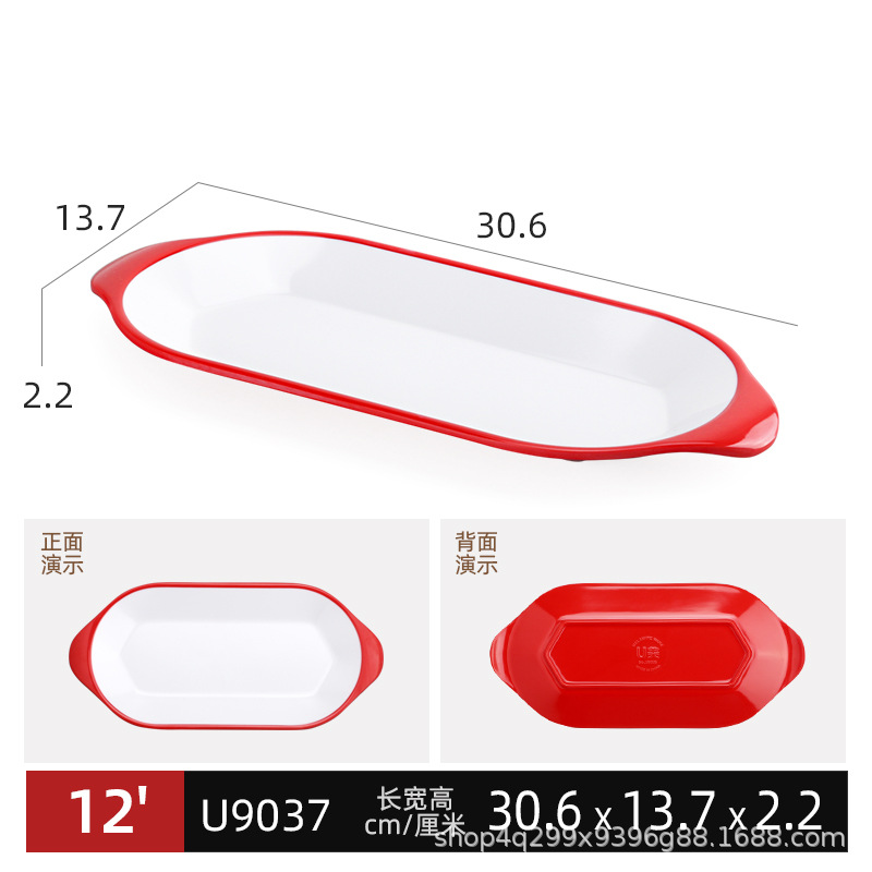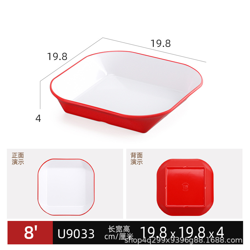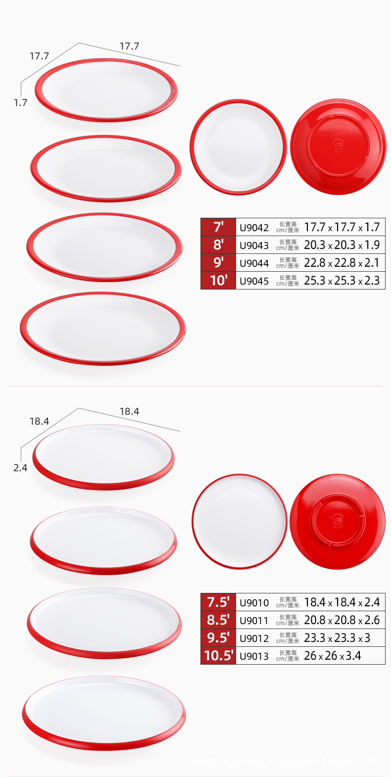 멜라민 빨간색과 흰색 접시 레스토랑 평면 접시 작은 볶음 차가운 요리 호텔 연회 중국 스타일 식기 전국 조수 냄비 반찬스토어 가기