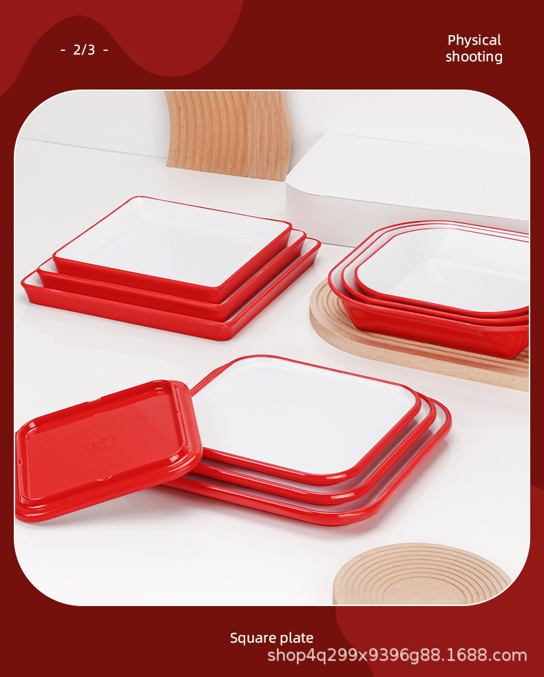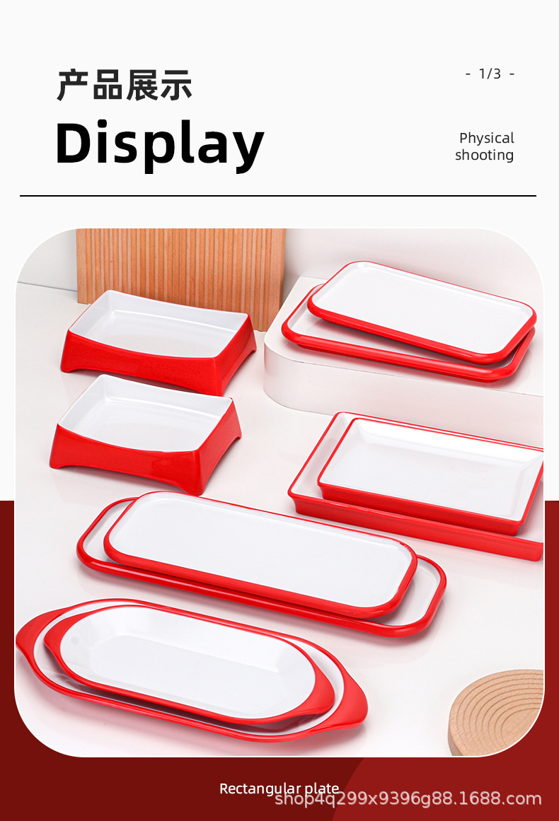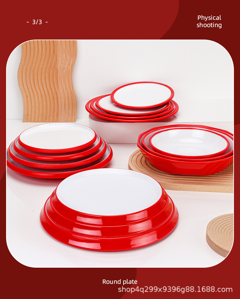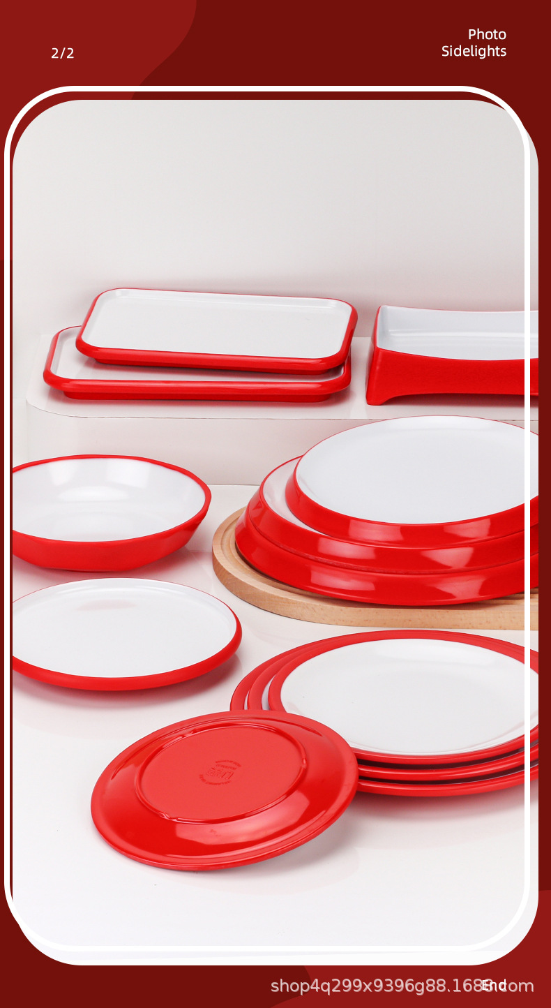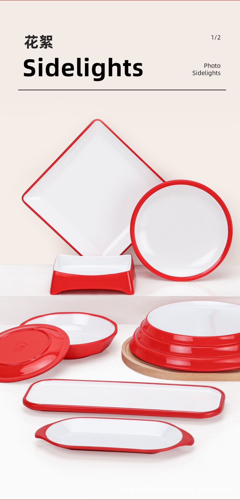 멜라민 빨간색과 흰색 접시 레스토랑 평면 접시 작은 볶음 차가운 요리 호텔 연회 중국 스타일 식기 전국 조수 냄비 반찬