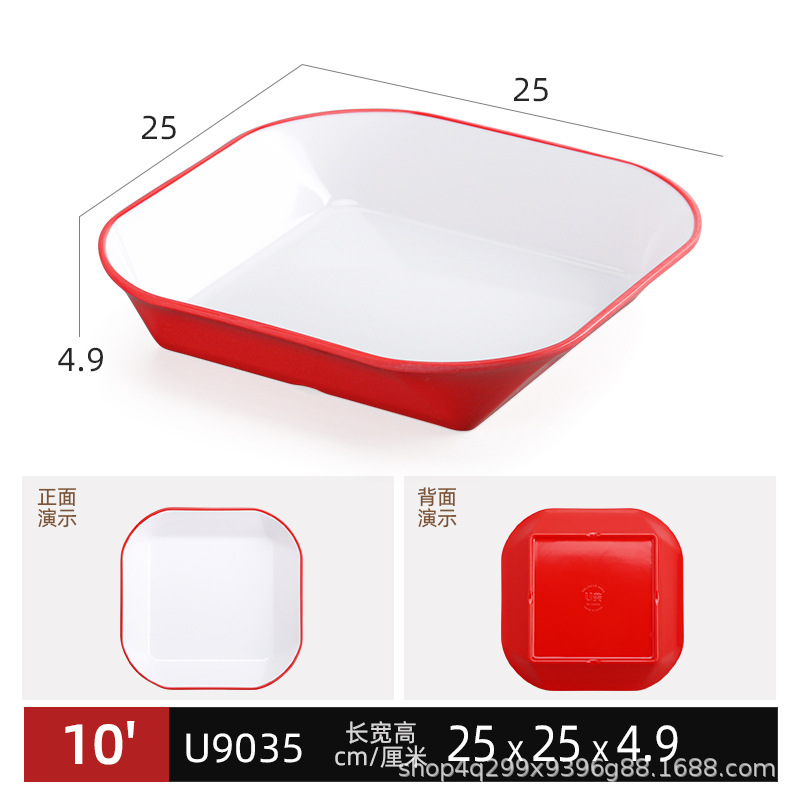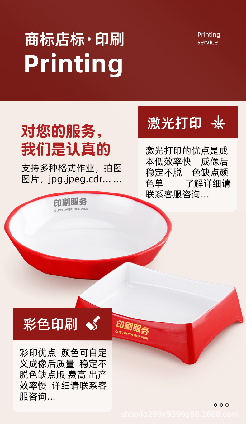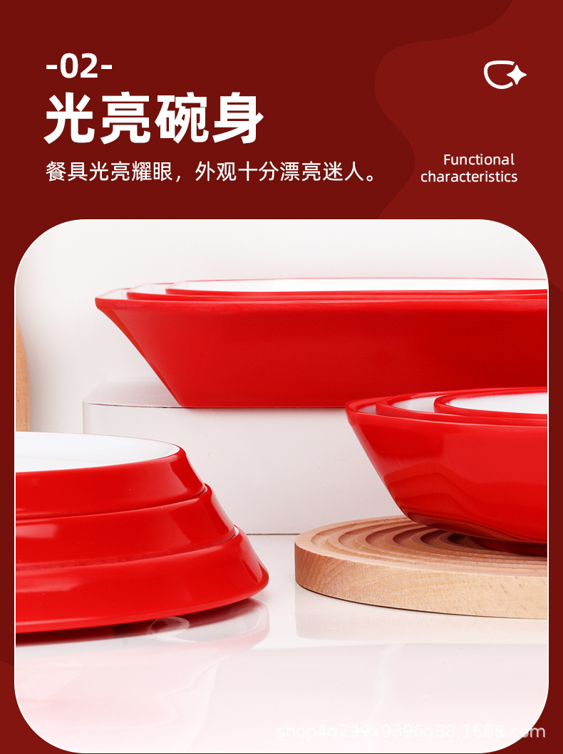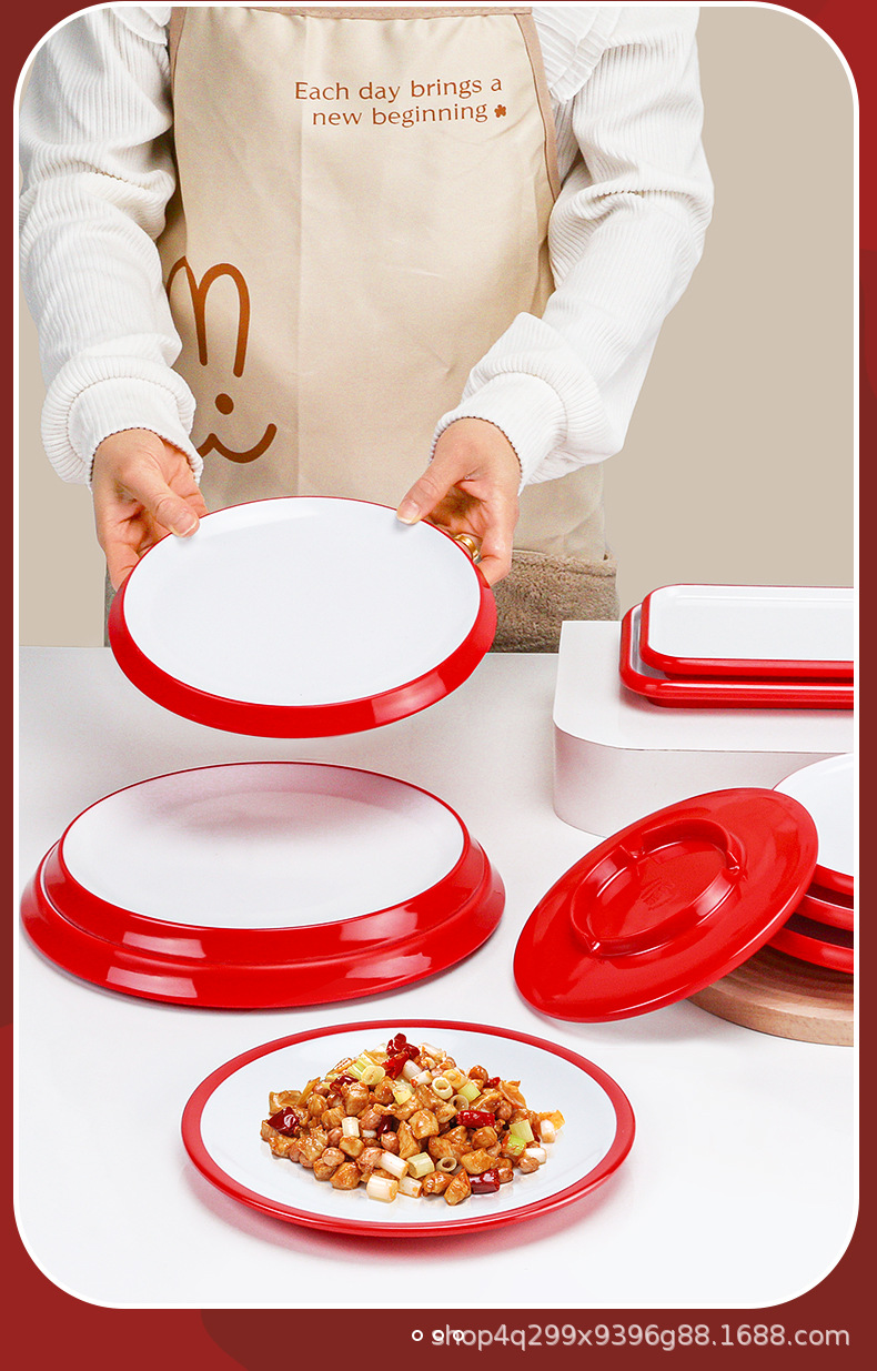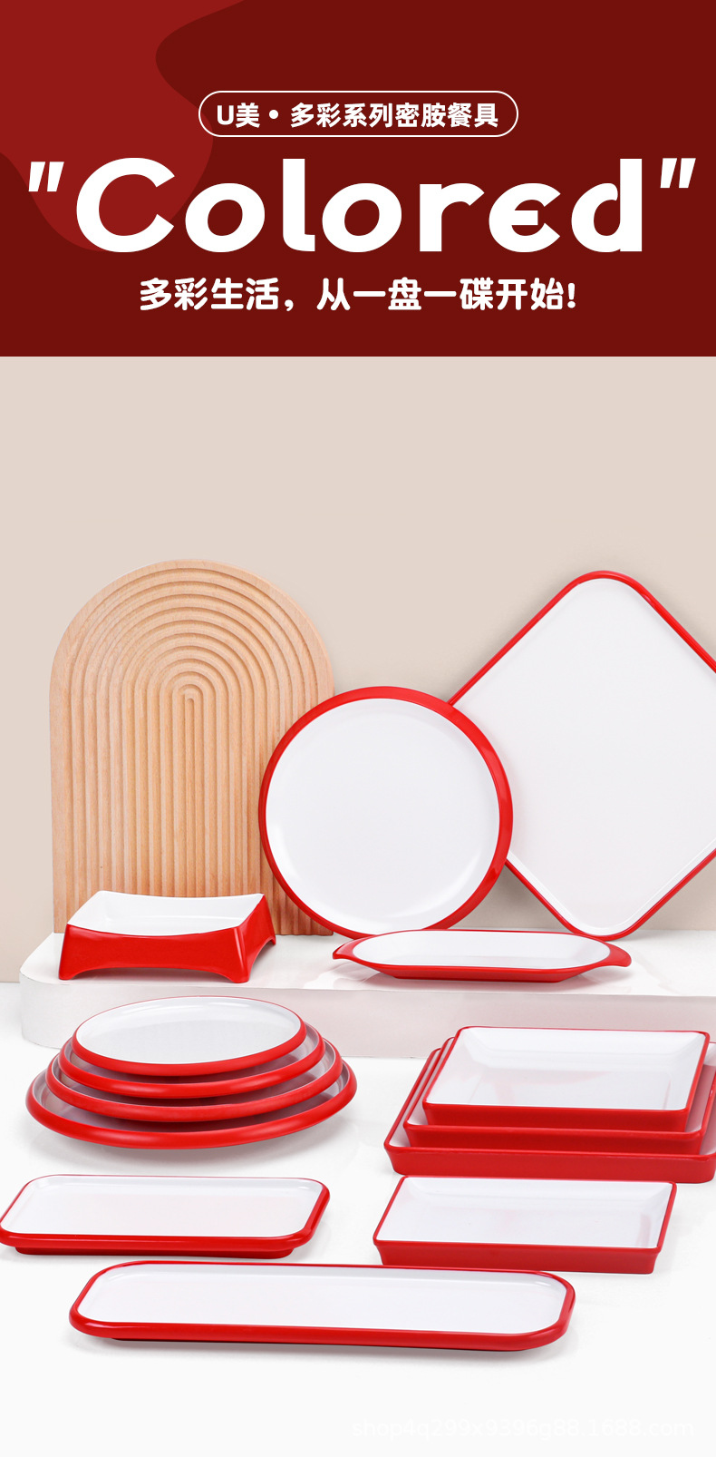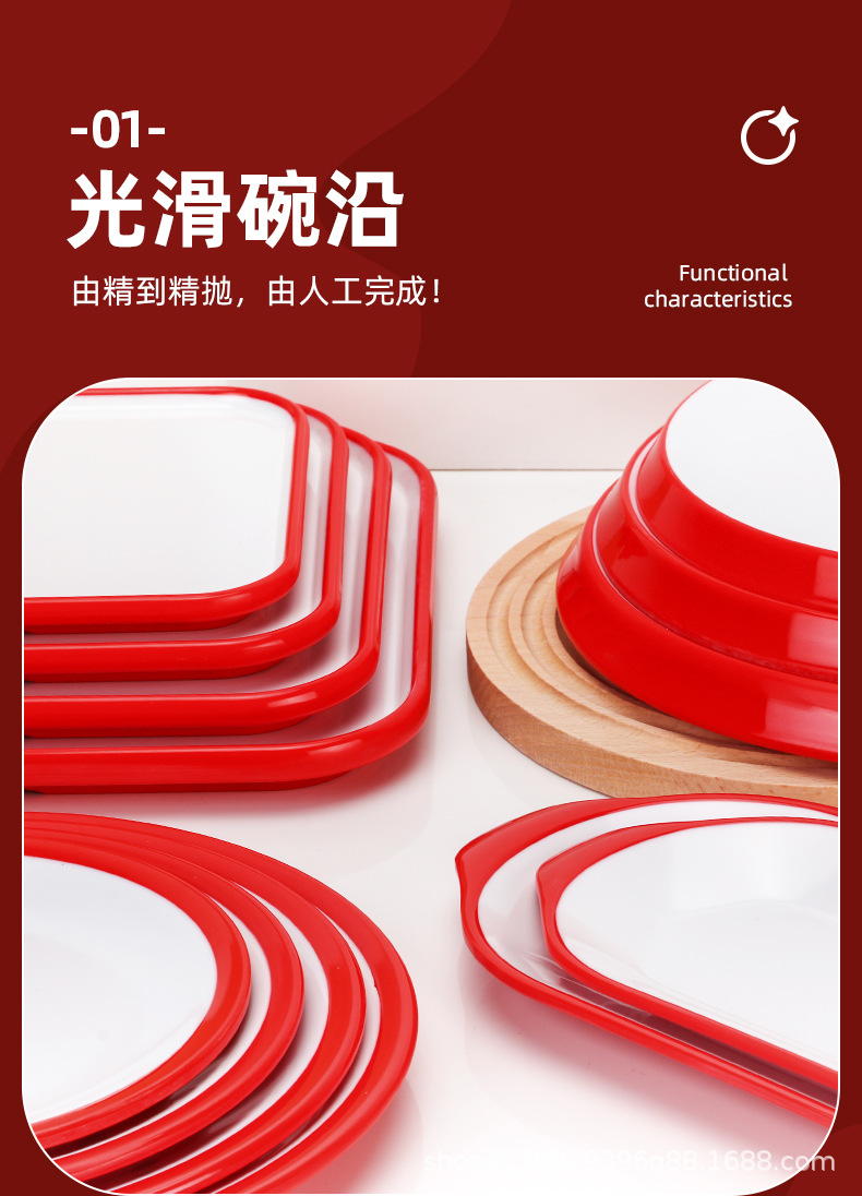 멜라민 빨간색과 흰색 접시 레스토랑 평면 접시 작은 볶음 차가운 요리 호텔 연회 중국 스타일 식기 전국 조수 냄비 반찬