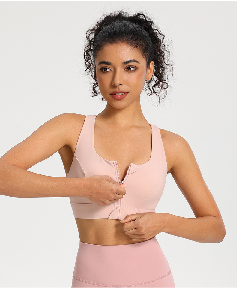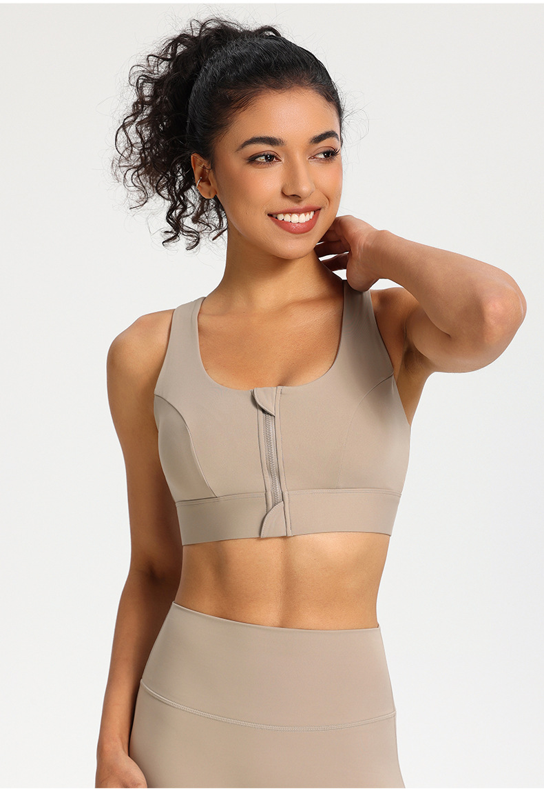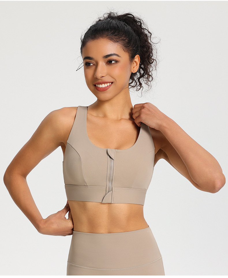 전면 지퍼 스포츠 속옷 충격 방지 고강도 원피스 고정 컵 외부 착용 뷰티 백 피트니스 요가 조끼 브래지어