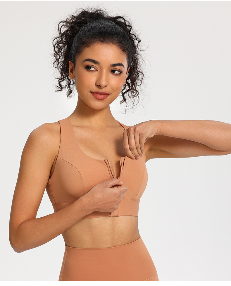 전면 지퍼 스포츠 속옷 충격 방지 고강도 원피스 고정 컵 외부 착용 뷰티 백 피트니스 요가 조끼 브래지어스토어 가기