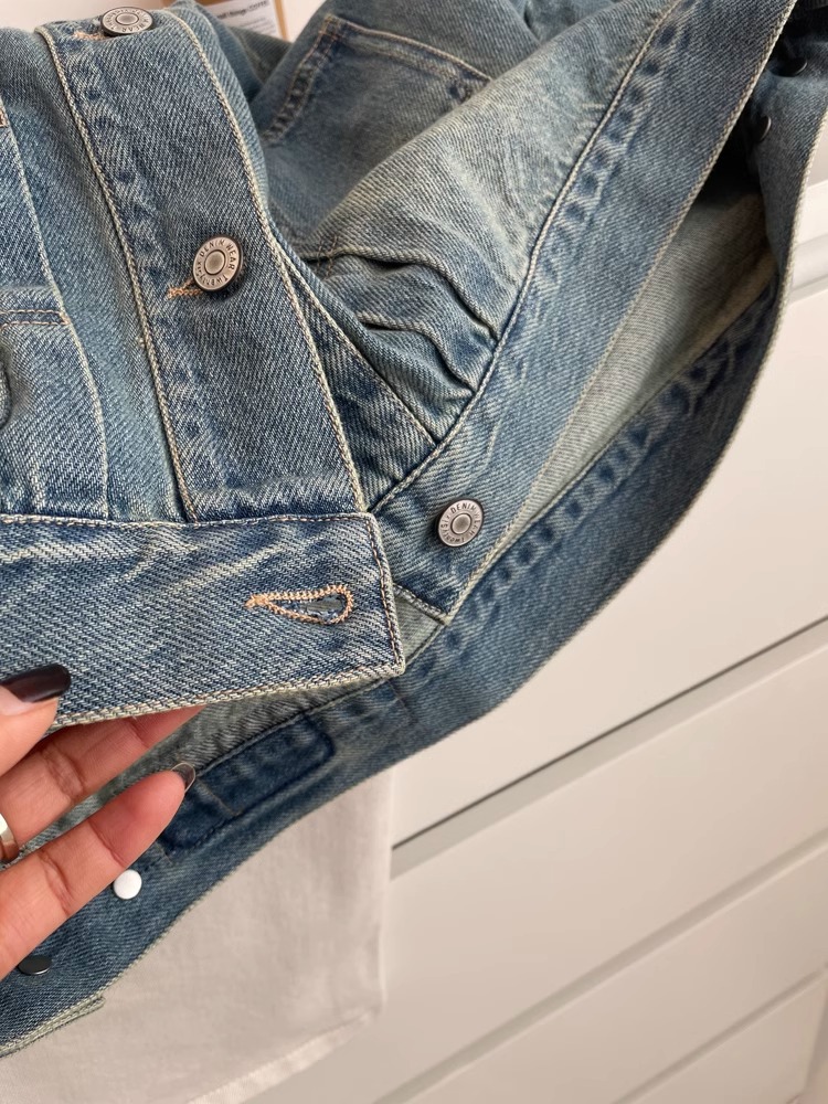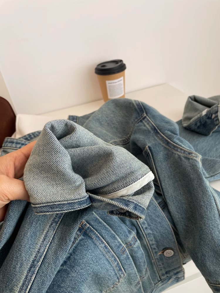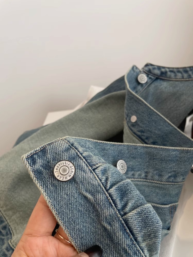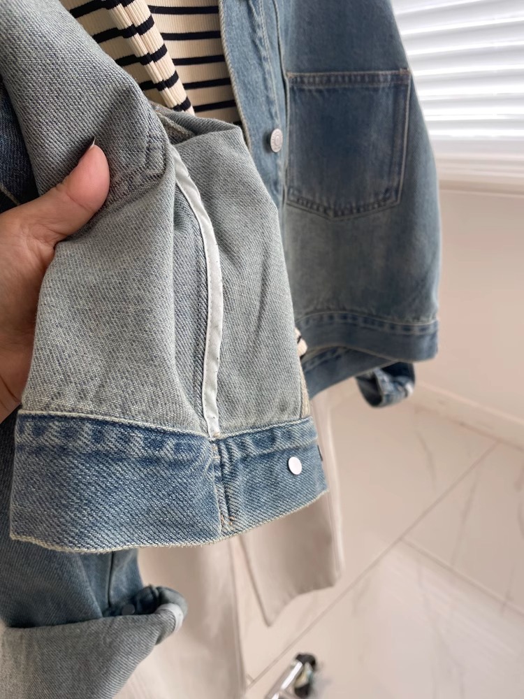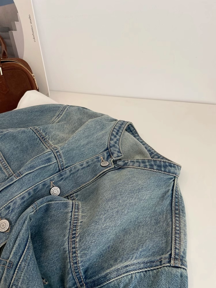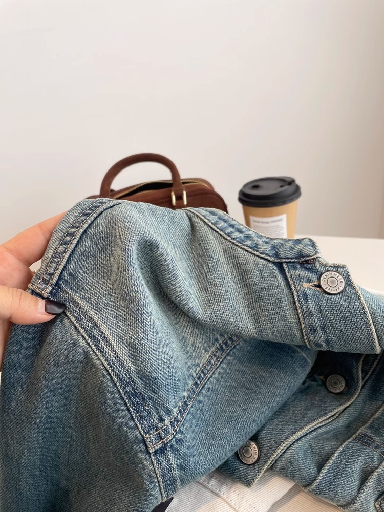 레트로 워터 첫 블루 칼라 데님 짧은 코트 여성! 2025 봄 한국식 슬림 핏 캐주얼 재킷스토어 가기