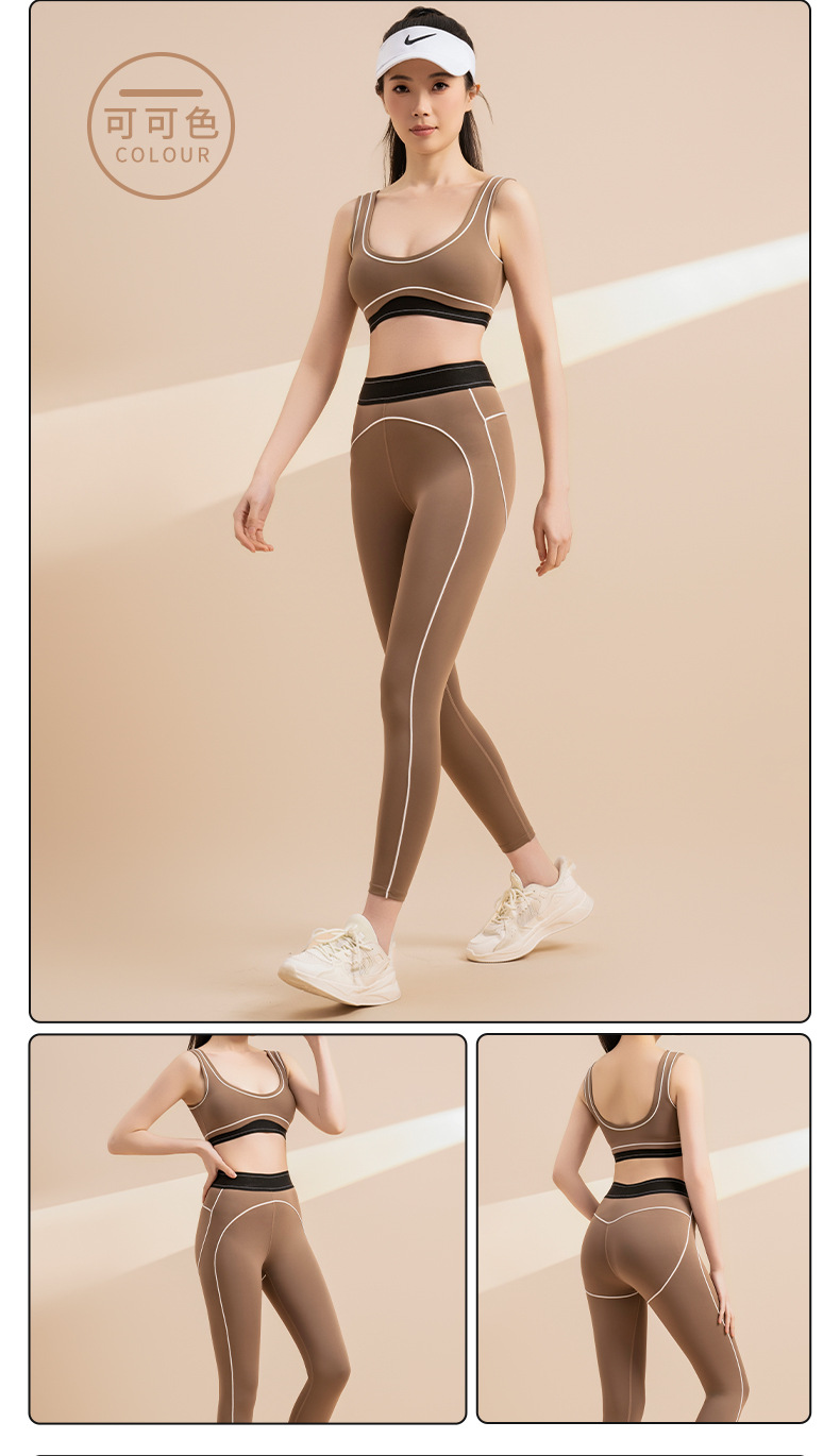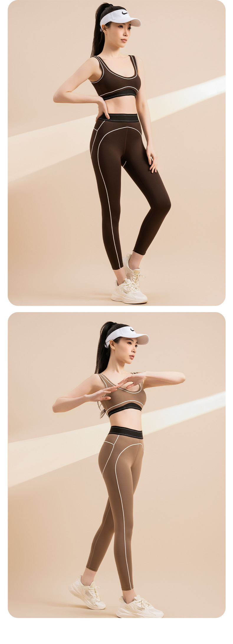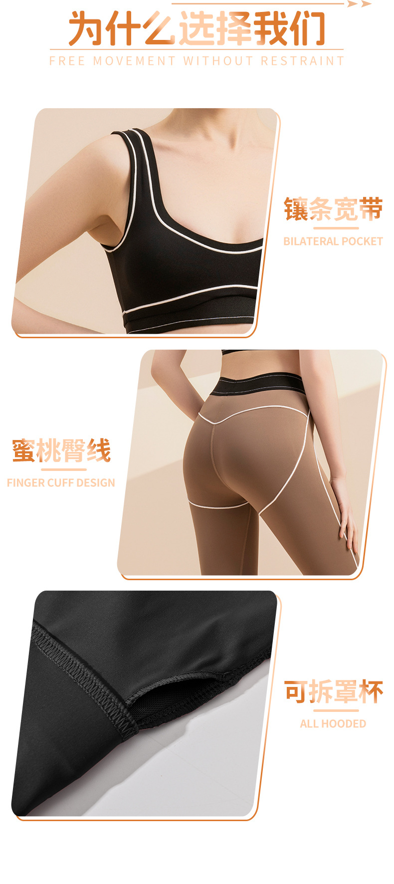 노딘 인레이 대비 알몸 요가 브래지어 바지 수분 흡수 및 땀 빠른 건조 달리기 피트니스 운동복 세트