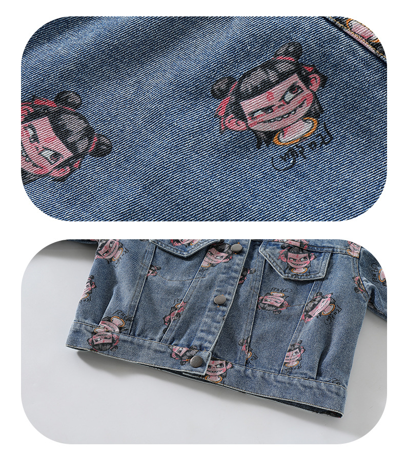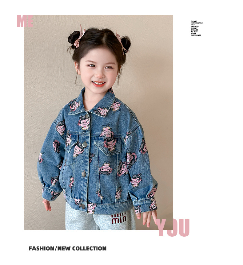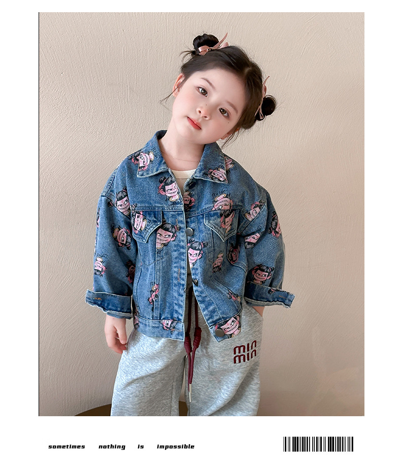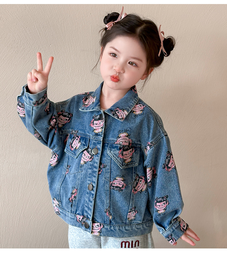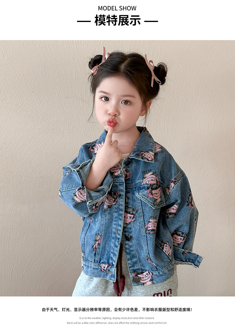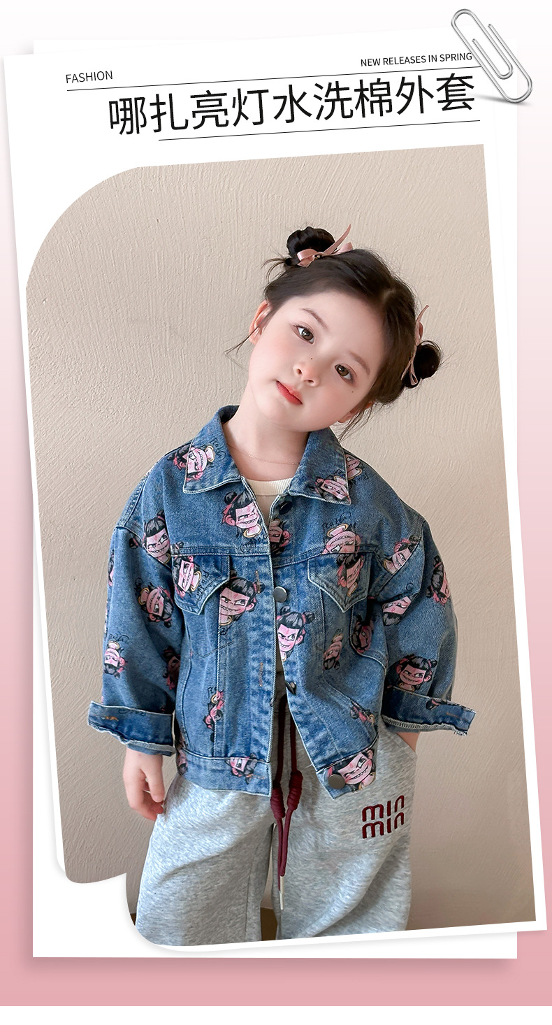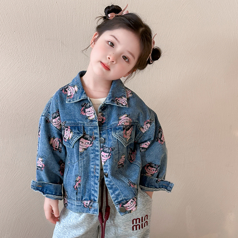나자 전면 프린트 ~ 여아용 중국 패션 데님 재킷, 패셔너블한 여아용 상의, 아동용 가디건, 봄 패션, 트렌디하고 시원한 스트리트웨어스토어 가기