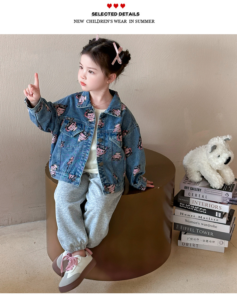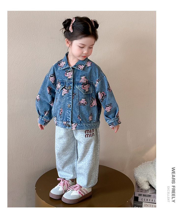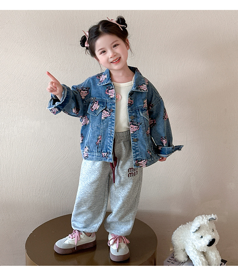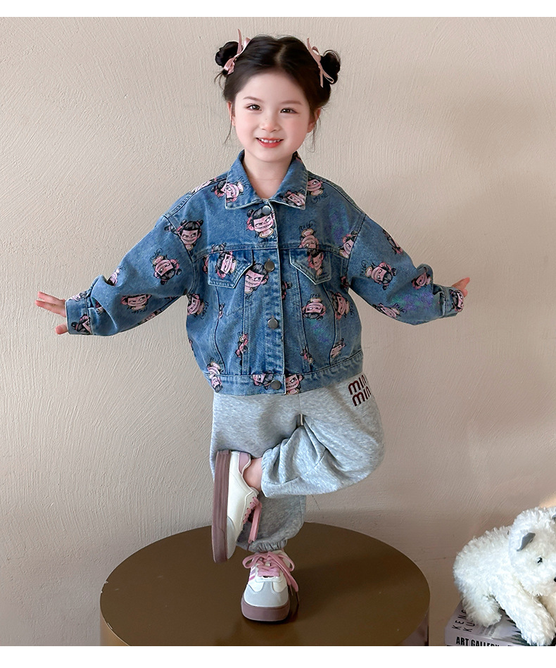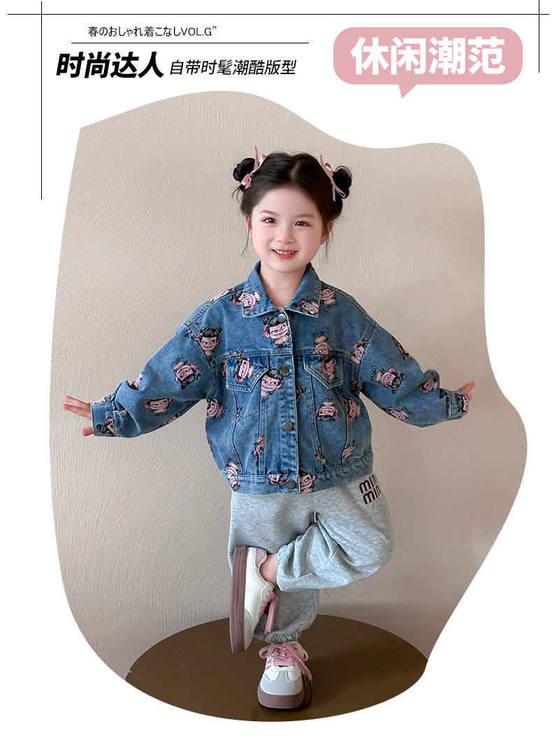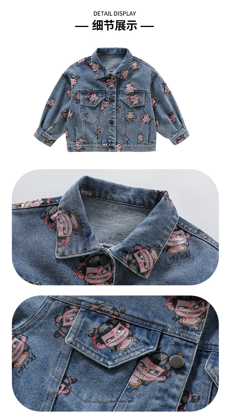 나자 전면 프린트 ~ 여아용 중국 패션 데님 재킷, 패셔너블한 여아용 상의, 아동용 가디건, 봄 패션, 트렌디하고 시원한 스트리트웨어스토어 가기