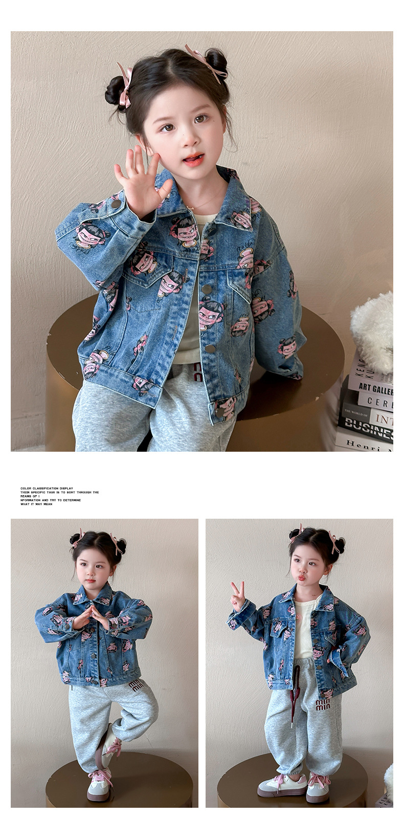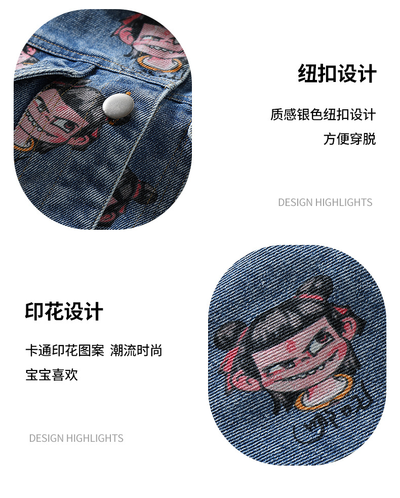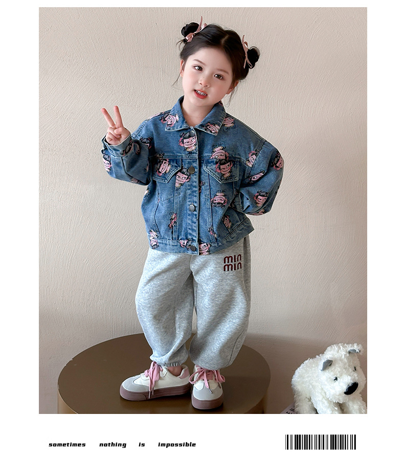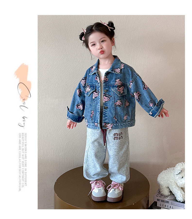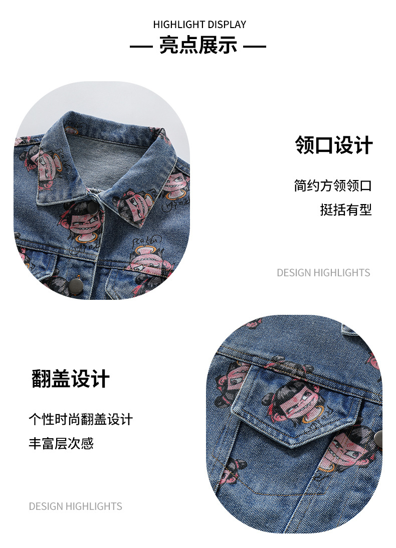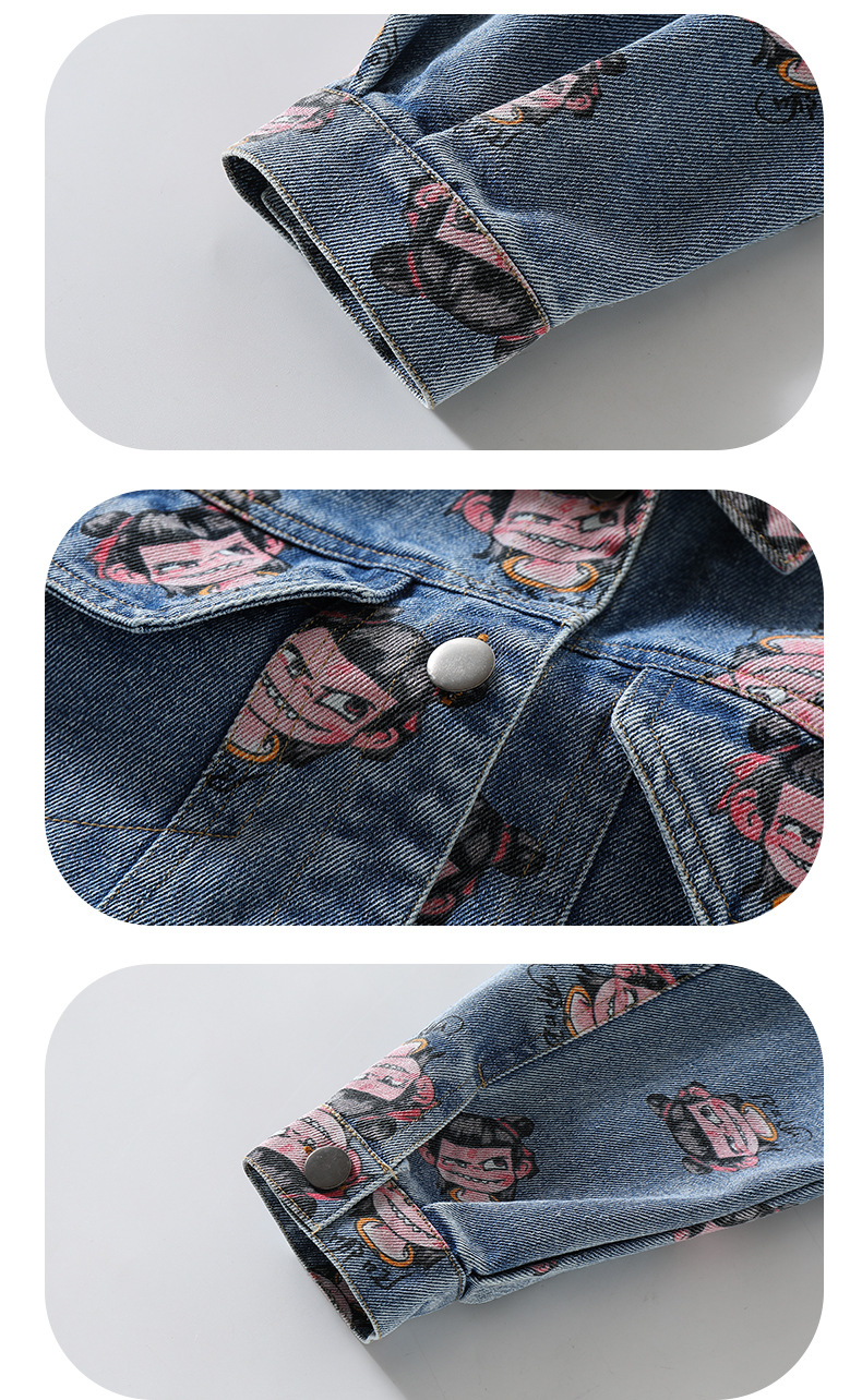 나자 전면 프린트 ~ 여아용 중국 패션 데님 재킷, 패셔너블한 여아용 상의, 아동용 가디건, 봄 패션, 트렌디하고 시원한 스트리트웨어스토어 가기