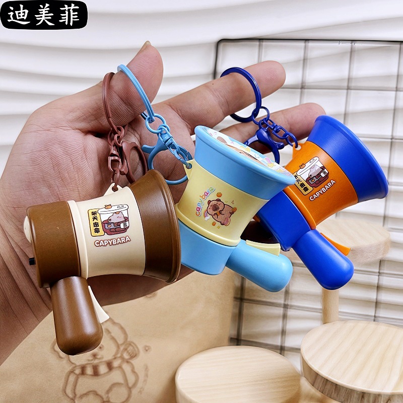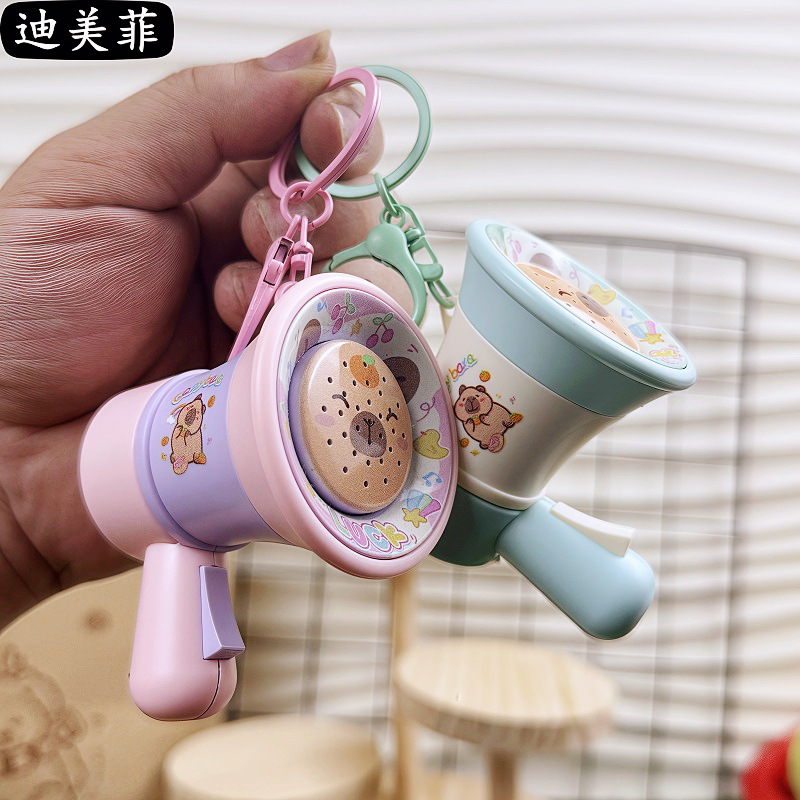 만화 카드 피발라 녹음 음성 변경 재미 작은 뿔 재미 이상한 창조적 인 음악 장난감 키 체인 펜던트
