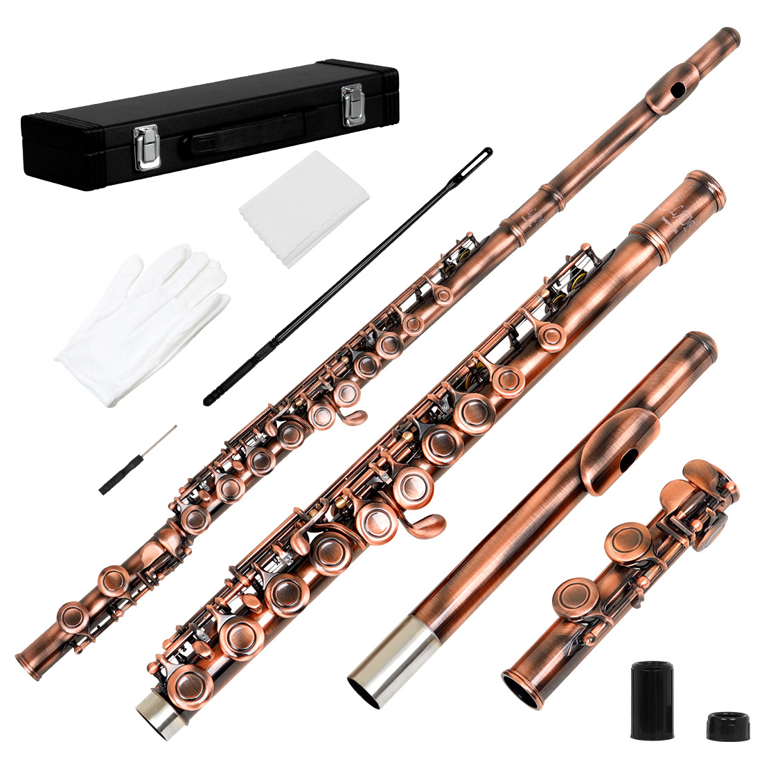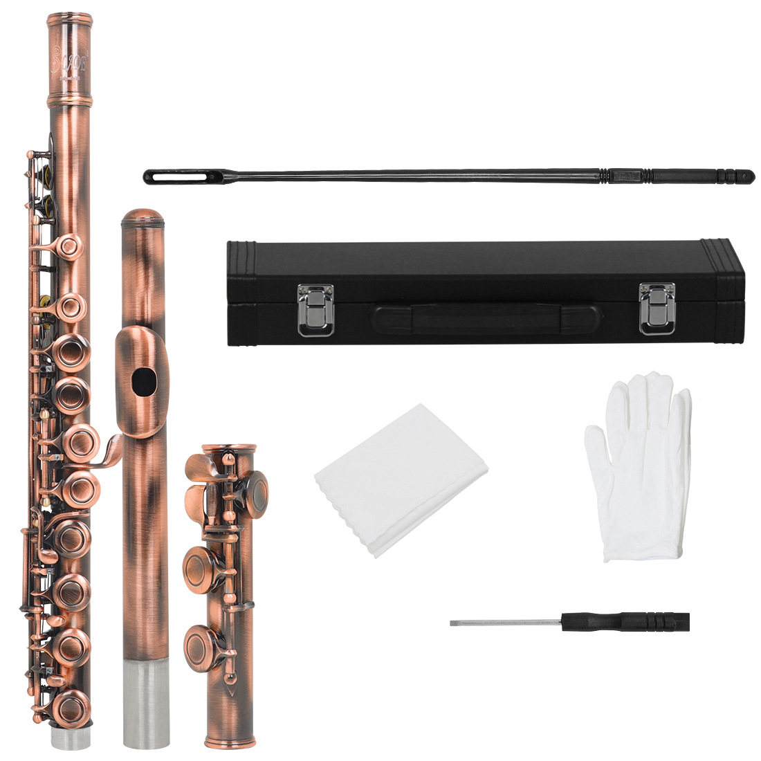 包装清单:长笛*1 皮革盒*1 清洁棒*1 螺丝刀*1 擦布*1(颜色随机) 手套*1双 管口保护套*2