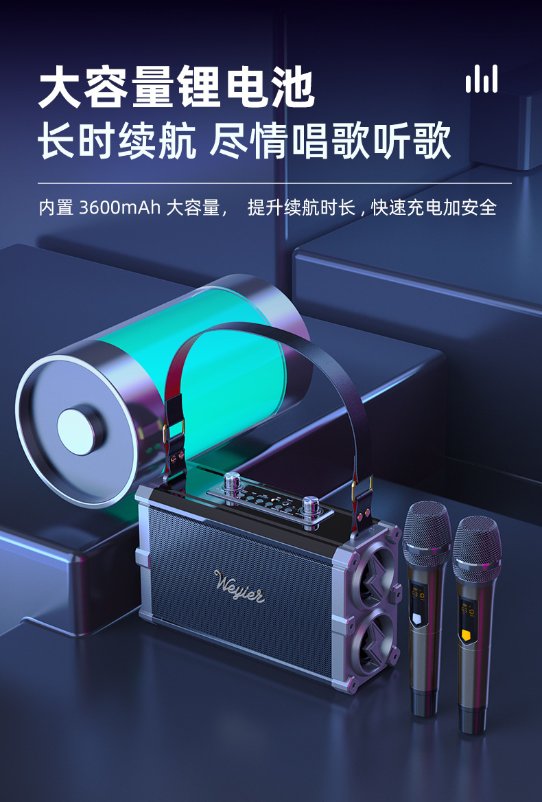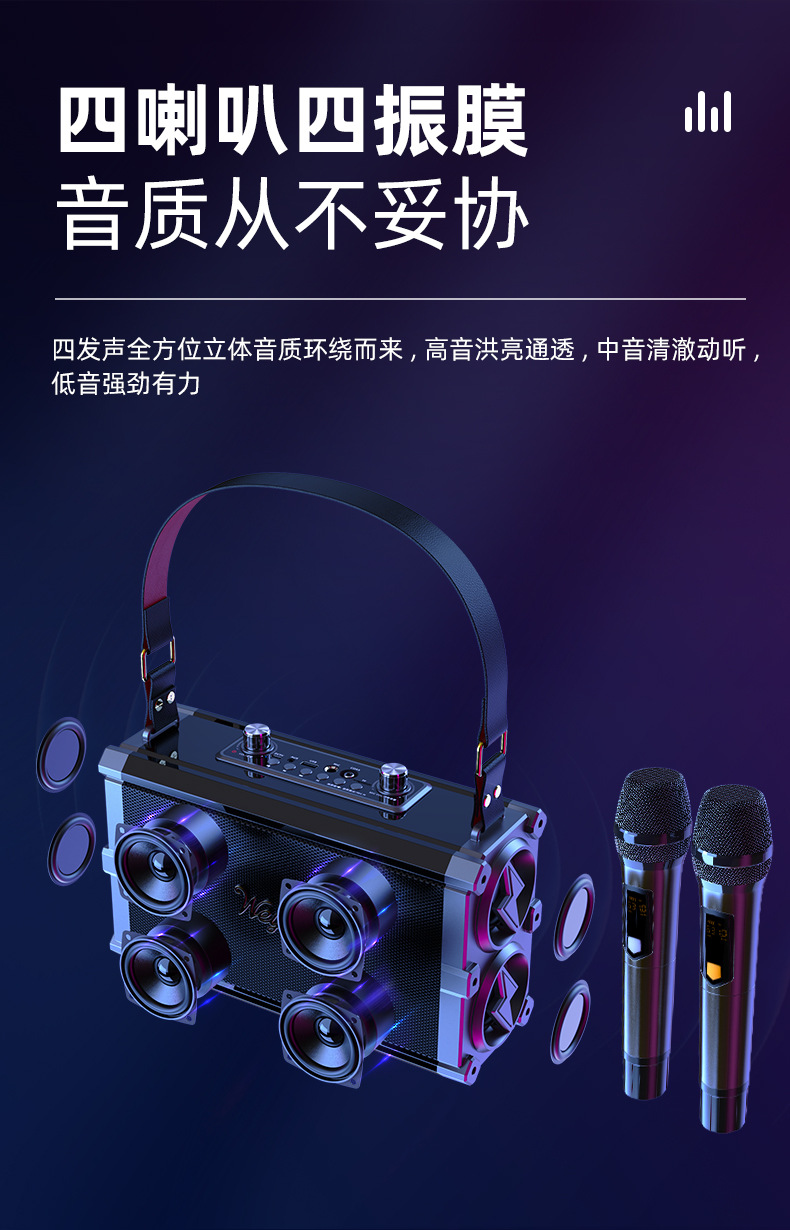 KTV 노래방 스피커, 무선 마이크, 야외 광장 댄스용 휴대용 악기, 서브우퍼, 강력한 저음