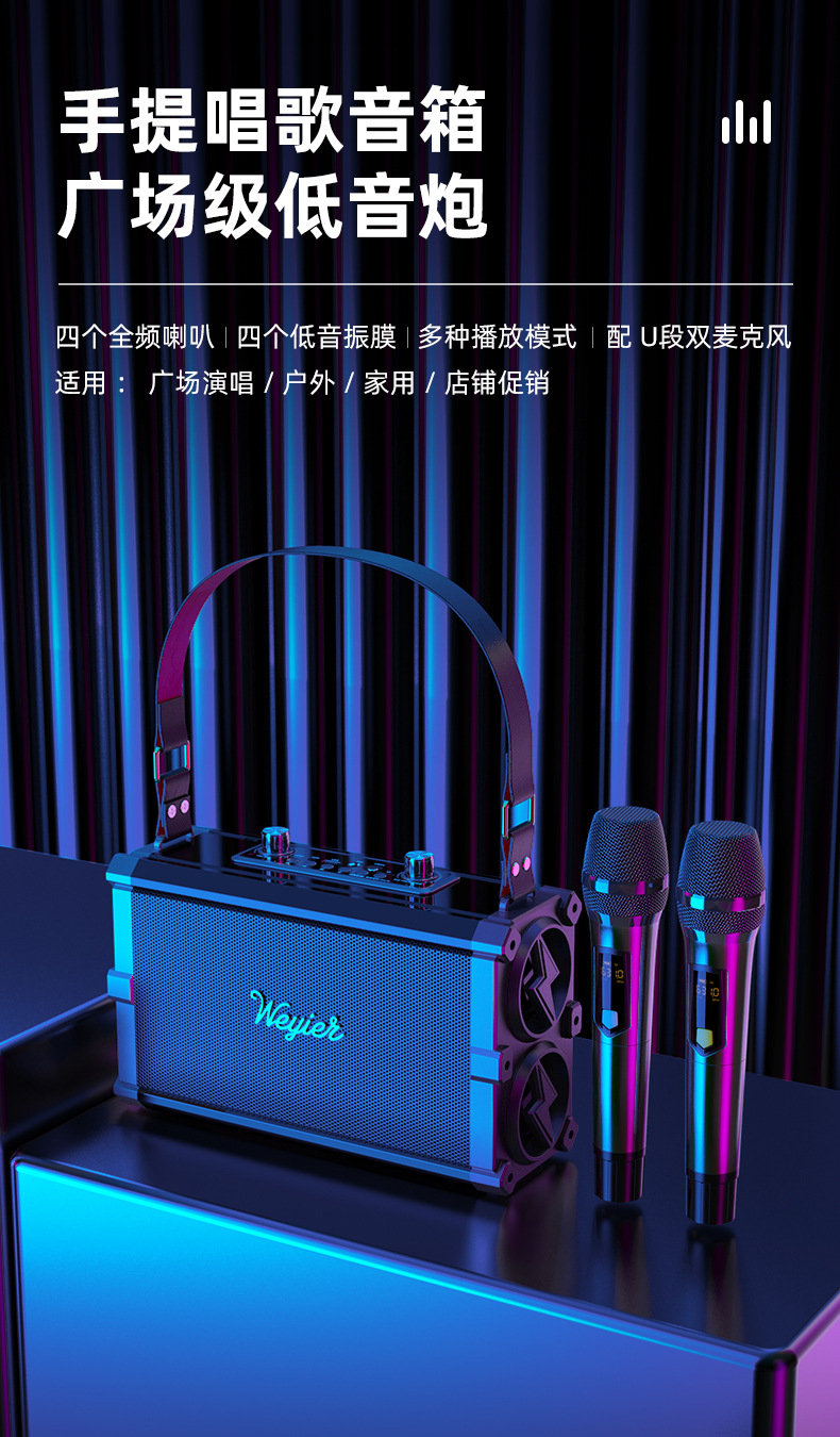 KTV 노래방 스피커, 무선 마이크, 야외 광장 댄스용 휴대용 악기, 서브우퍼, 강력한 저음스토어 가기