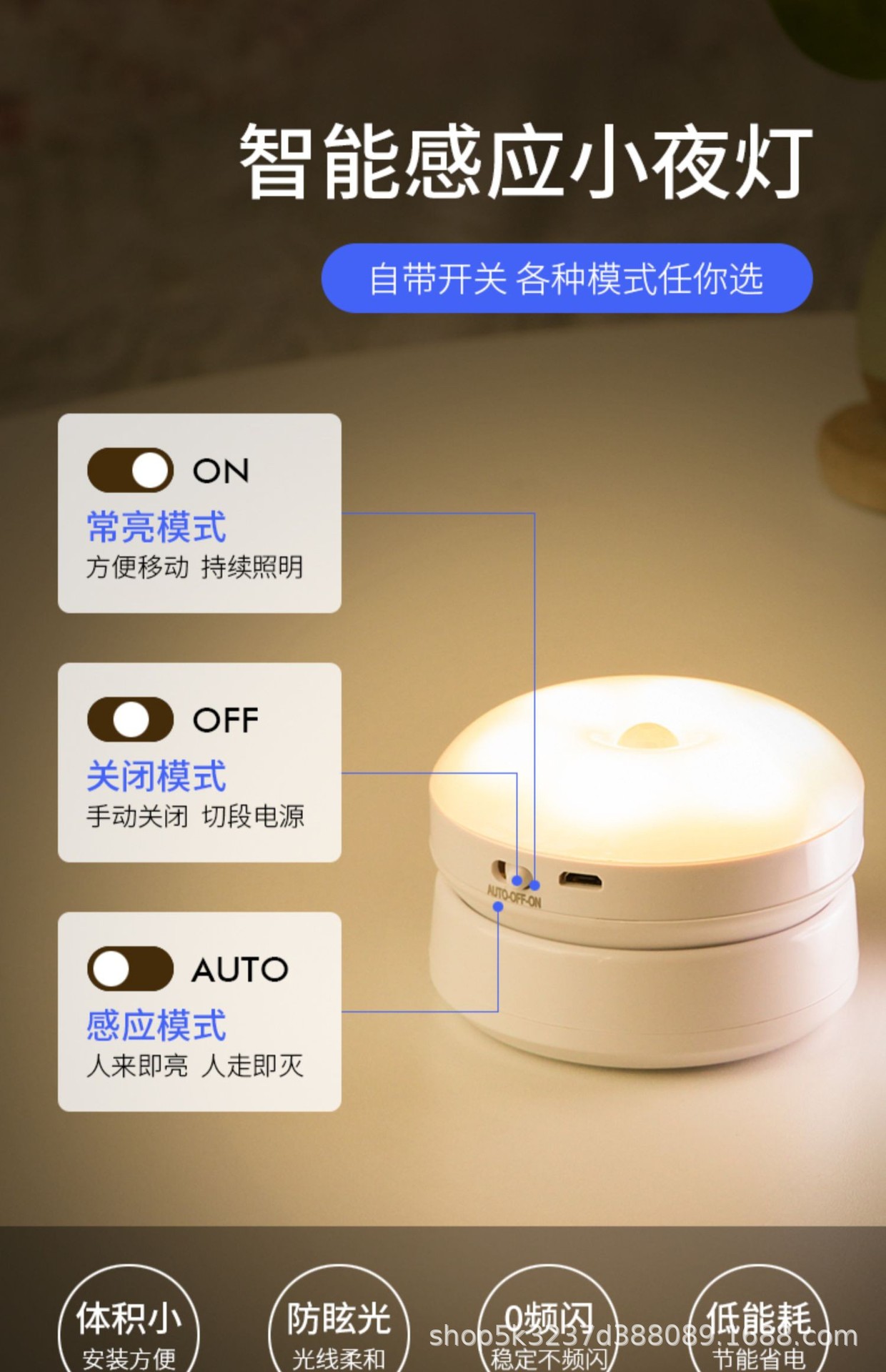 복도 인체 센서 램프 야간 통로 야간 조명 충전식 욕실 침실 아기 수유 침대 옆 수면 램프스토어 가기