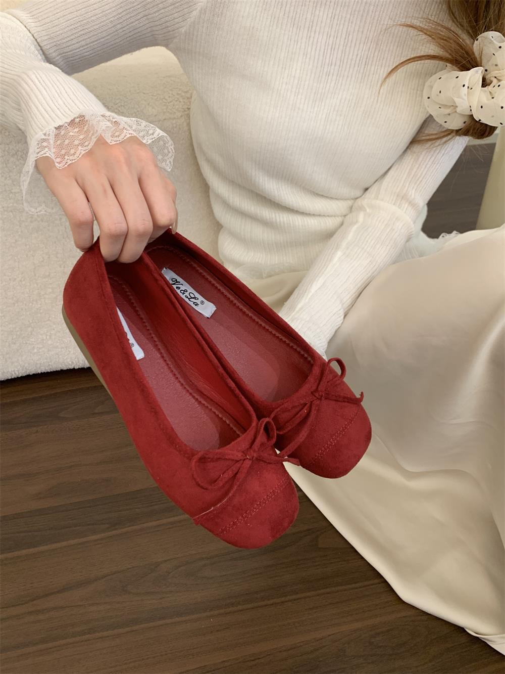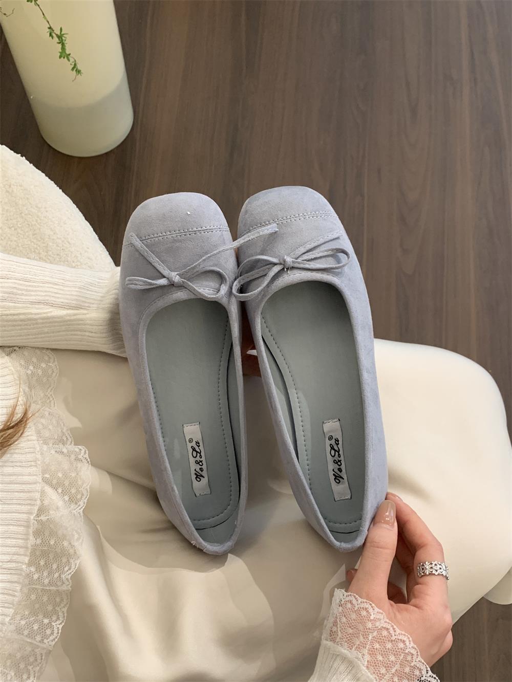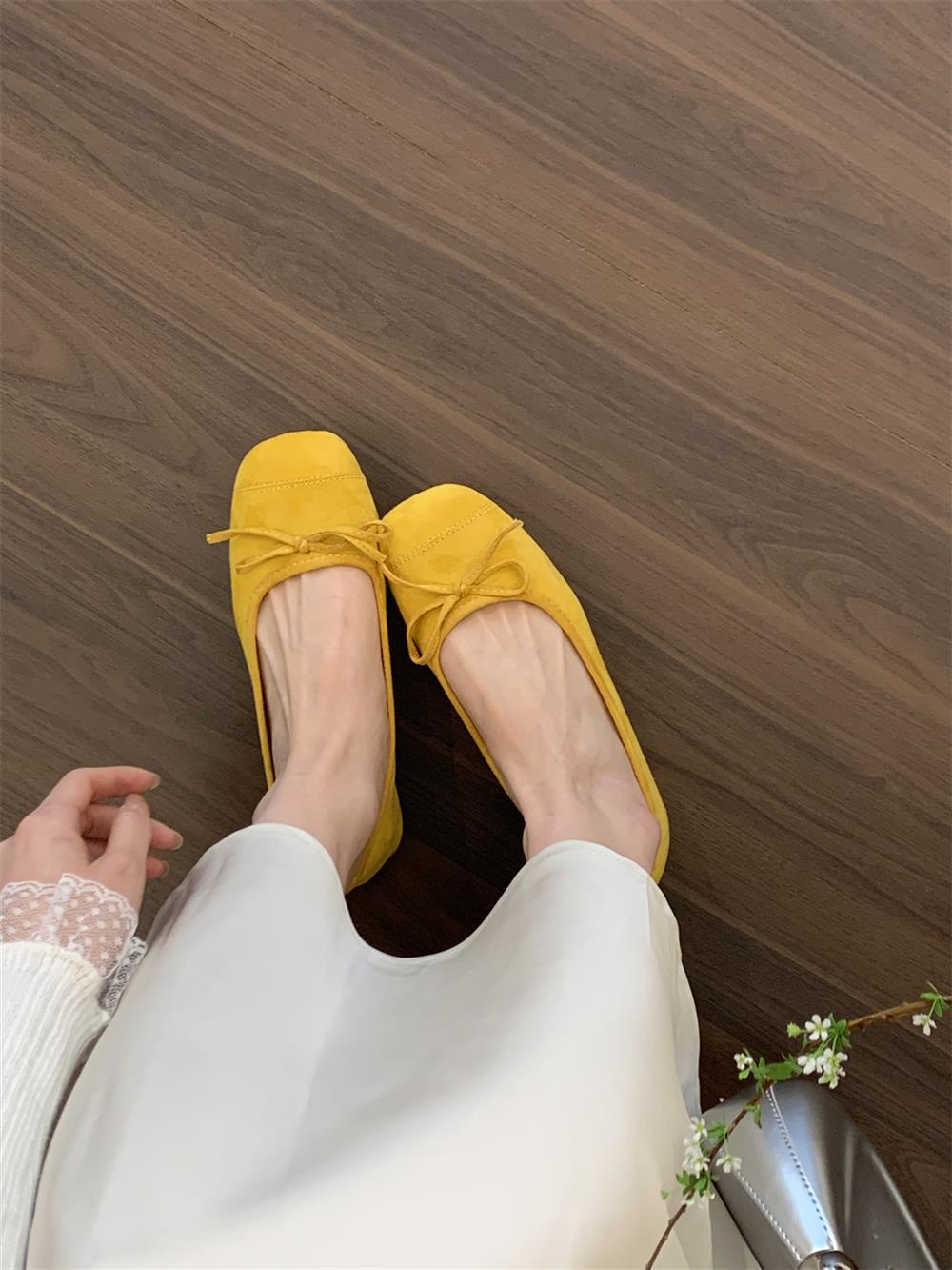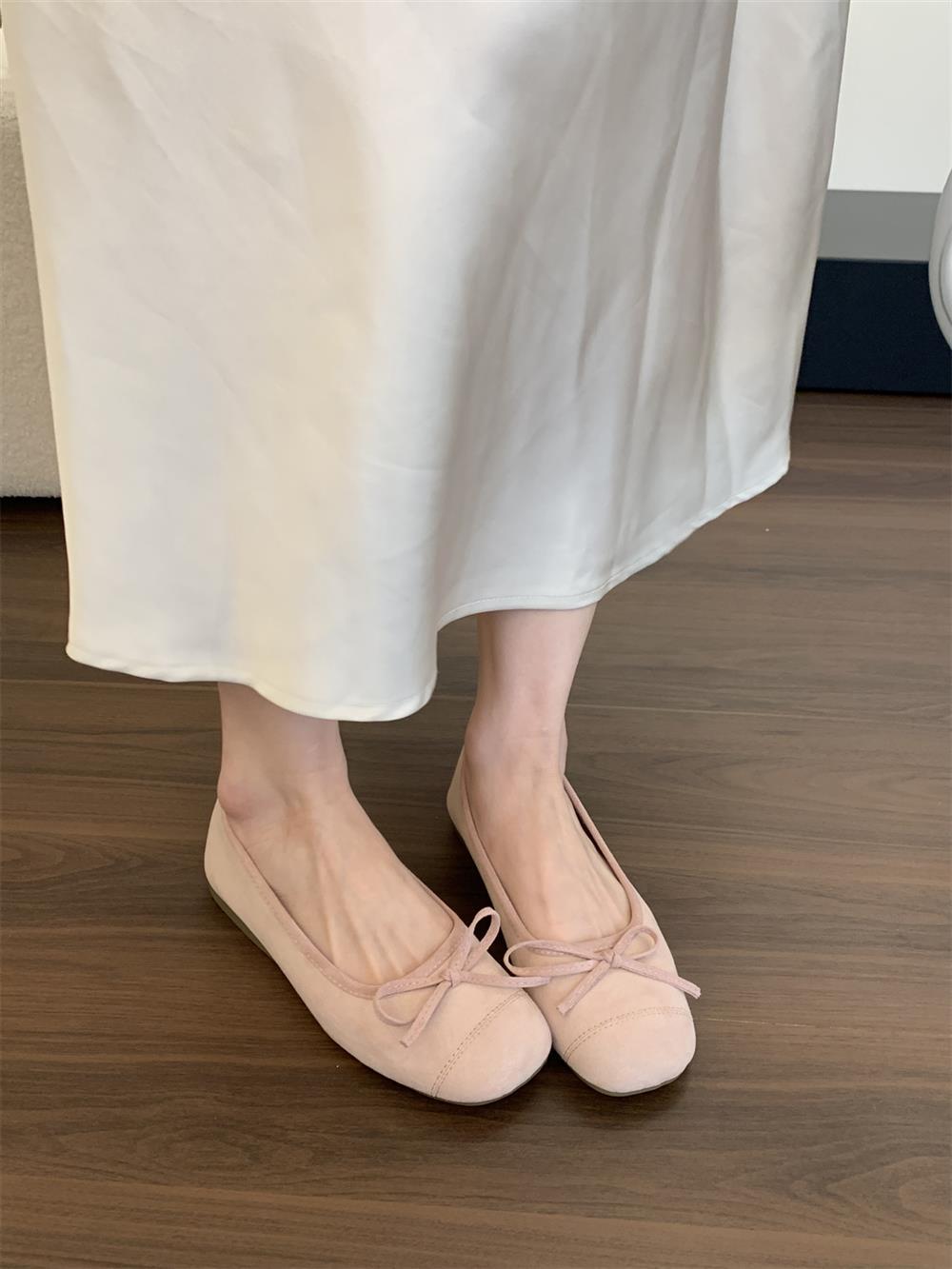Ve & La Suede 레드 싱글 신발 여성의 봄 얕은 입 페달 레트로 젠틀 요정 발레 플랫 빈 신발스토어 가기