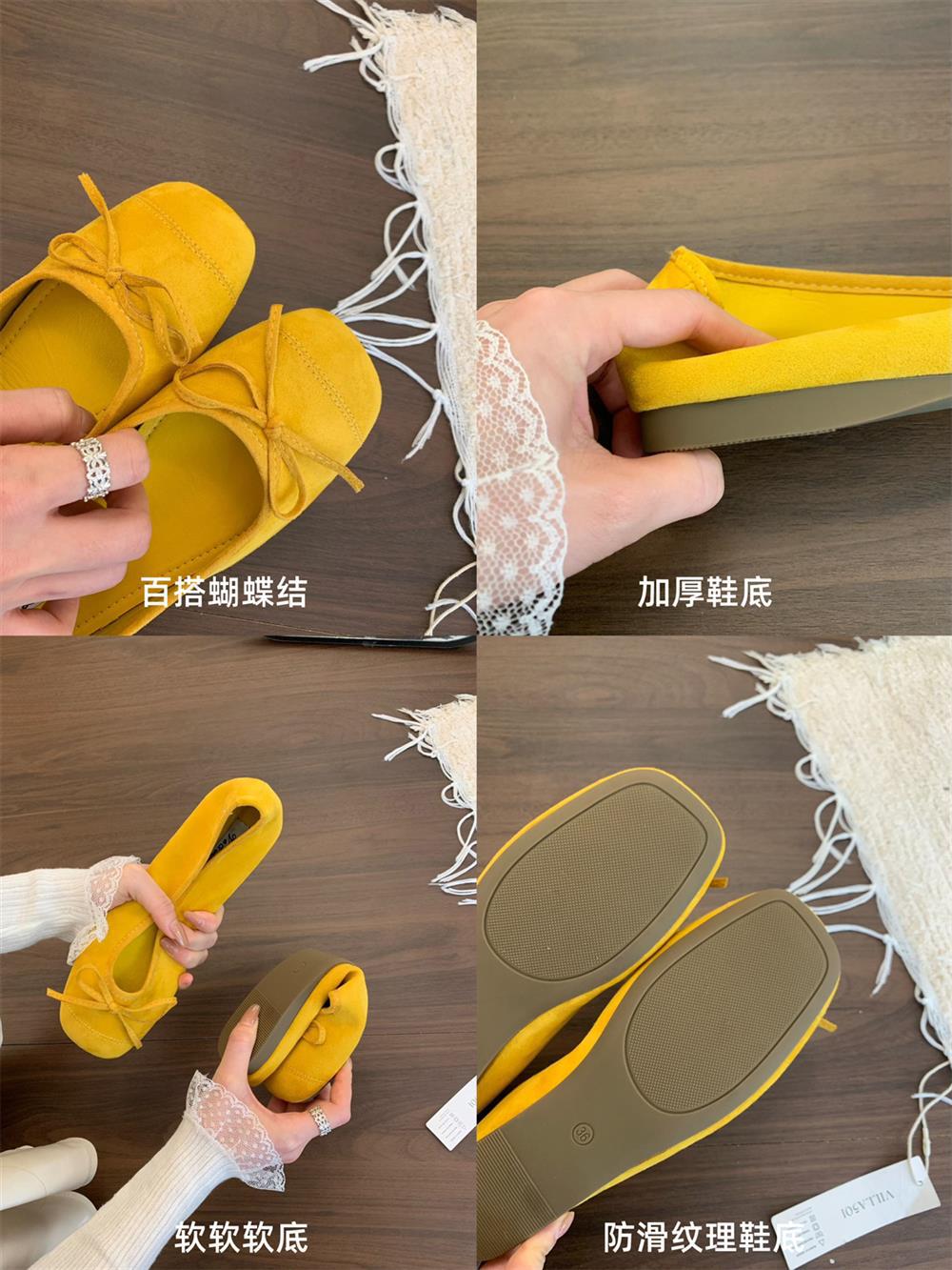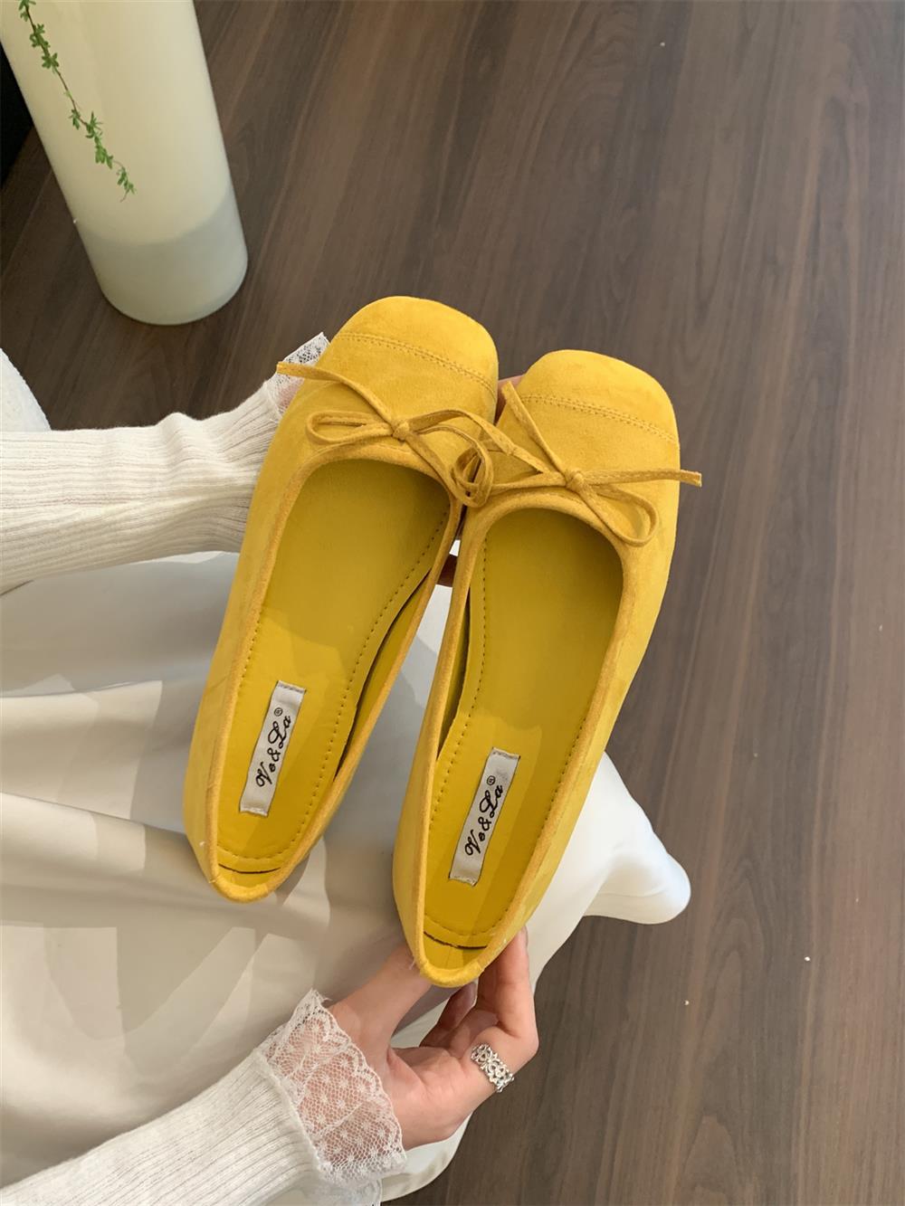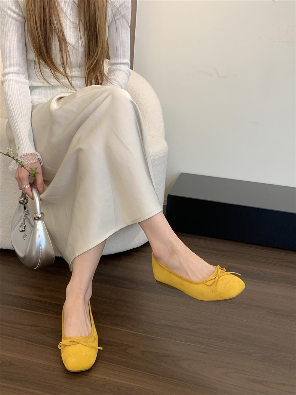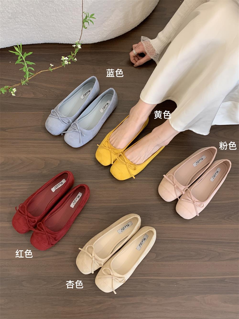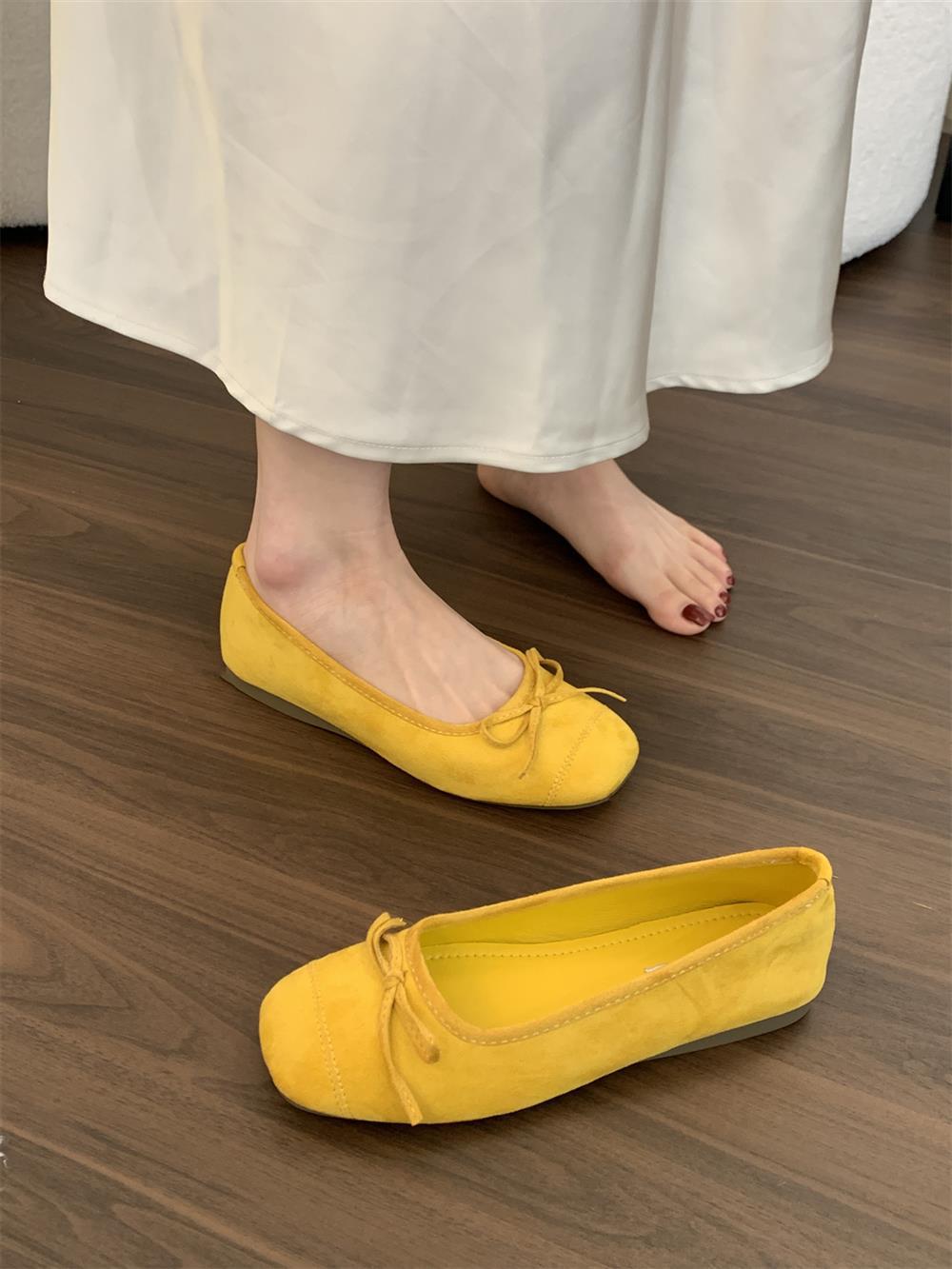 Ve & La Suede 레드 싱글 신발 여성의 봄 얕은 입 페달 레트로 젠틀 요정 발레 플랫 빈 신발스토어 가기