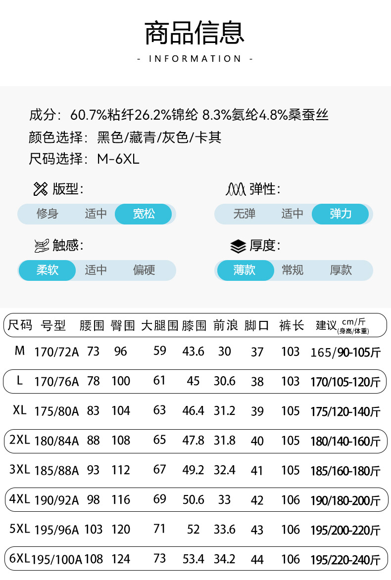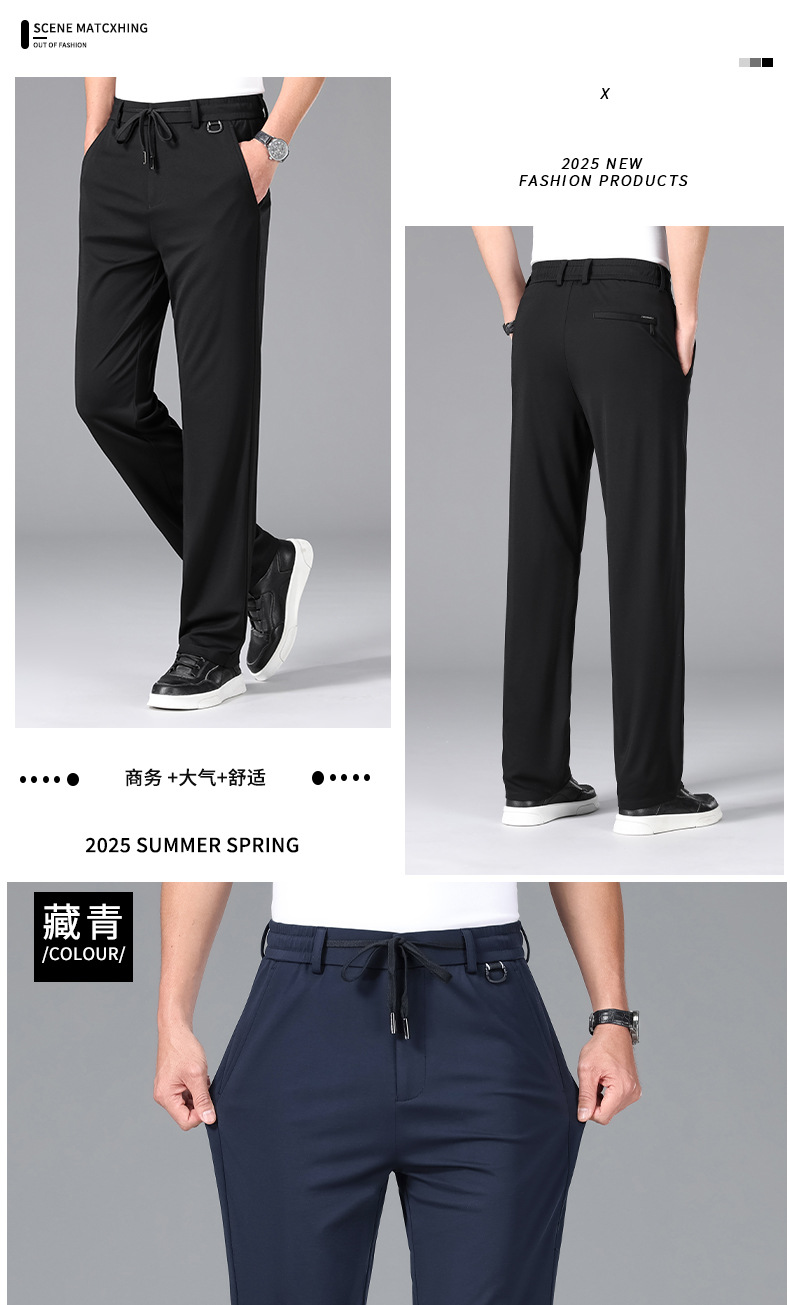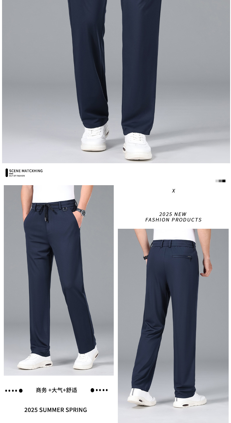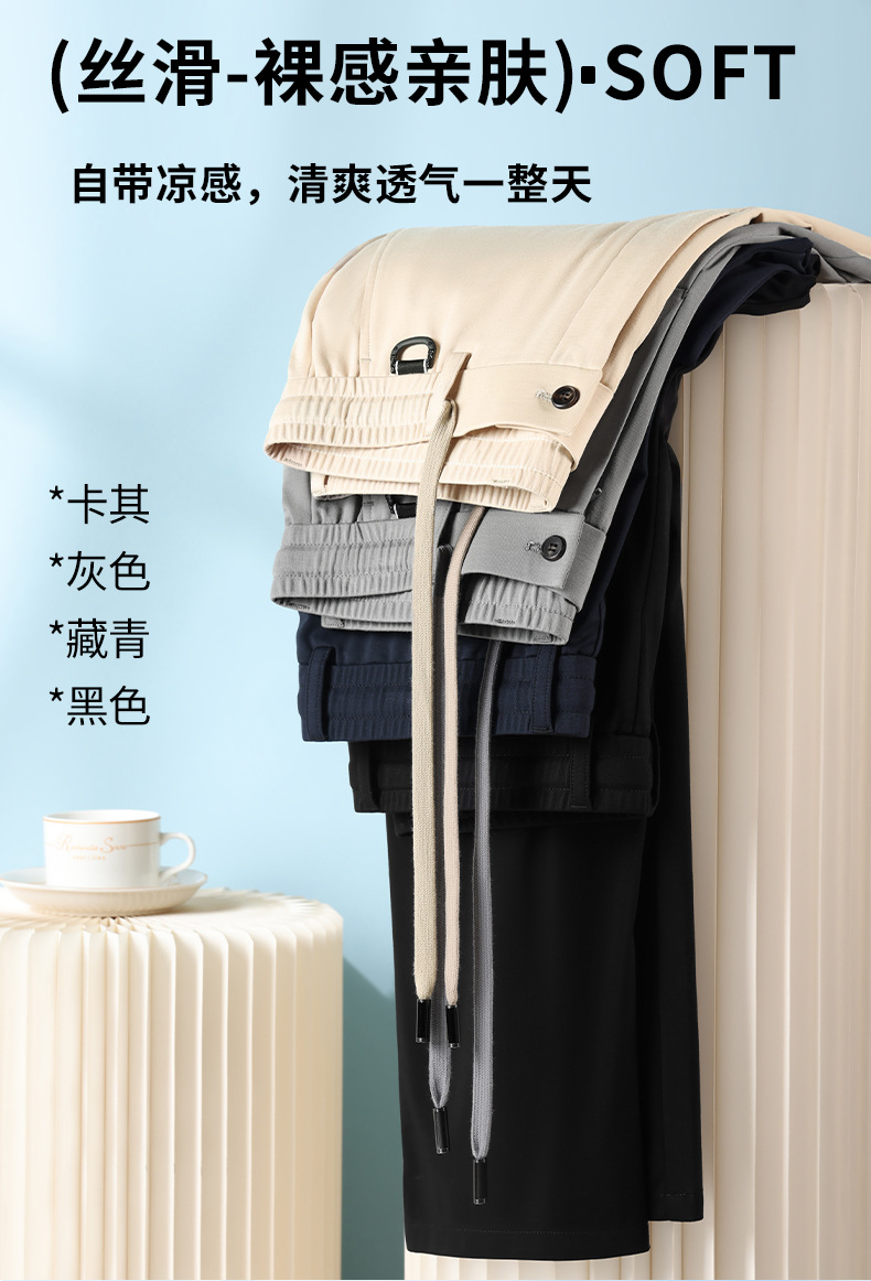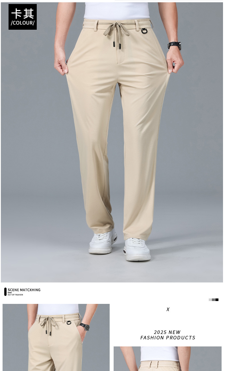 2025 하이 엔드 브랜드 스포츠 캐주얼 바지 봄 스트레이트 바지 뽕나무 실크 탄성 비 철 중년 남성 바지스토어 가기