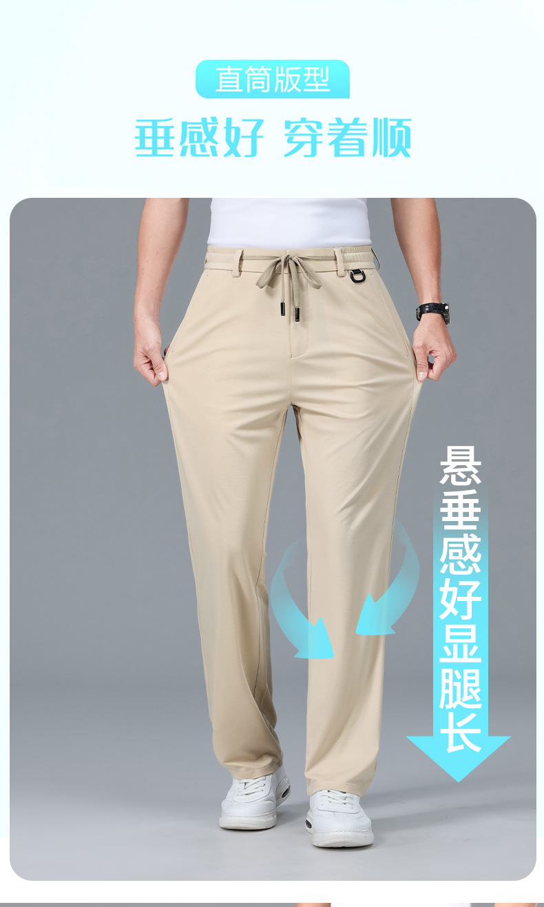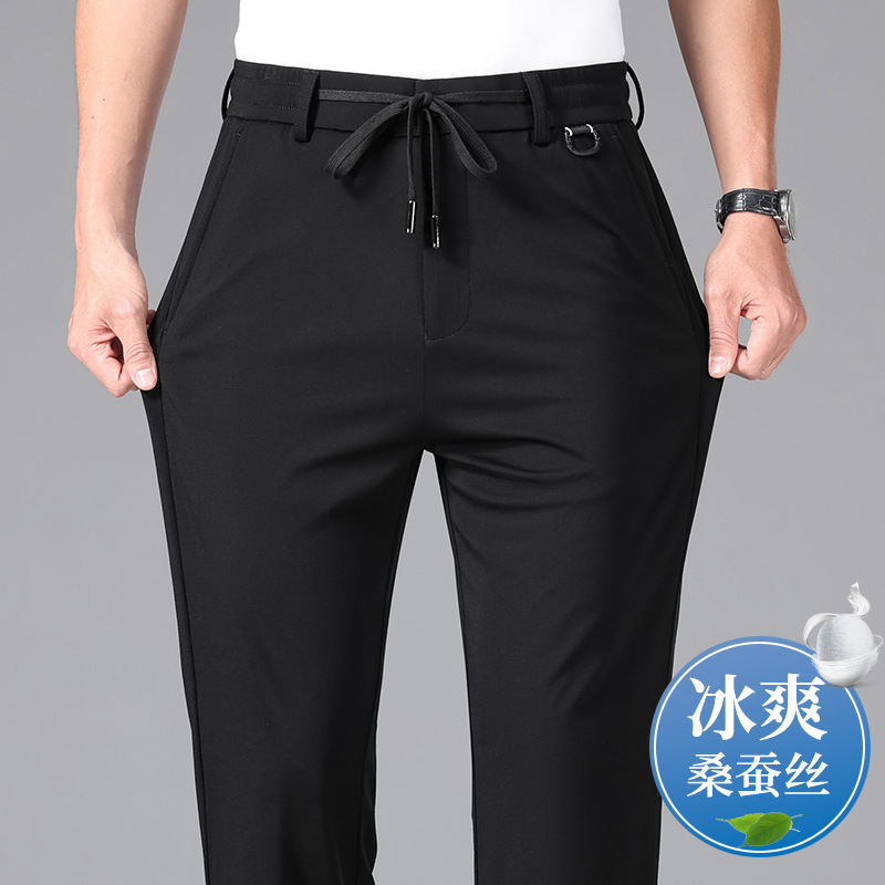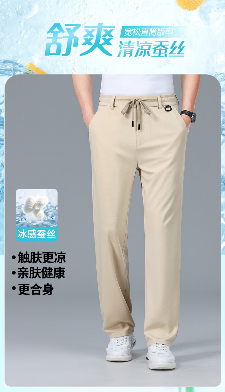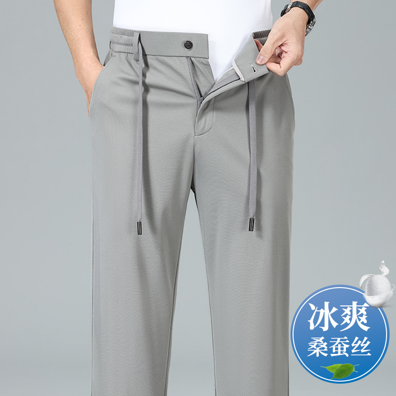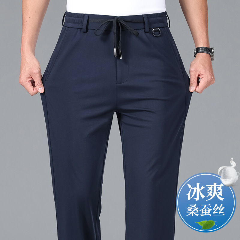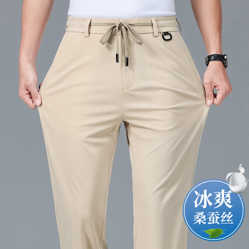 2025 하이 엔드 브랜드 스포츠 캐주얼 바지 봄 스트레이트 바지 뽕나무 실크 탄성 비 철 중년 남성 바지