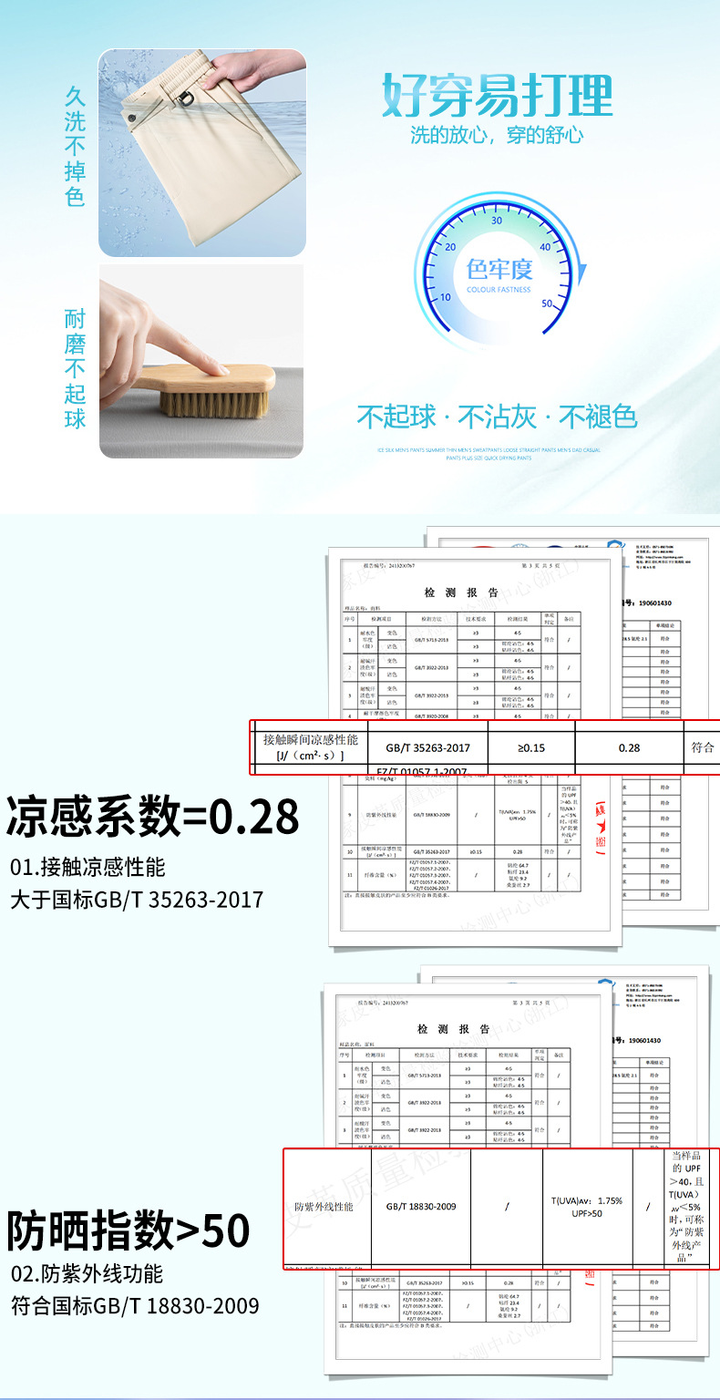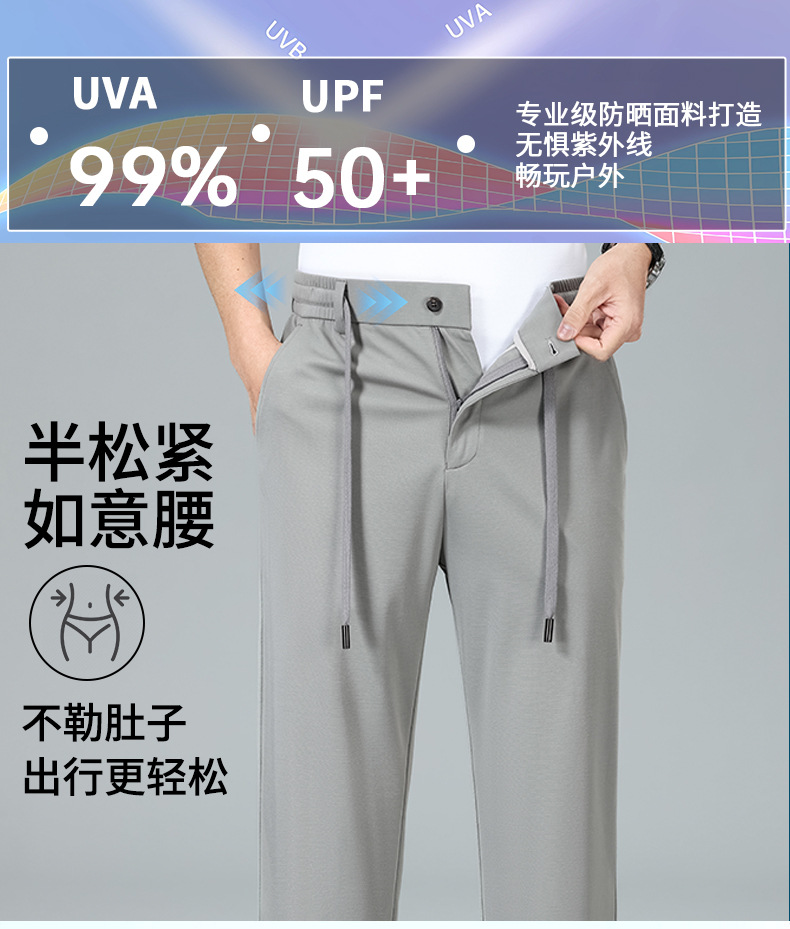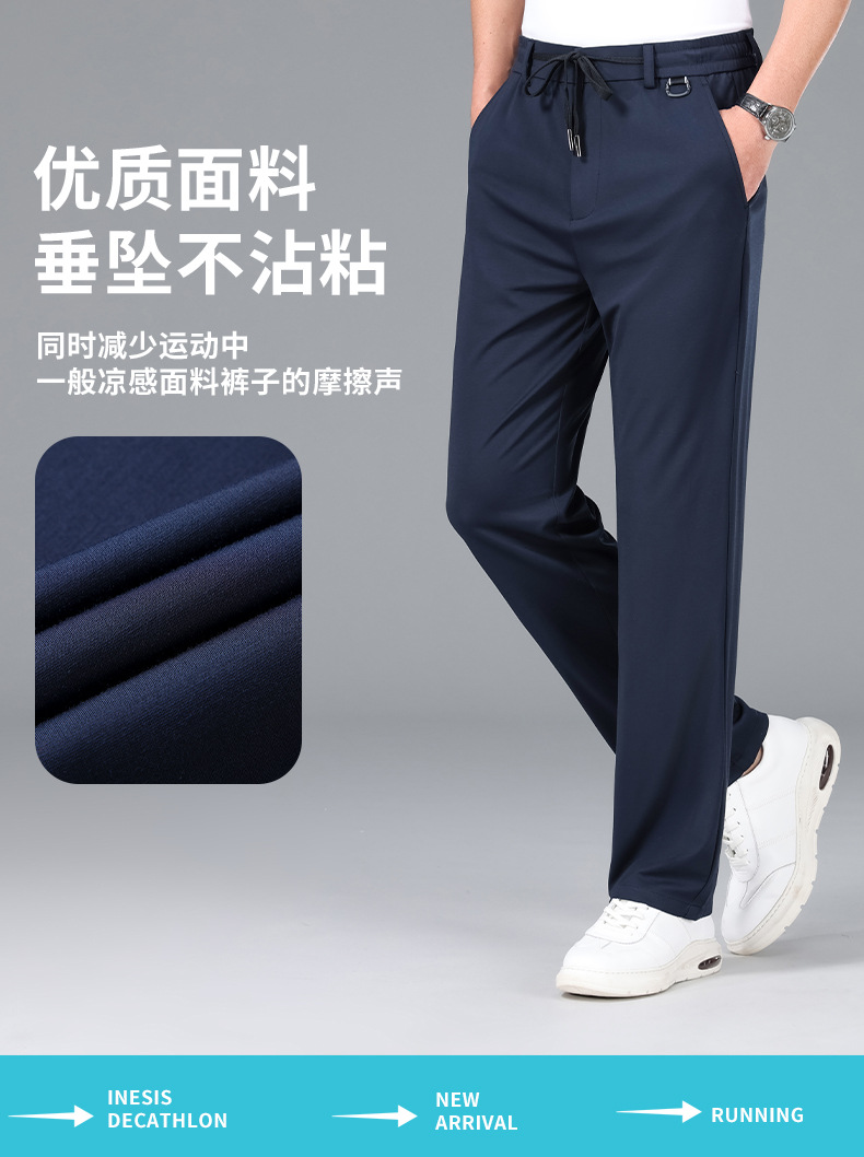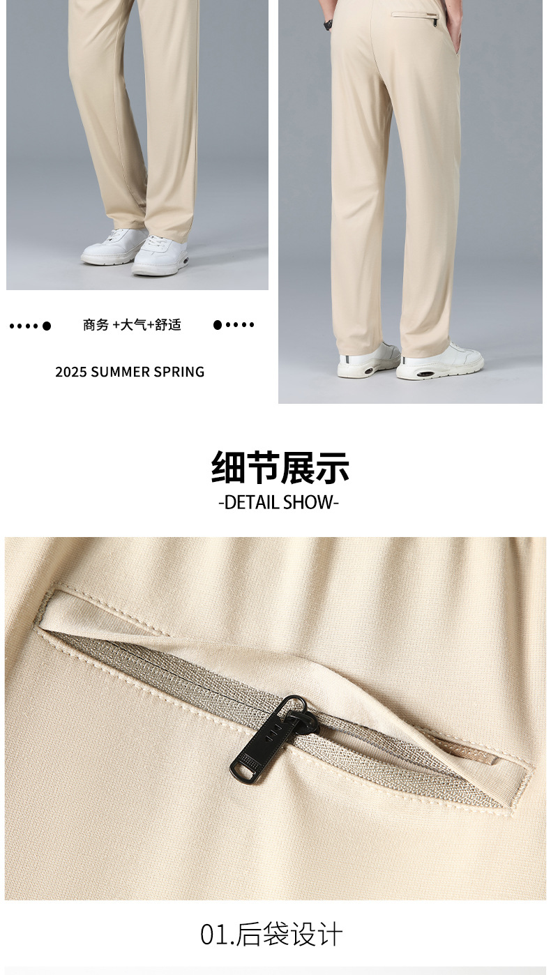 2025 하이 엔드 브랜드 스포츠 캐주얼 바지 봄 스트레이트 바지 뽕나무 실크 탄성 비 철 중년 남성 바지