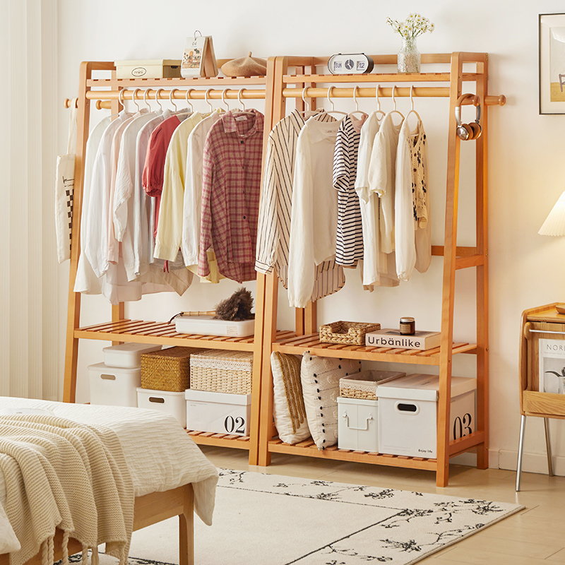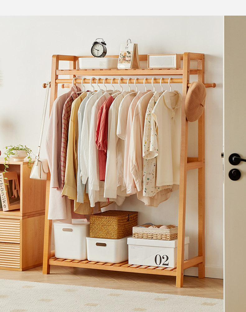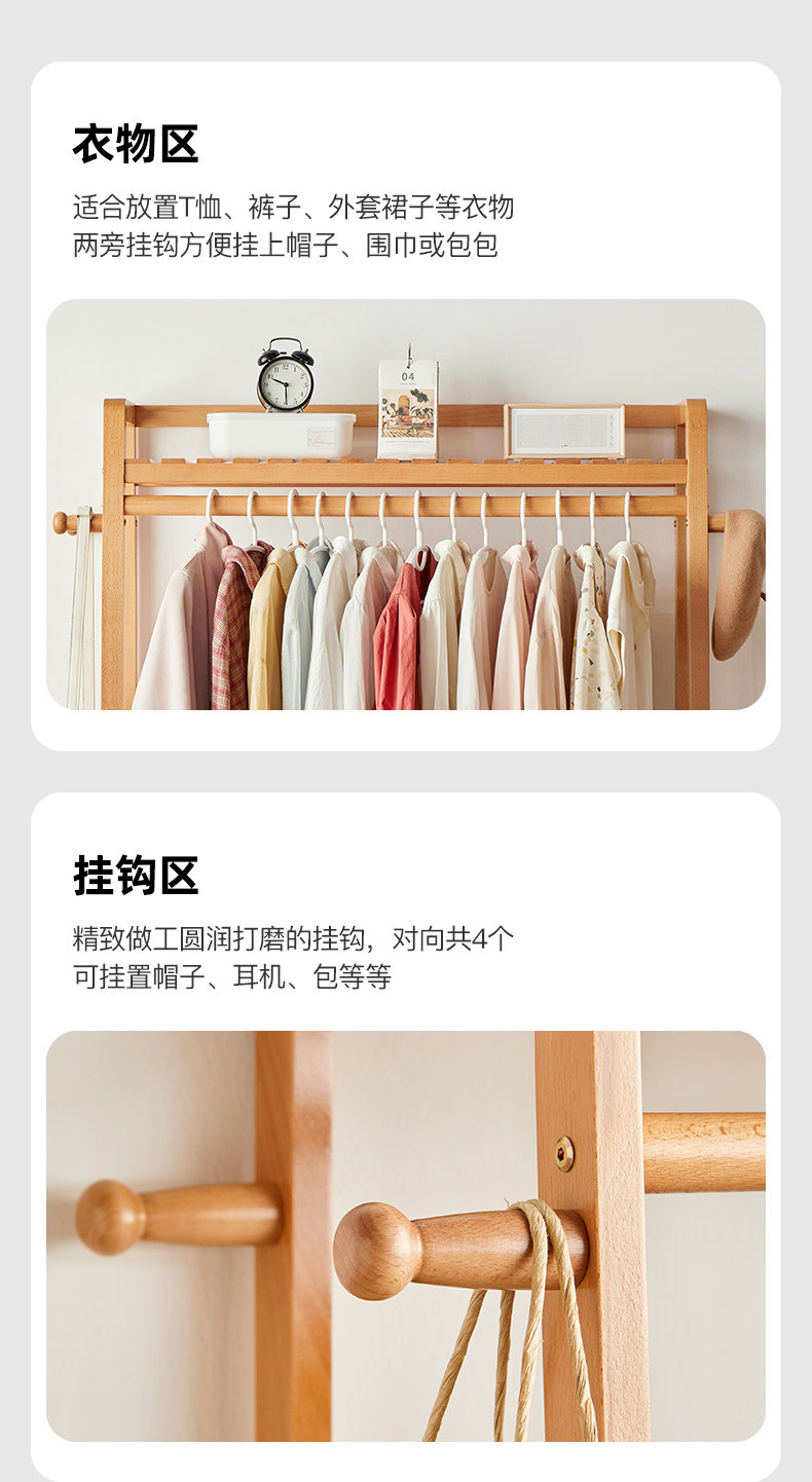 간단한 단단한 나무 옷걸이 거실 너도밤 나무 목재 옷 건조 랙 홈 룸 수직 막대 바닥 침실 옷걸이