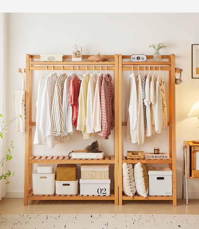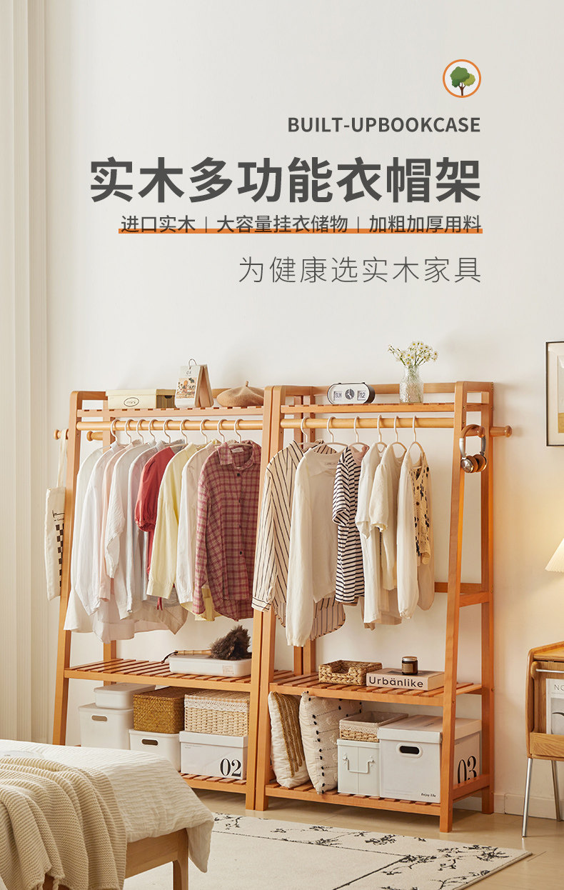 간단한 단단한 나무 옷걸이 거실 너도밤 나무 목재 옷 건조 랙 홈 룸 수직 막대 바닥 침실 옷걸이스토어 가기