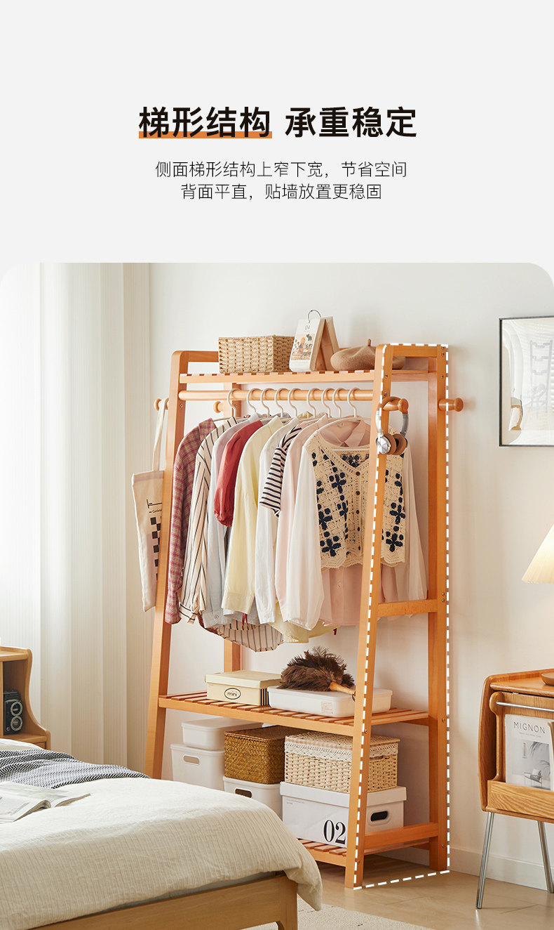 • 더블 레이어 강화 목재 색 사다리꼴 옷걸이 118cm
