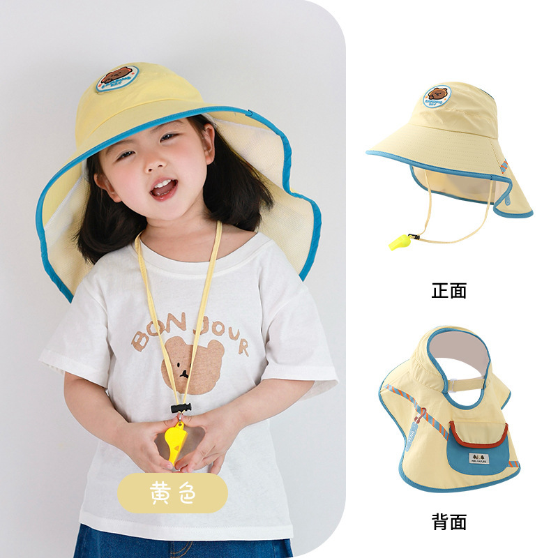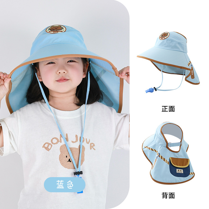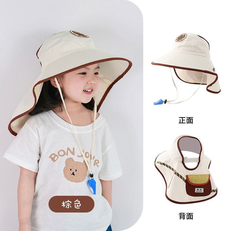 어린이 태양 보호 모자 여름 자외선 방지 아기 태양 모자 소년과 소녀 목도리 빈 탑 태양 모자 해변 모자스토어 가기