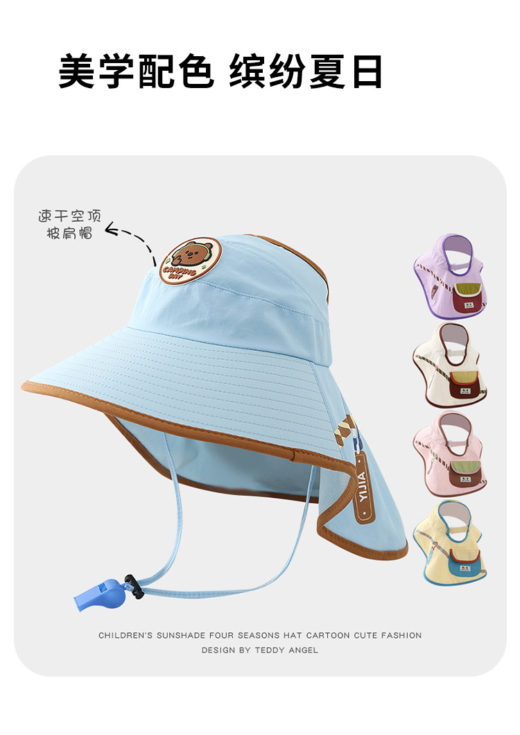 어린이 태양 보호 모자 여름 자외선 방지 아기 태양 모자 소년과 소녀 목도리 빈 탑 태양 모자 해변 모자