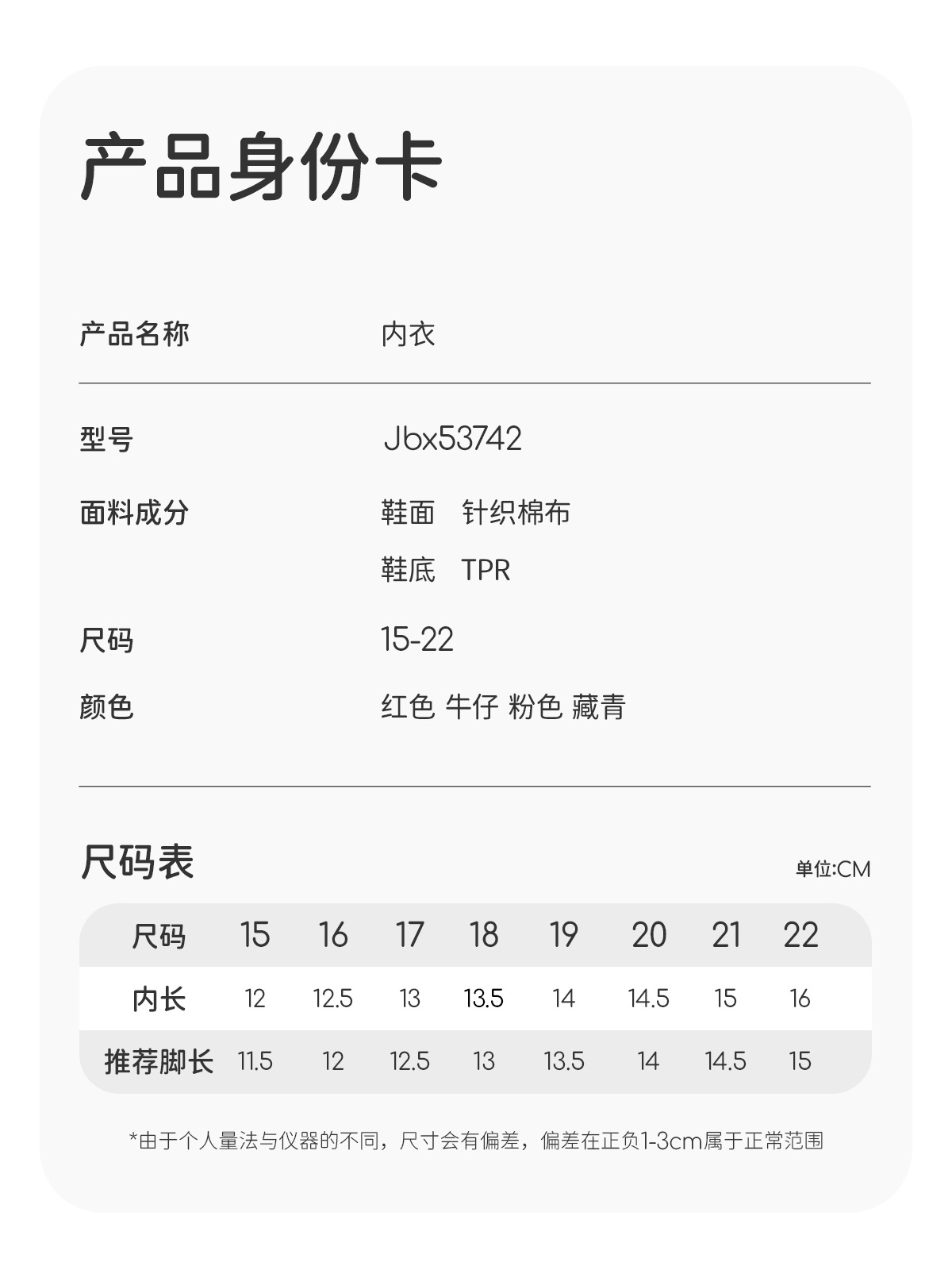 • 내부 길이 13cm [사이즈 17, 발 길이 12.5cm에 적합]