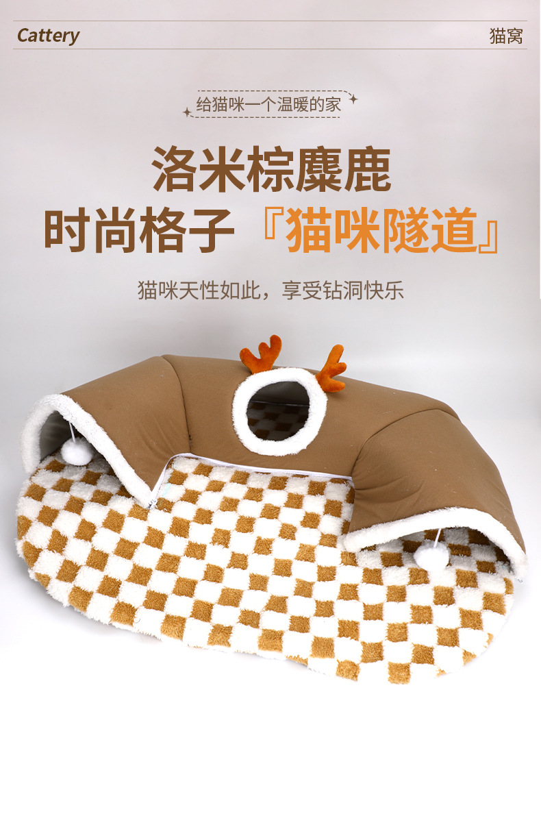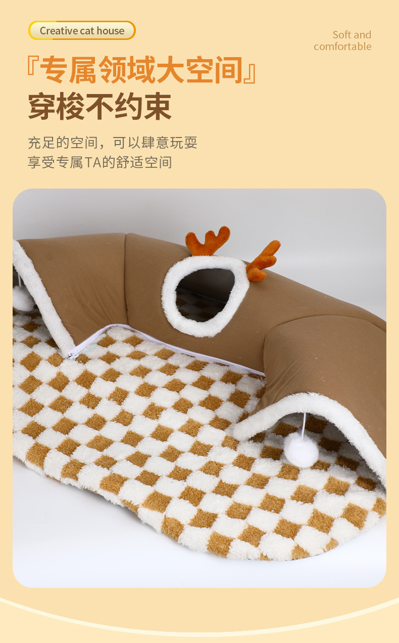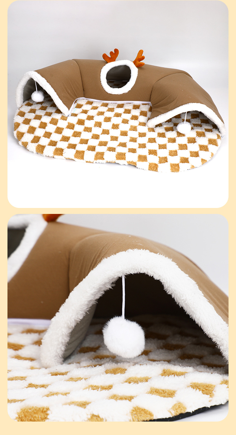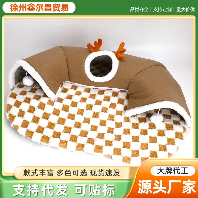 국경을 넘나드는 인기 2024 가을 겨울 고양이 엘크 숨바꼭질 고양이 터널 놀이 및 수면 일체형 터널 고양이 둥지 애완 동물 둥지