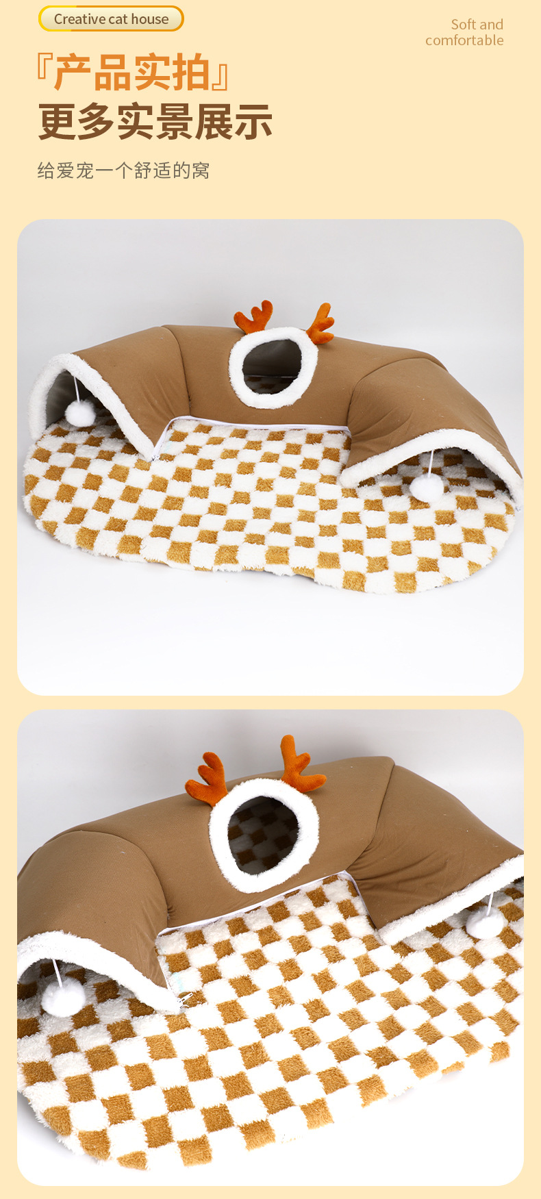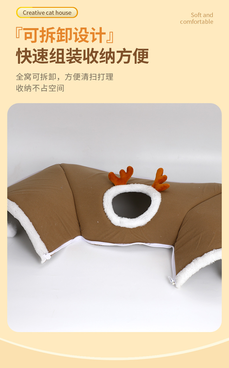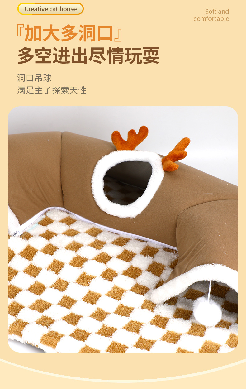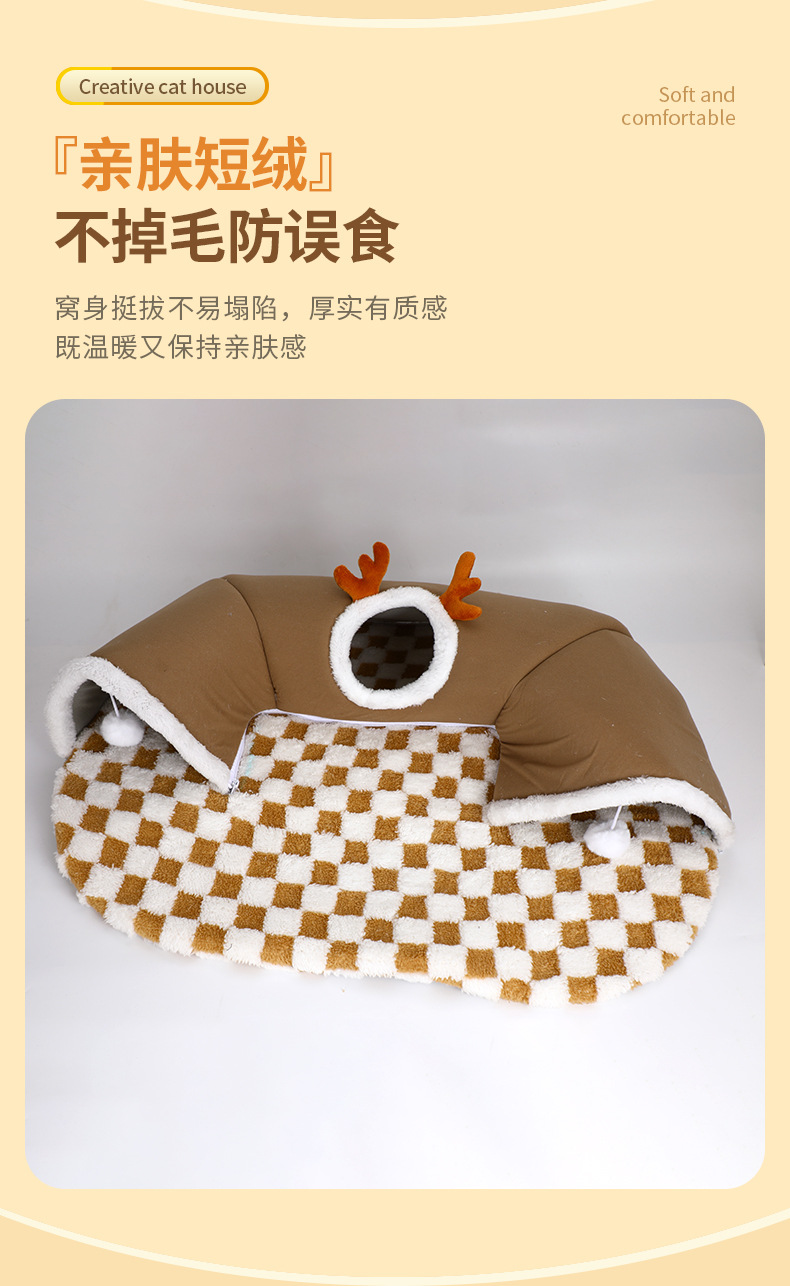 국경을 넘나드는 인기 2024 가을 겨울 고양이 엘크 숨바꼭질 고양이 터널 놀이 및 수면 일체형 터널 고양이 둥지 애완 동물 둥지