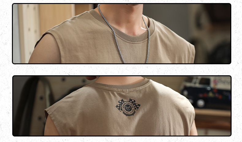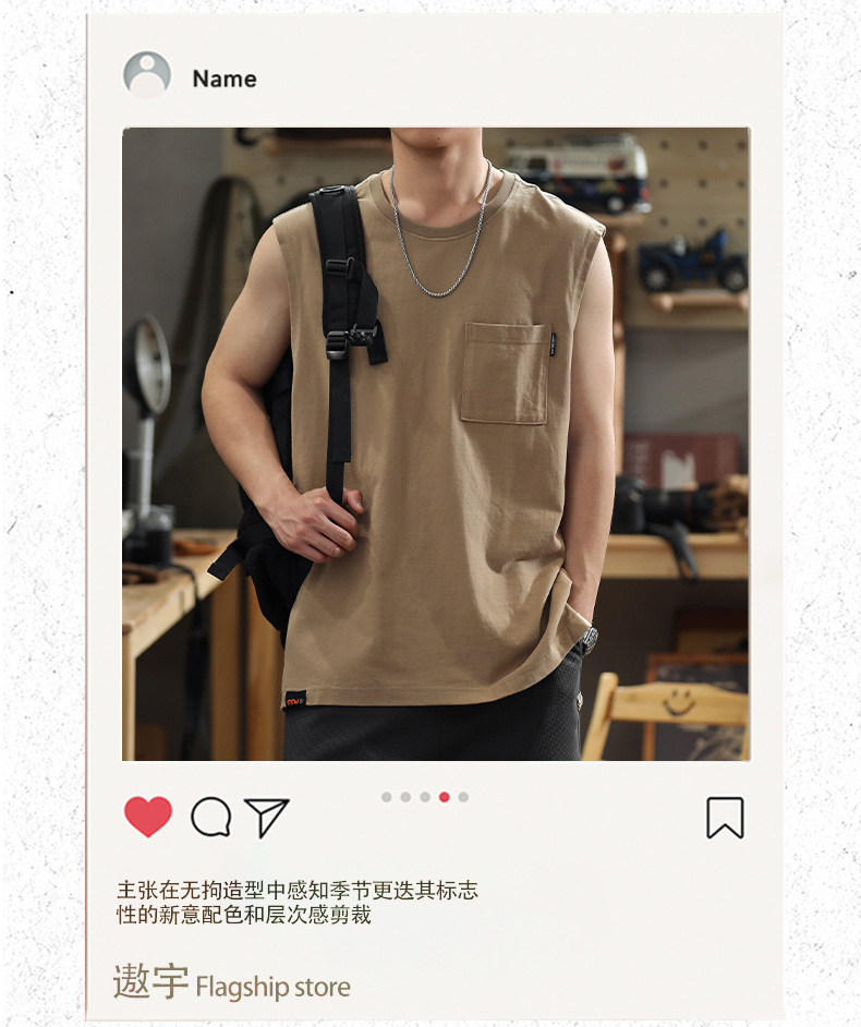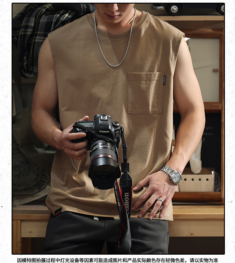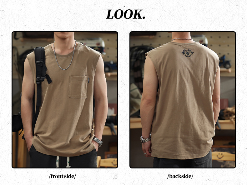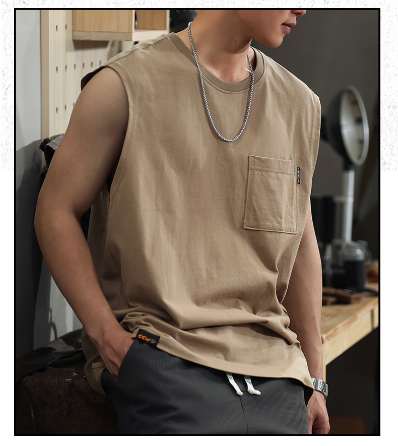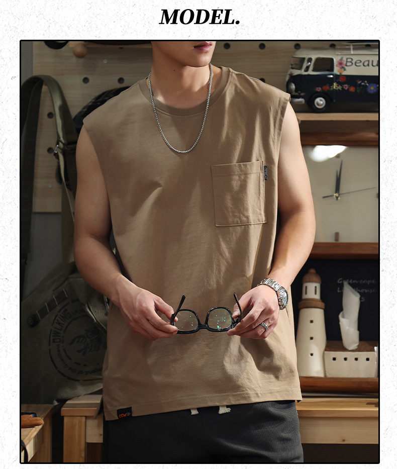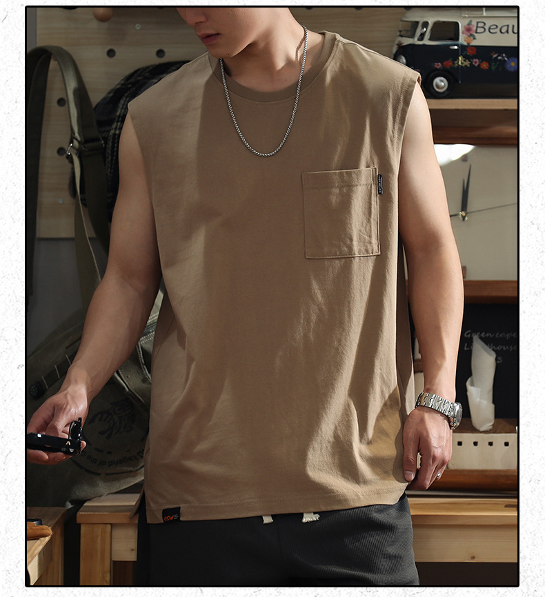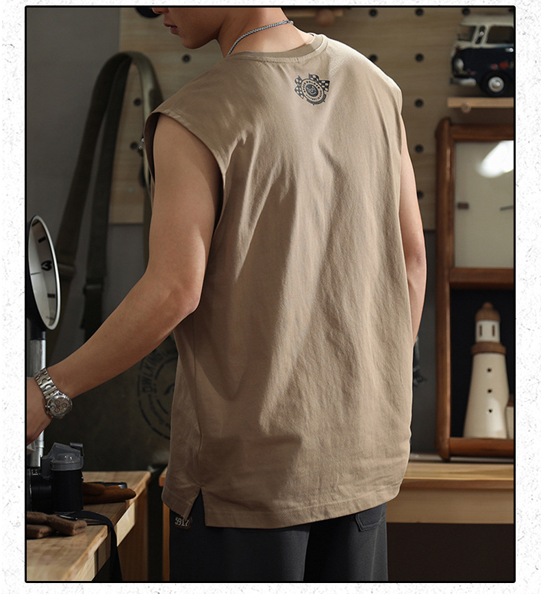 아메리칸 레트로 헤비 솔리드 컬러 조끼 남자 여름 루즈 캐주얼 민소매 티셔츠 십대 피트니스 웨이스트 코트