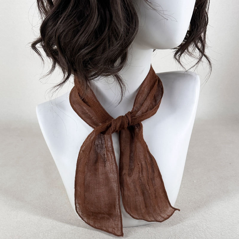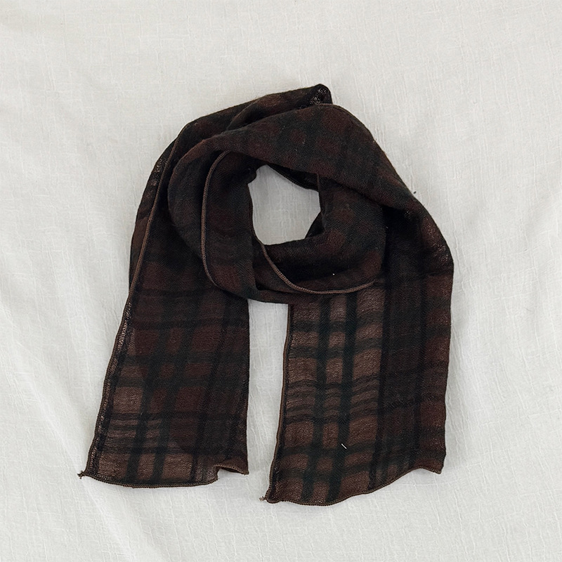 • 린넨 솔리드 컬러 롱 스카프-다크 커피