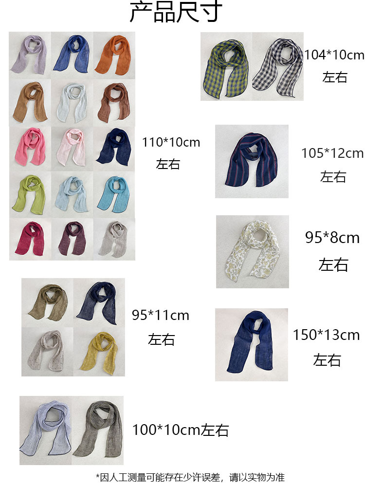 봄과 여름 새로운 빈티지 리넨 작은 긴 스카프 예술 모든 경기 여자 목 보호 작은 스카프 패션 올 매치 스카프 액세서리