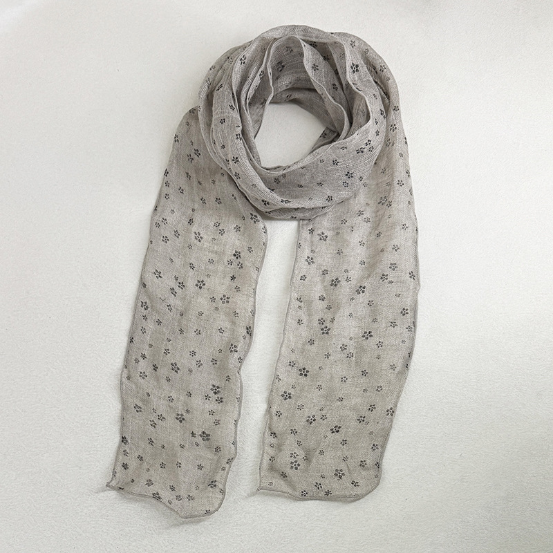 • 린넨 솔리드 컬러 롱 스카프 - 라이트 그레이