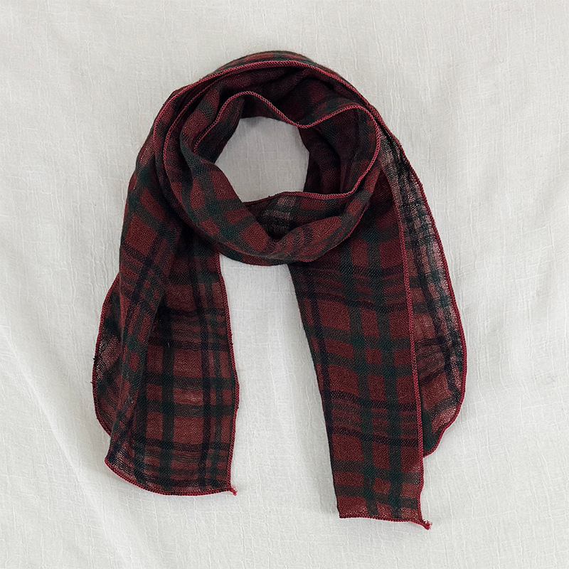 • 린넨 솔리드 컬러 롱 스카프-다크 레드