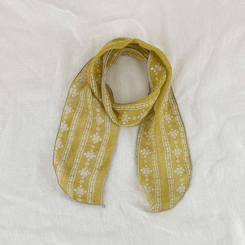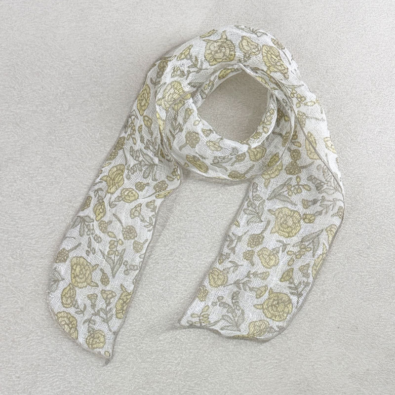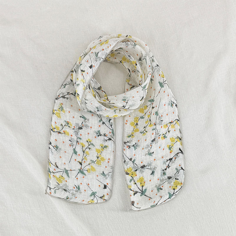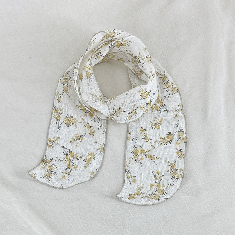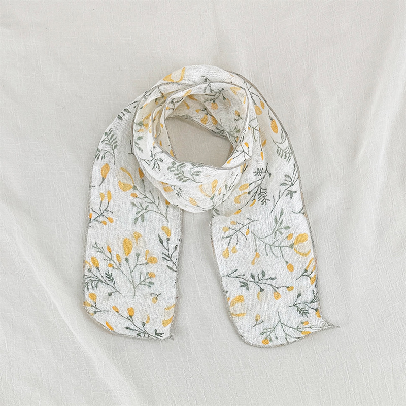 • 린넨 롱 스카프 - 봄빛 노란 꽃